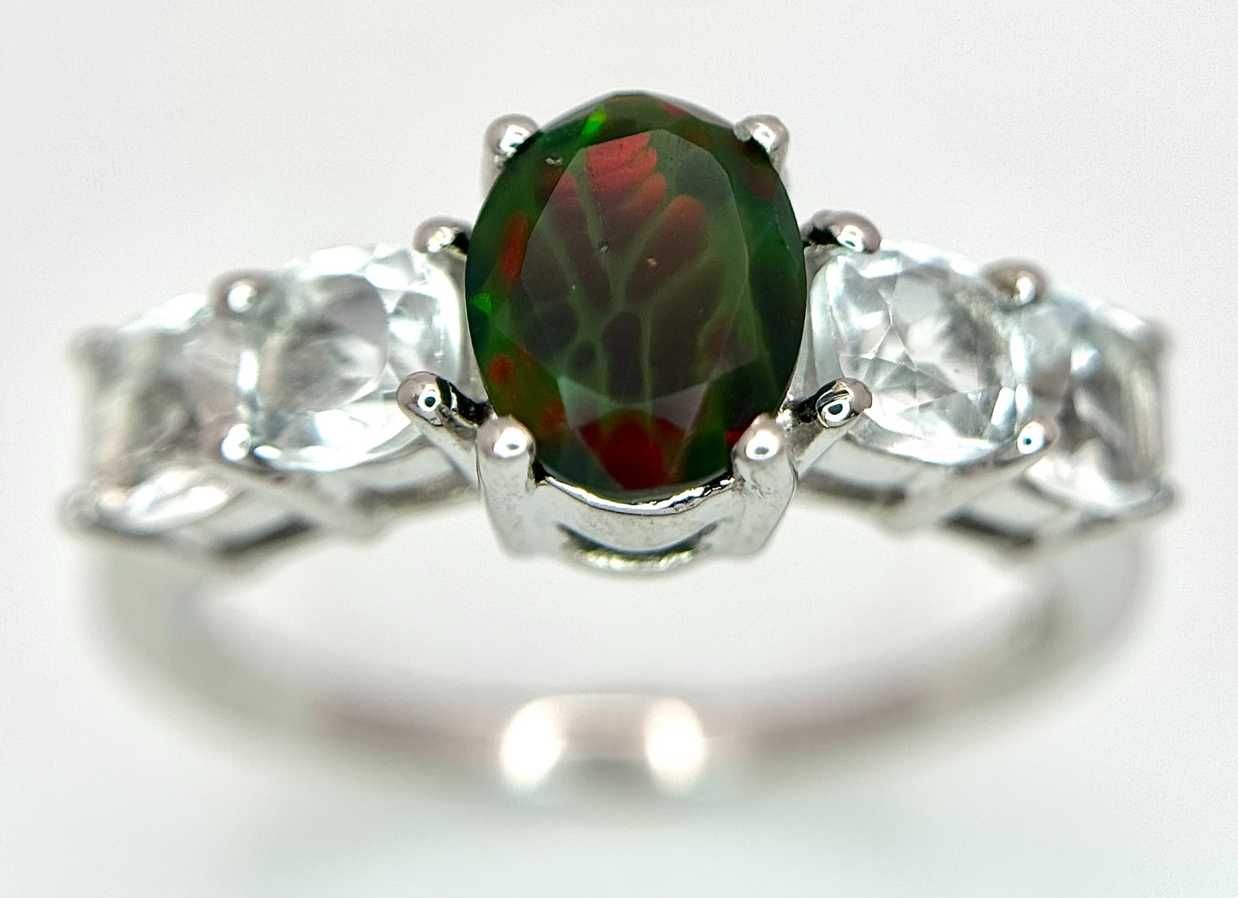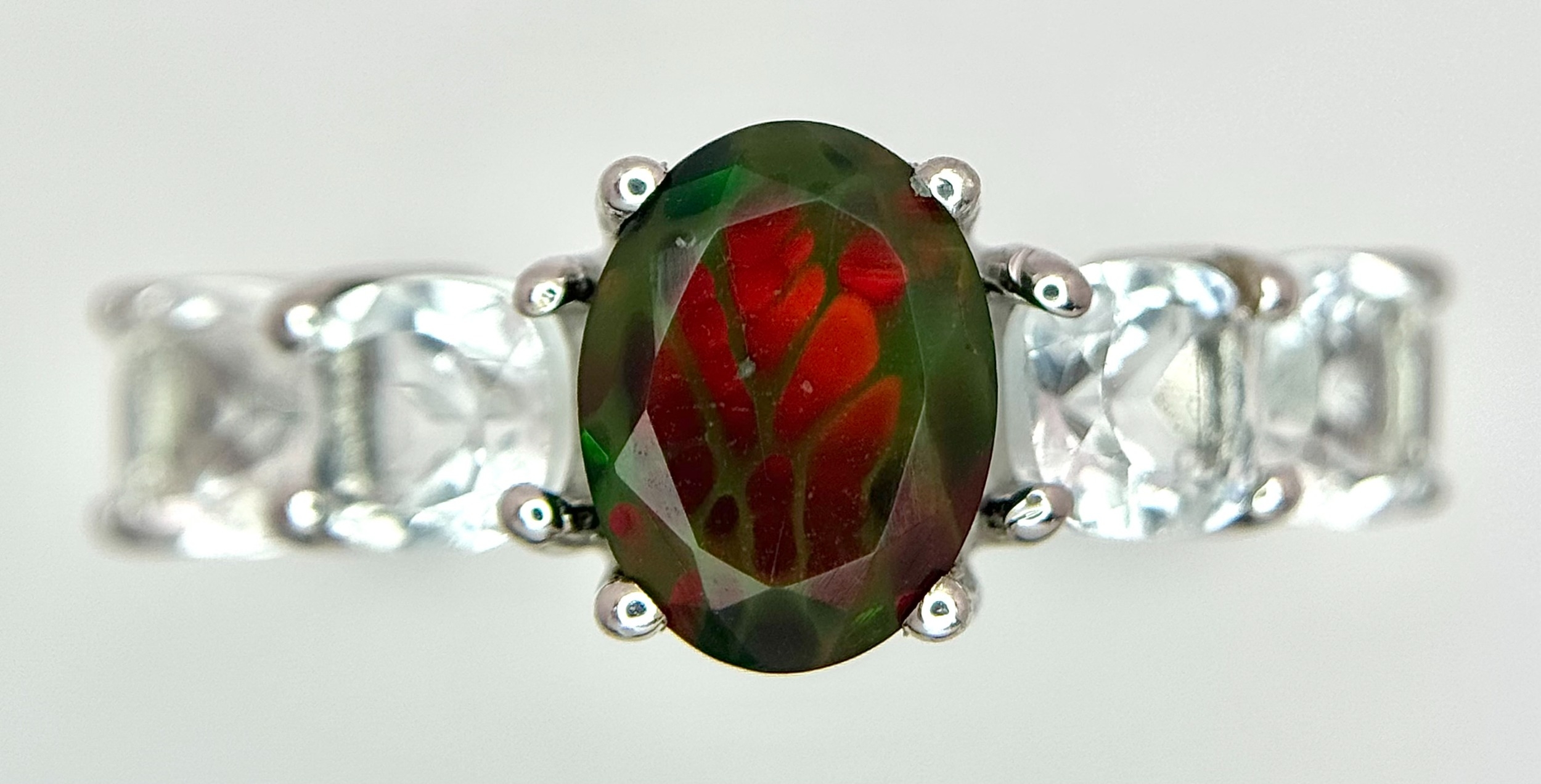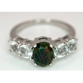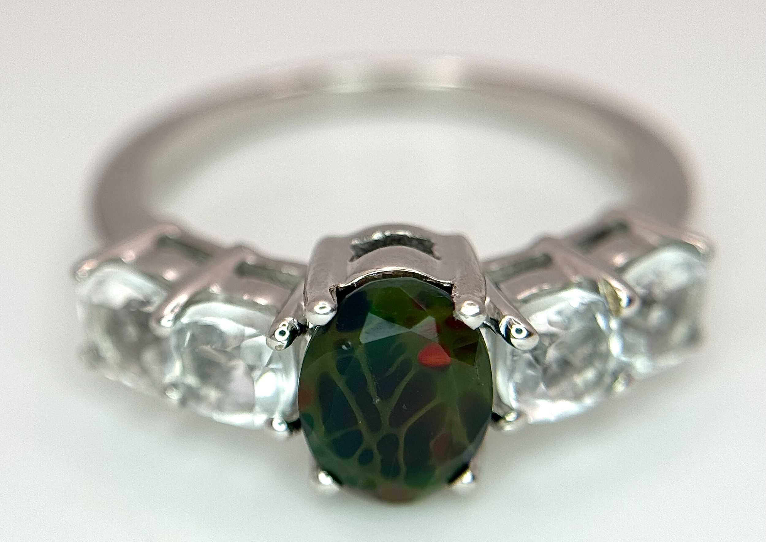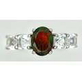An attractive Sterling Silver Bloodstone and White Quartz Ring Size Q. The Ring is set with a 7mm Oval Cut Bloodstone with White Quartz Set into the Shoulders. Gross Weight 3.85 Grams