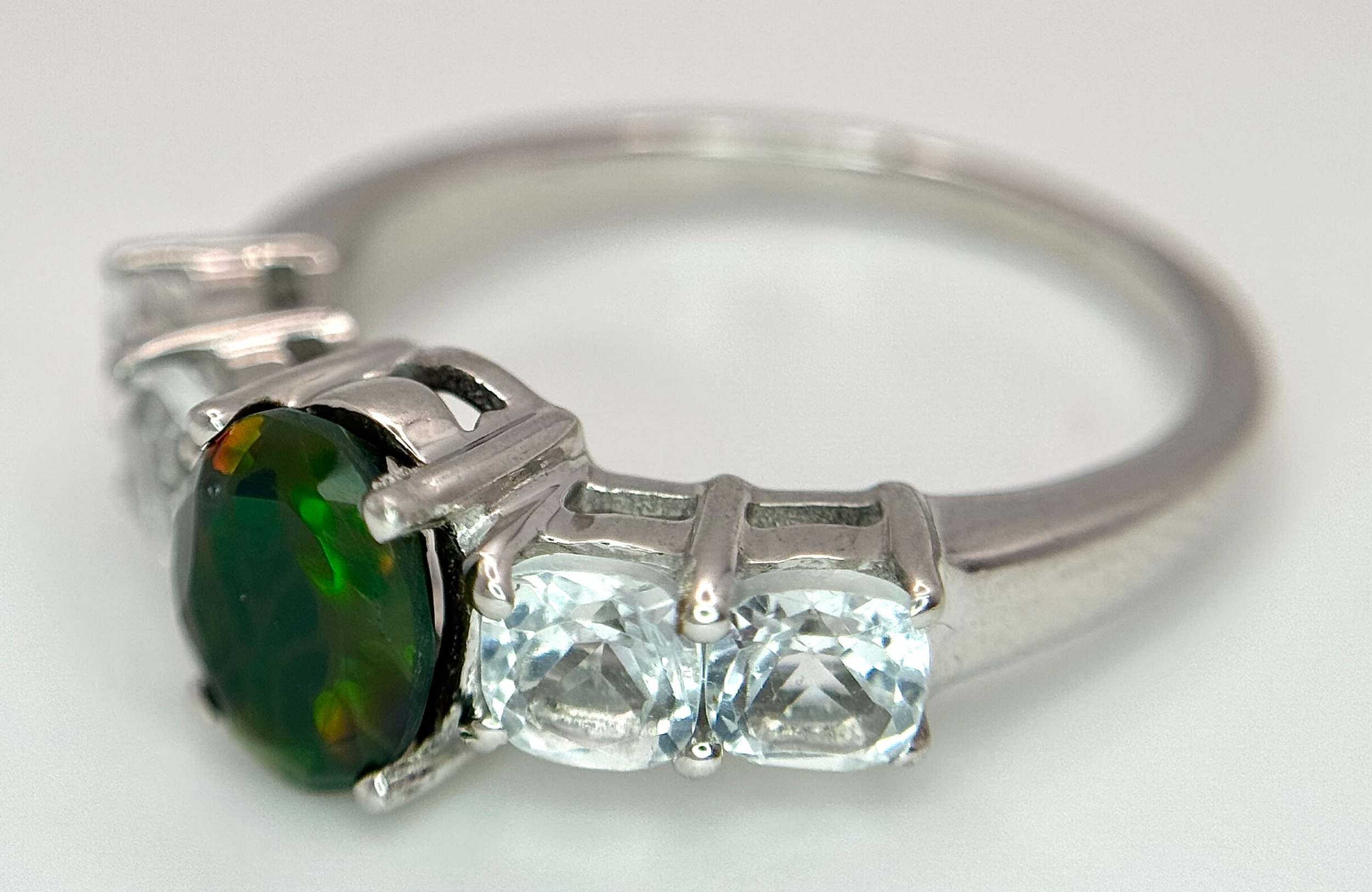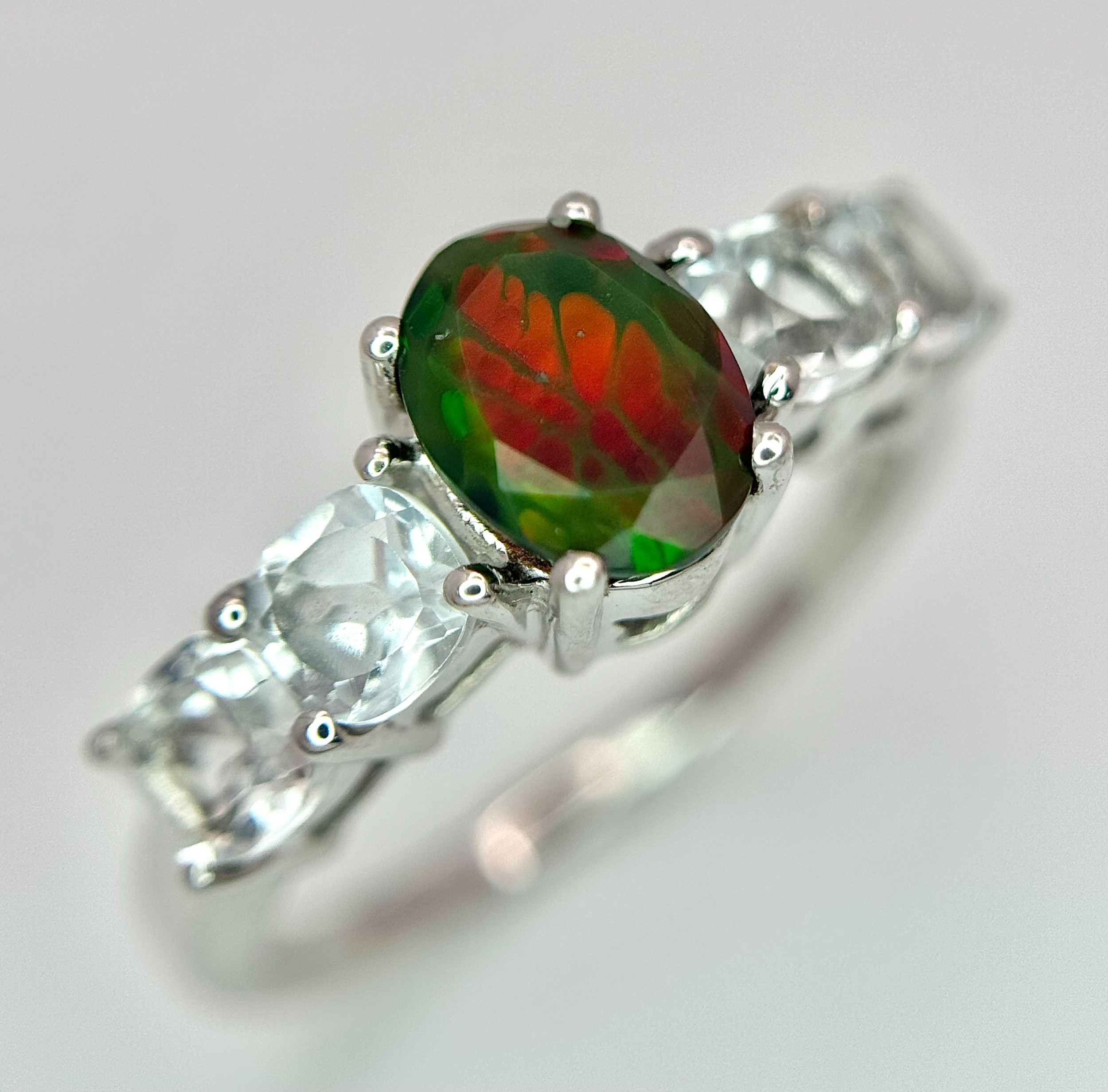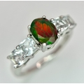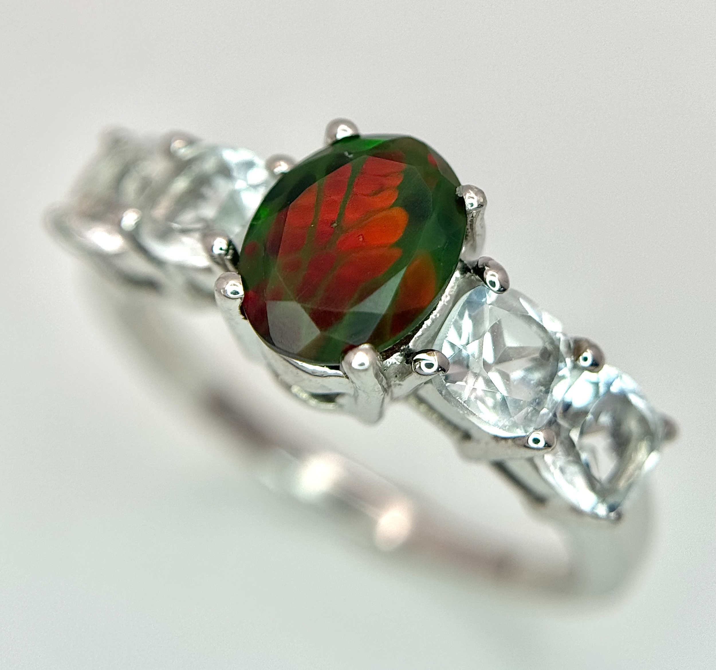 An attractive Sterling Silver Bloodstone and White Quartz Ring Size Q. The Ring is set with a 7mm Oval Cut Bloodstone with White Quartz Set into the Shoulders. Gross Weight 3.85 Grams