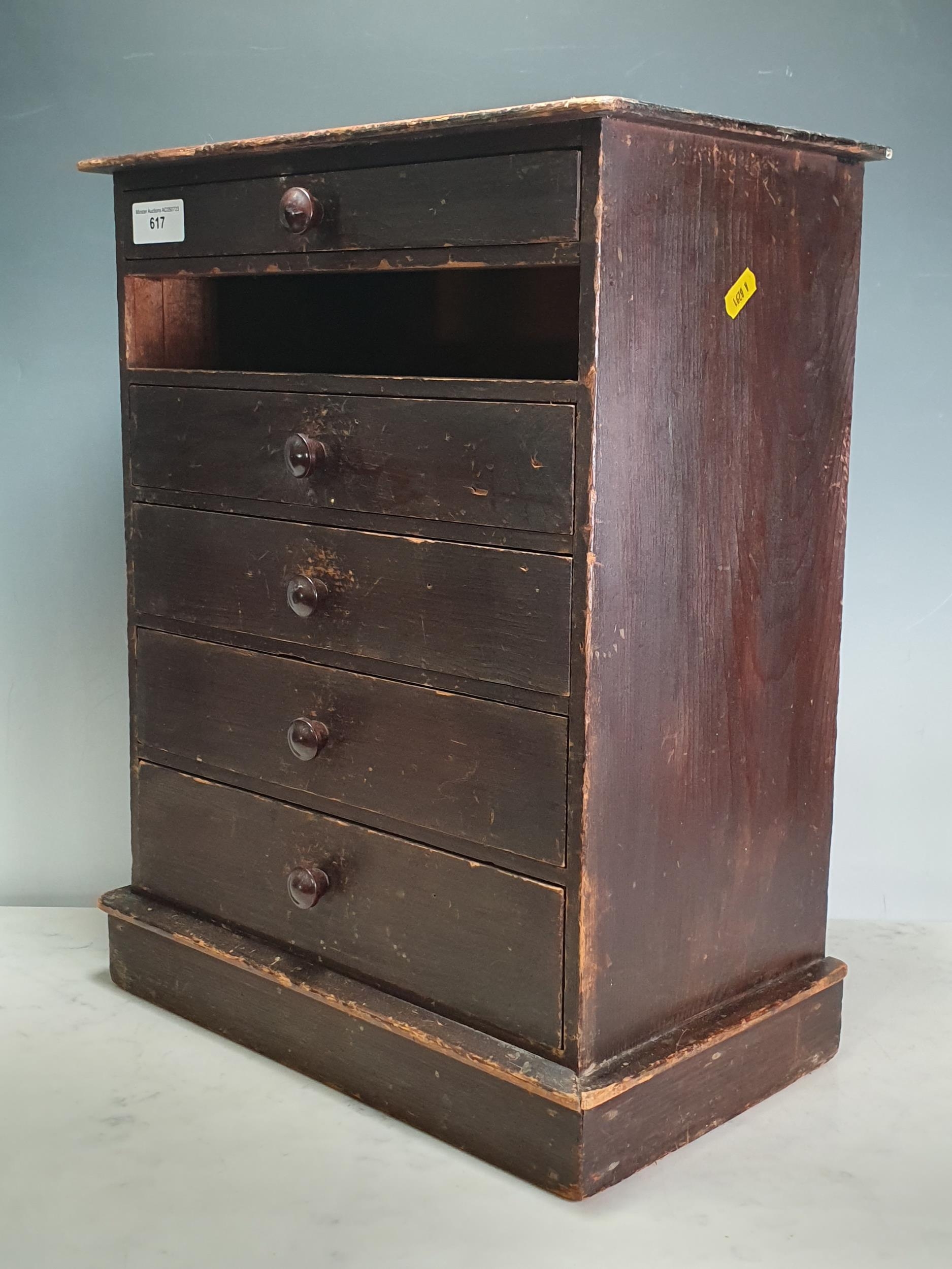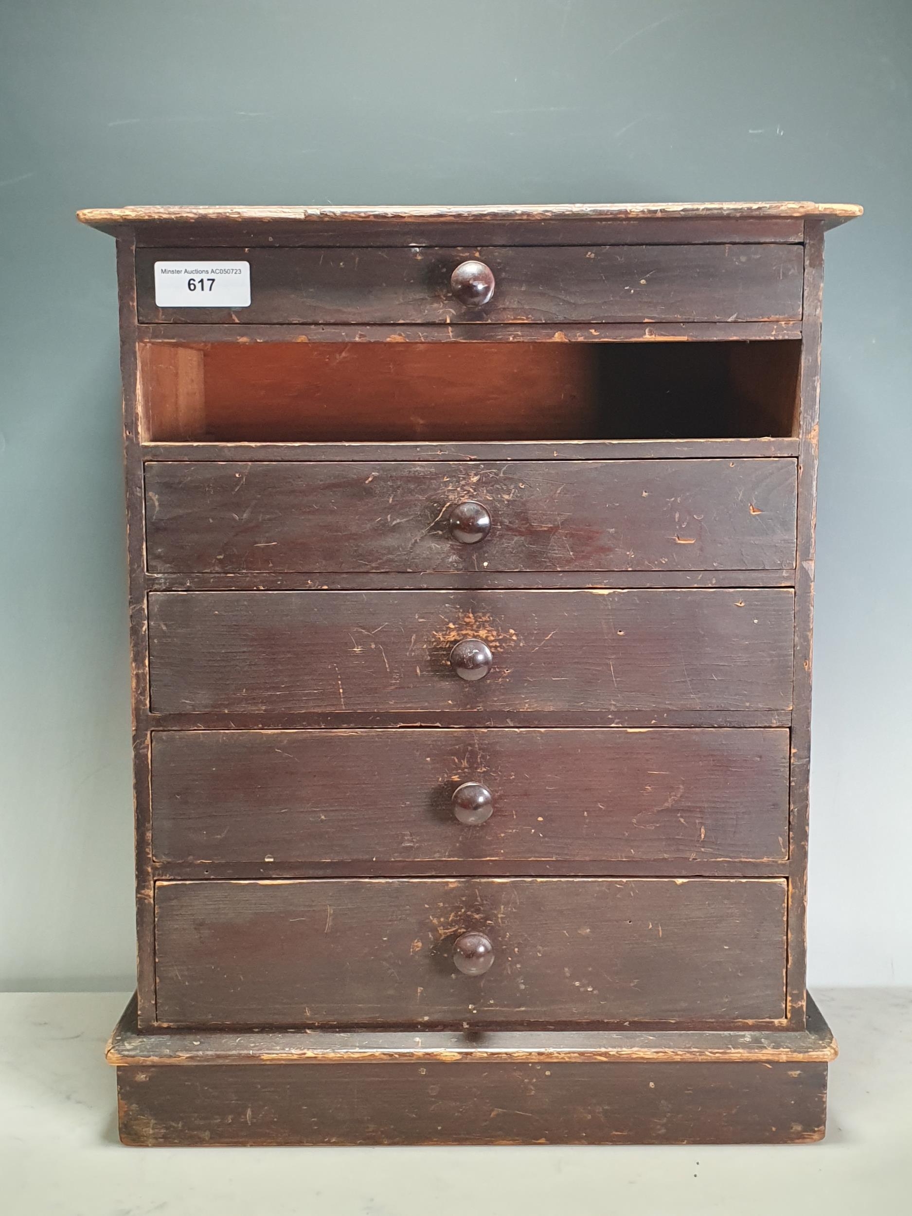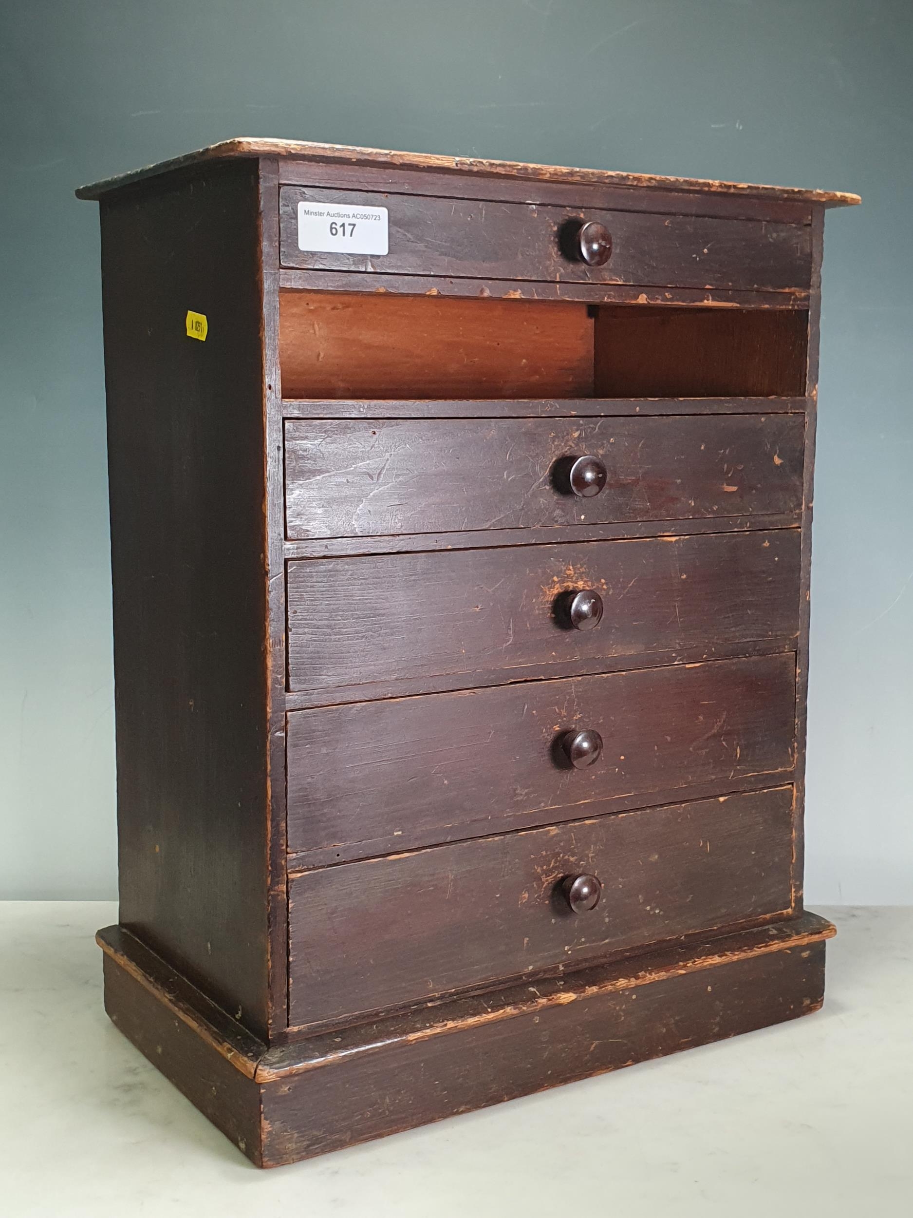 An antique stained pine Oologist's or Collector's Cabinet fitted five compartmentalised drawers, one missing 1ft 7in H x 1ft 3in W