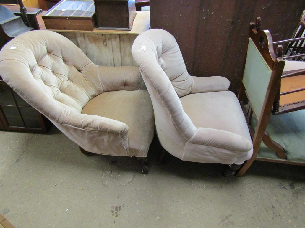 TWO VICTORIAN BUTTON BACK ARMCHAIRS