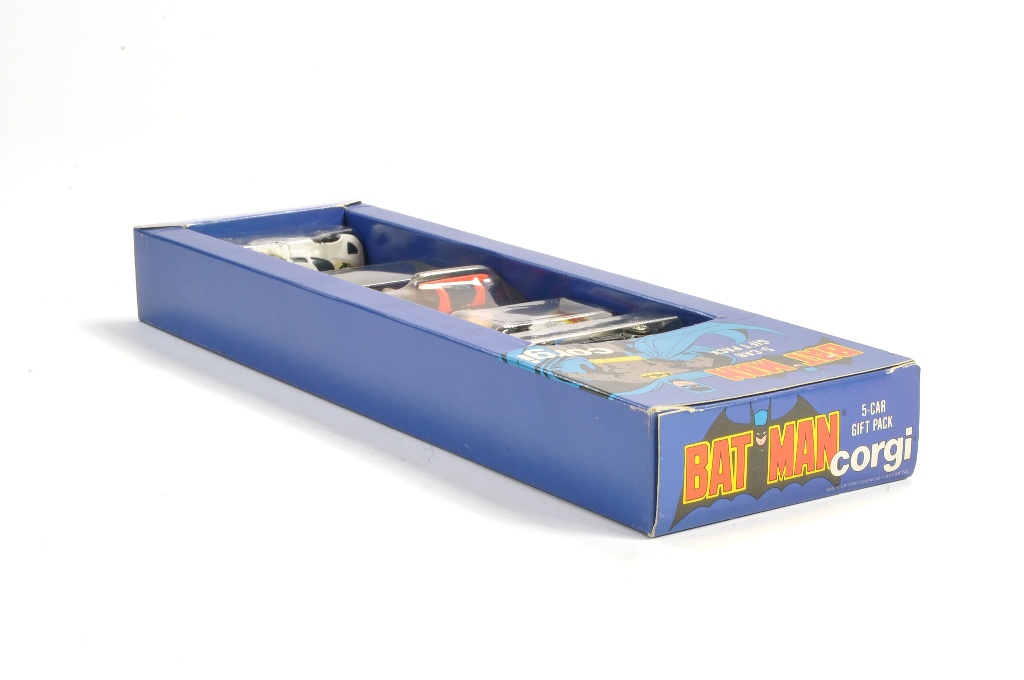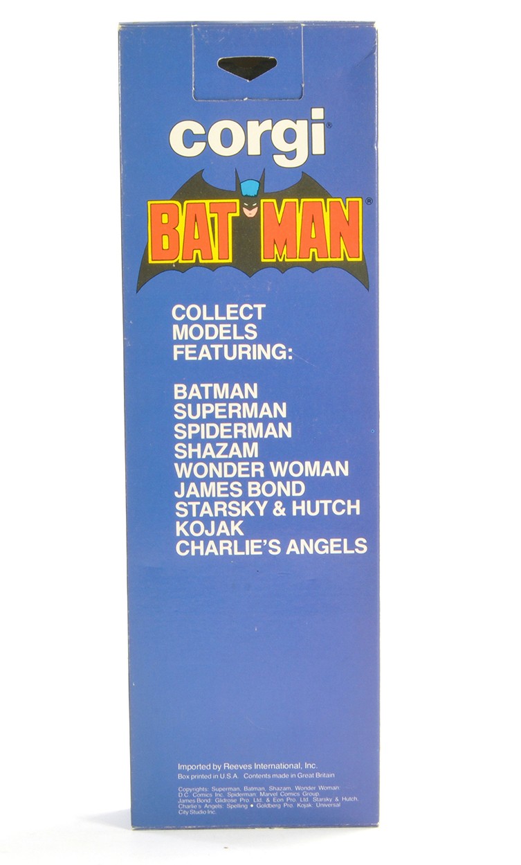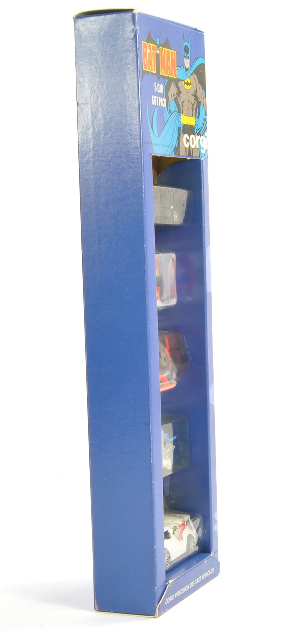 Corgi Juniors No. 7000 'Batman' 5-Car Gift Pack (USA - Reeves exclusive issue) comprising Penguinmobile, Batbike, Batmobile, Batcopter and Jokermobile. All look to be excellent within excellent blisters. Outer also generally excellent. Scarce set.