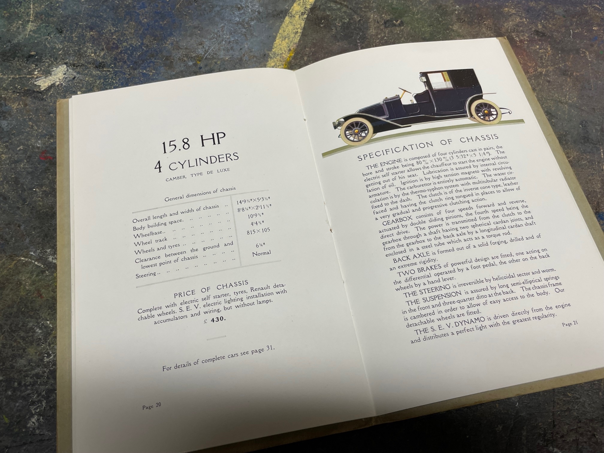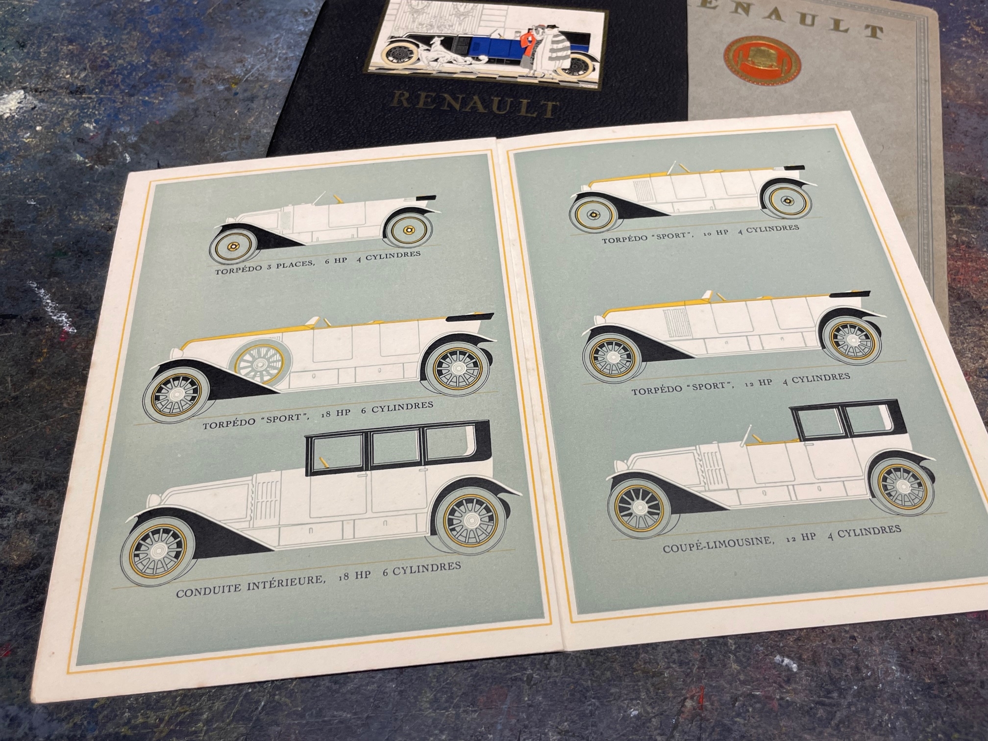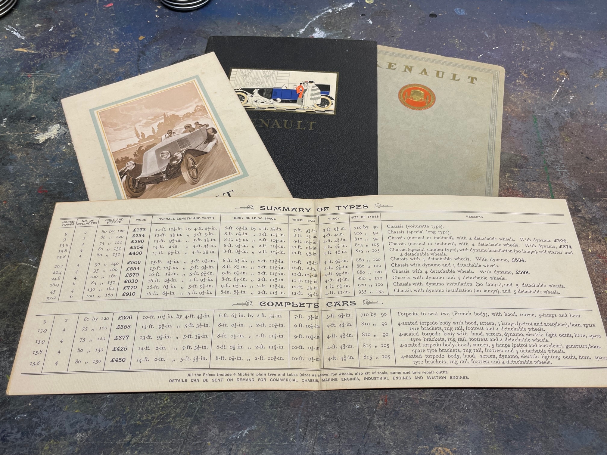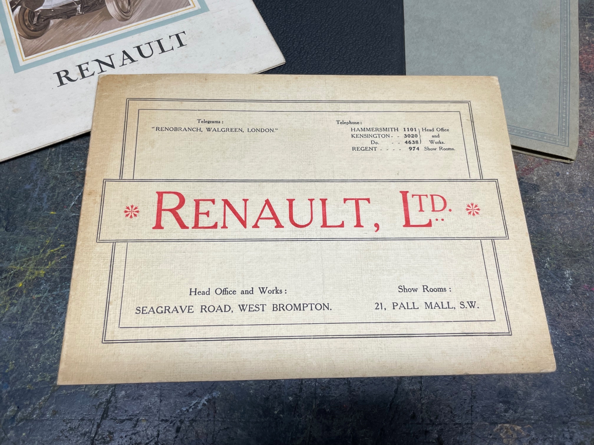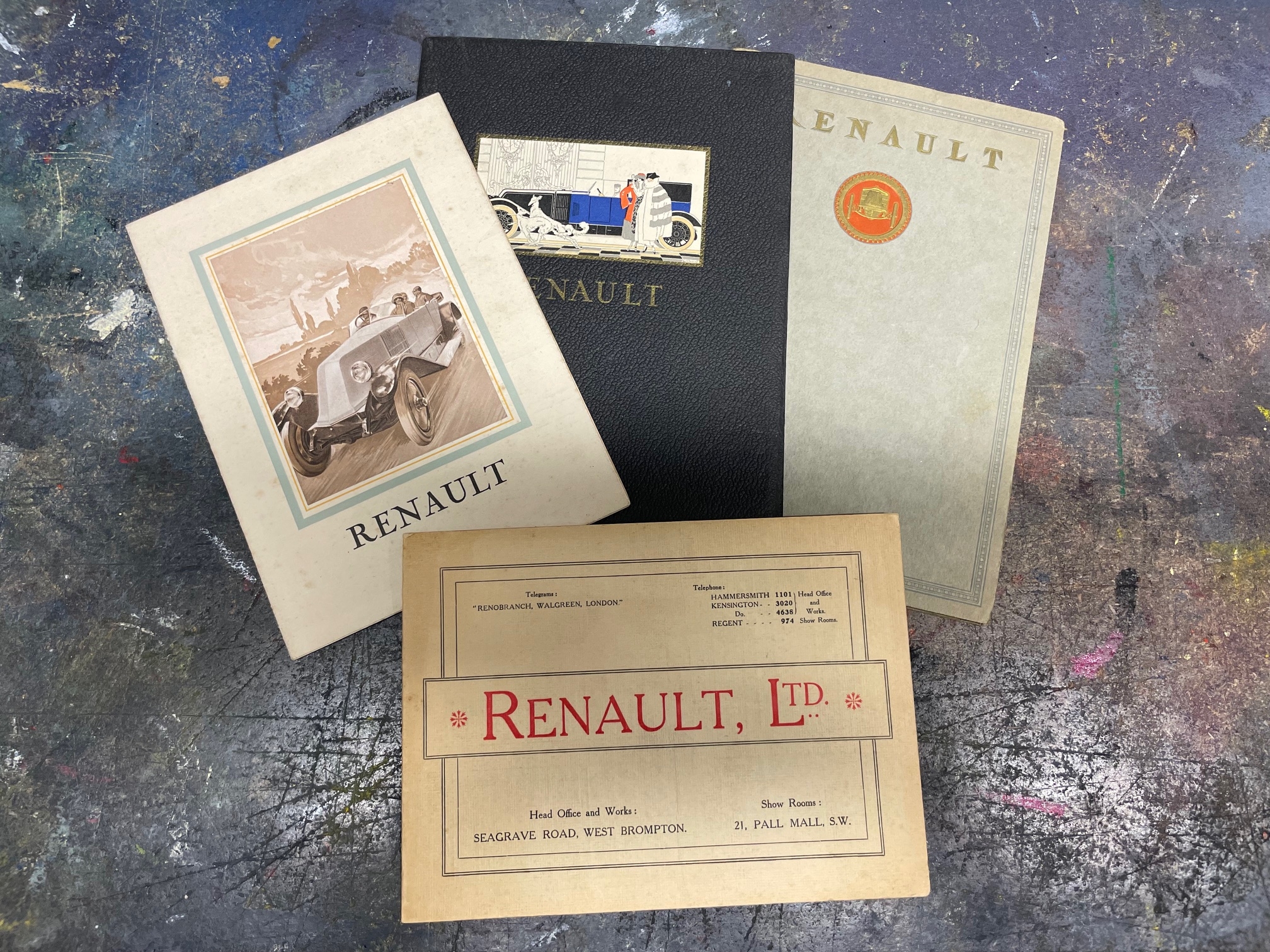 Renault - A Selection of 1920s Era Brochures, Renault Ltd Price List (Folded Card), Renault French Language Illustrated Leaflet, Renault French Language 20pp Brochure, Renault English Language 36pp Brochure