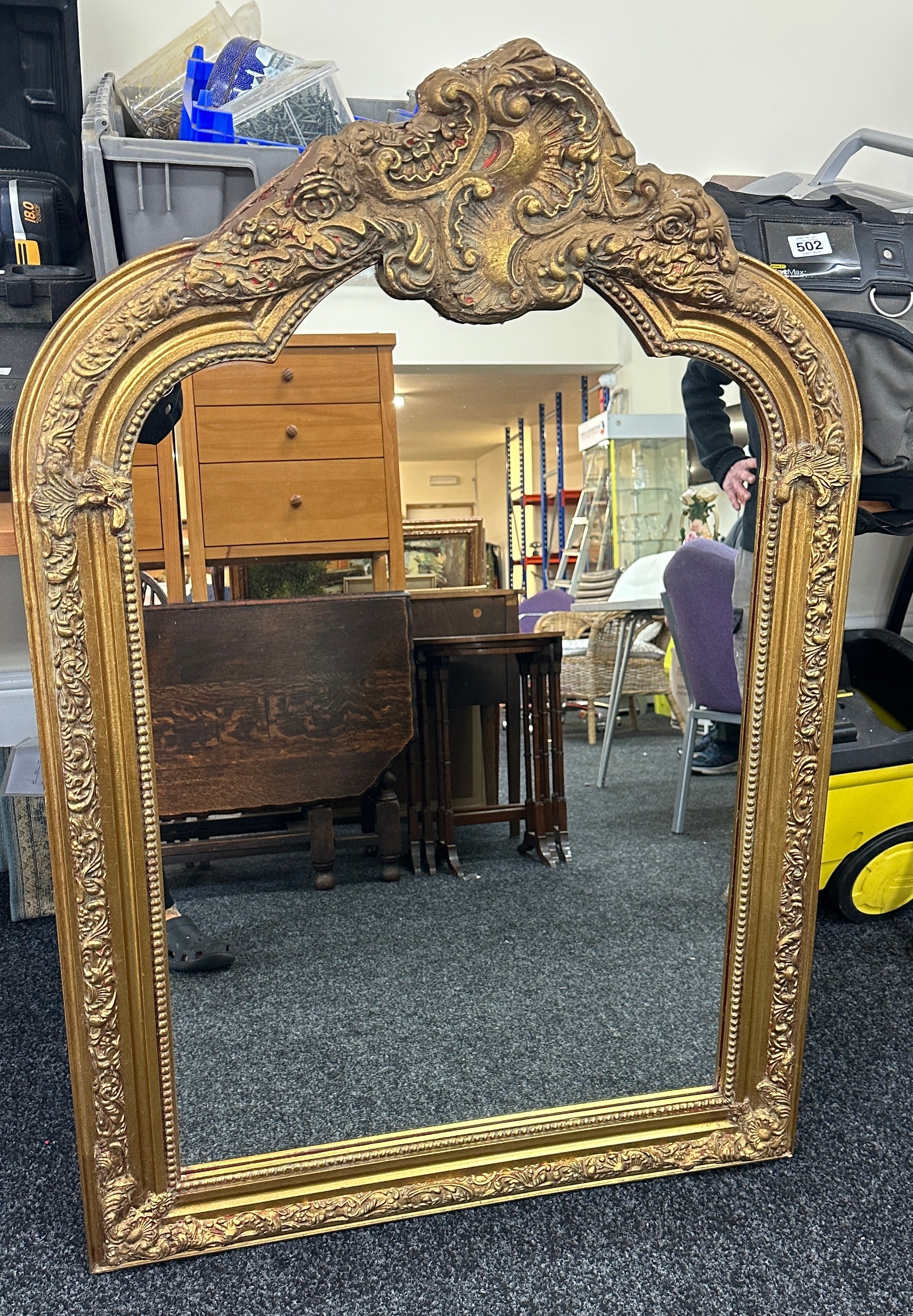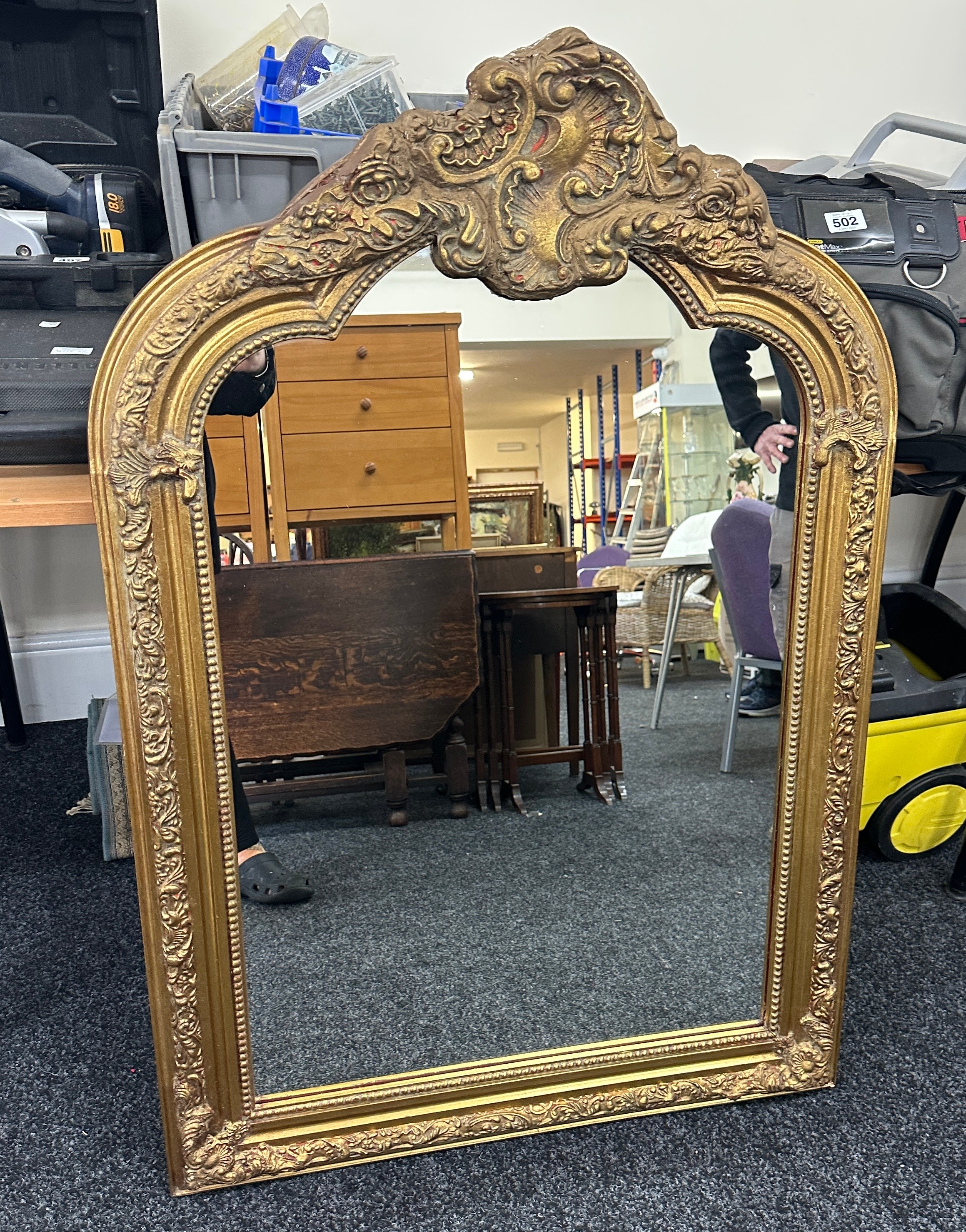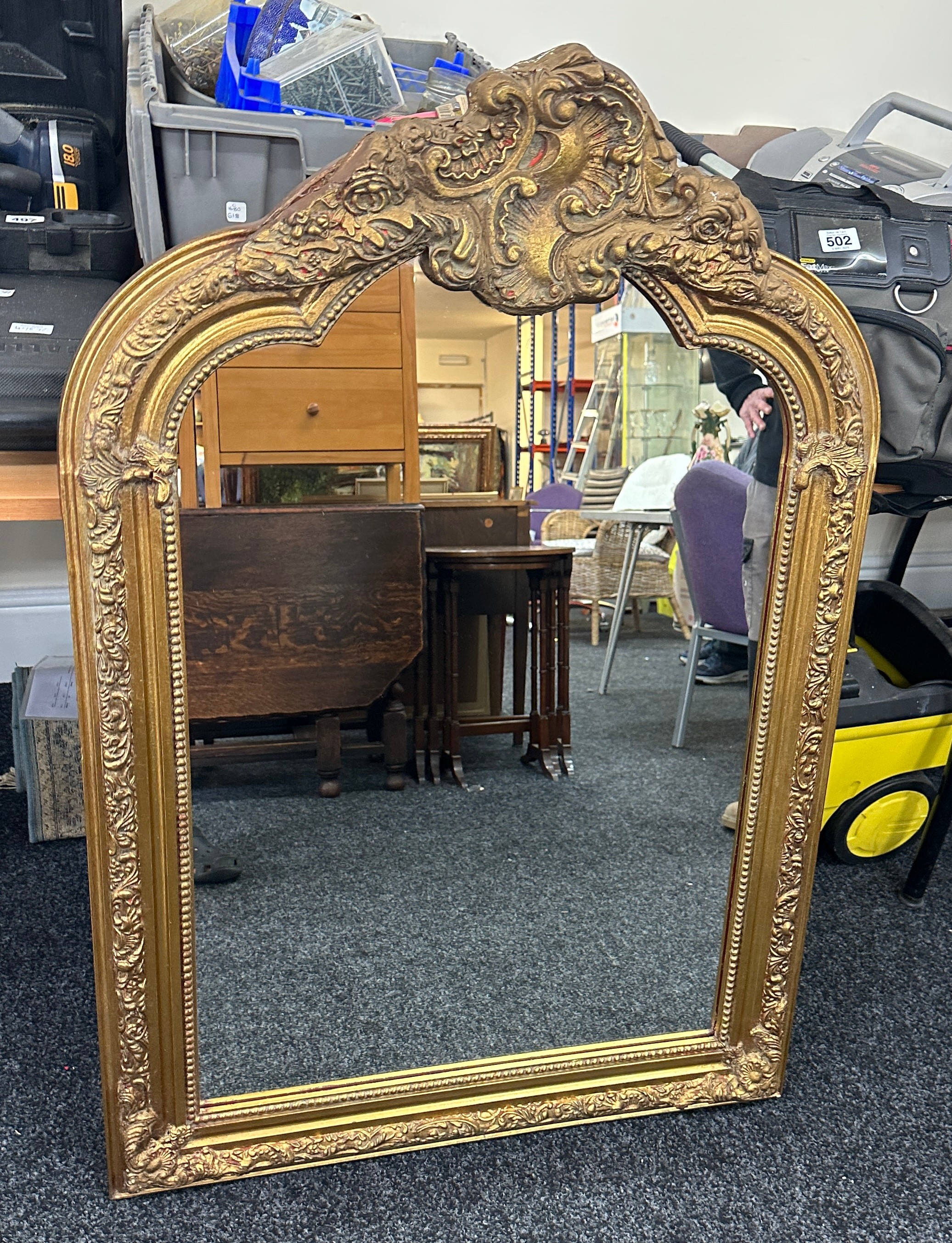 Large ornate gilt framed mirror measures approximately 115cm tall 80cm wide