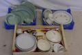 3 Boxes of china plates, mugs, bowls and Japanese style china (2 planstic Boxes & 1 wooden box)