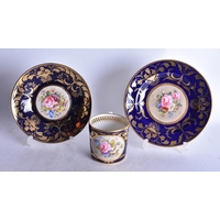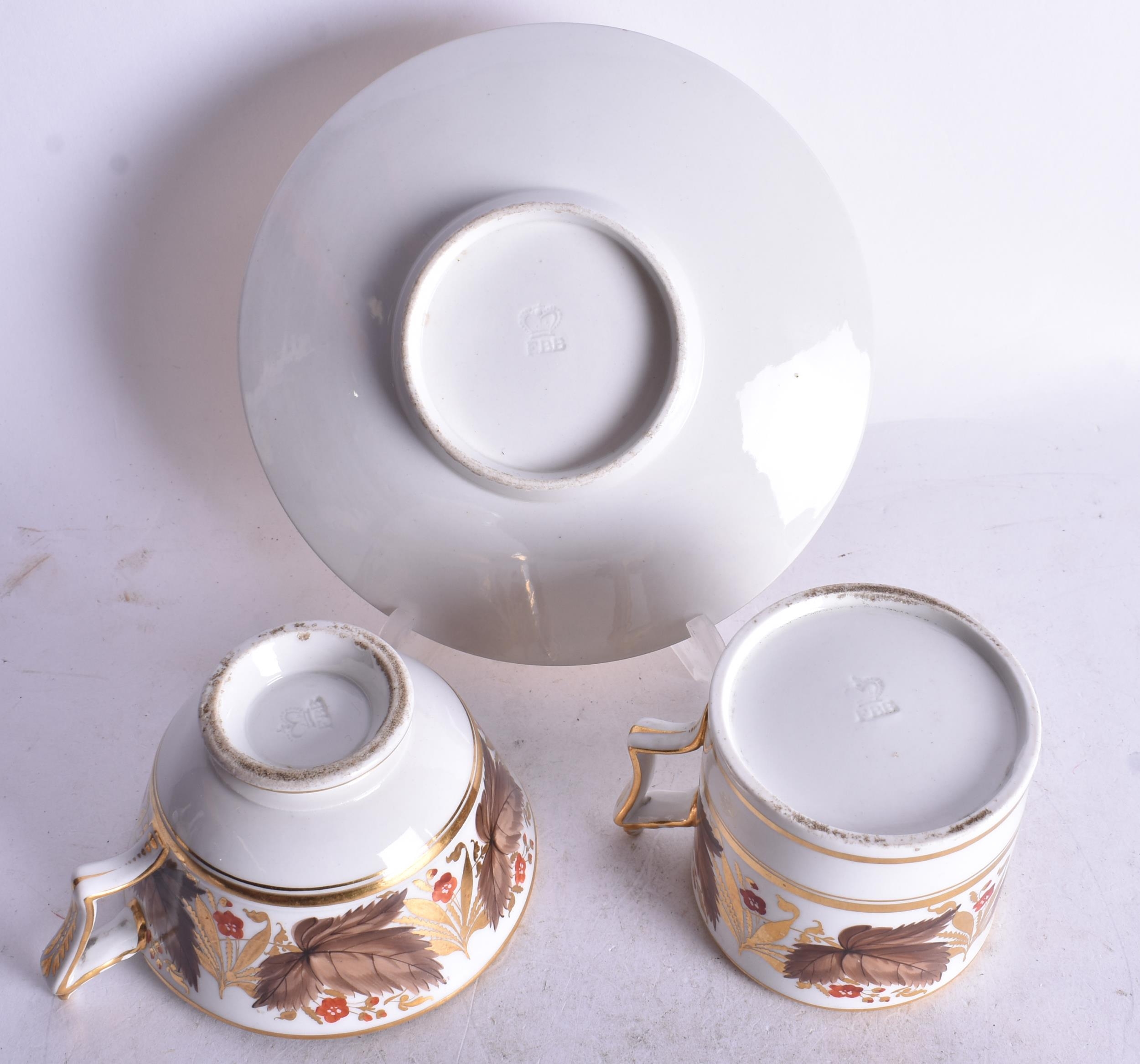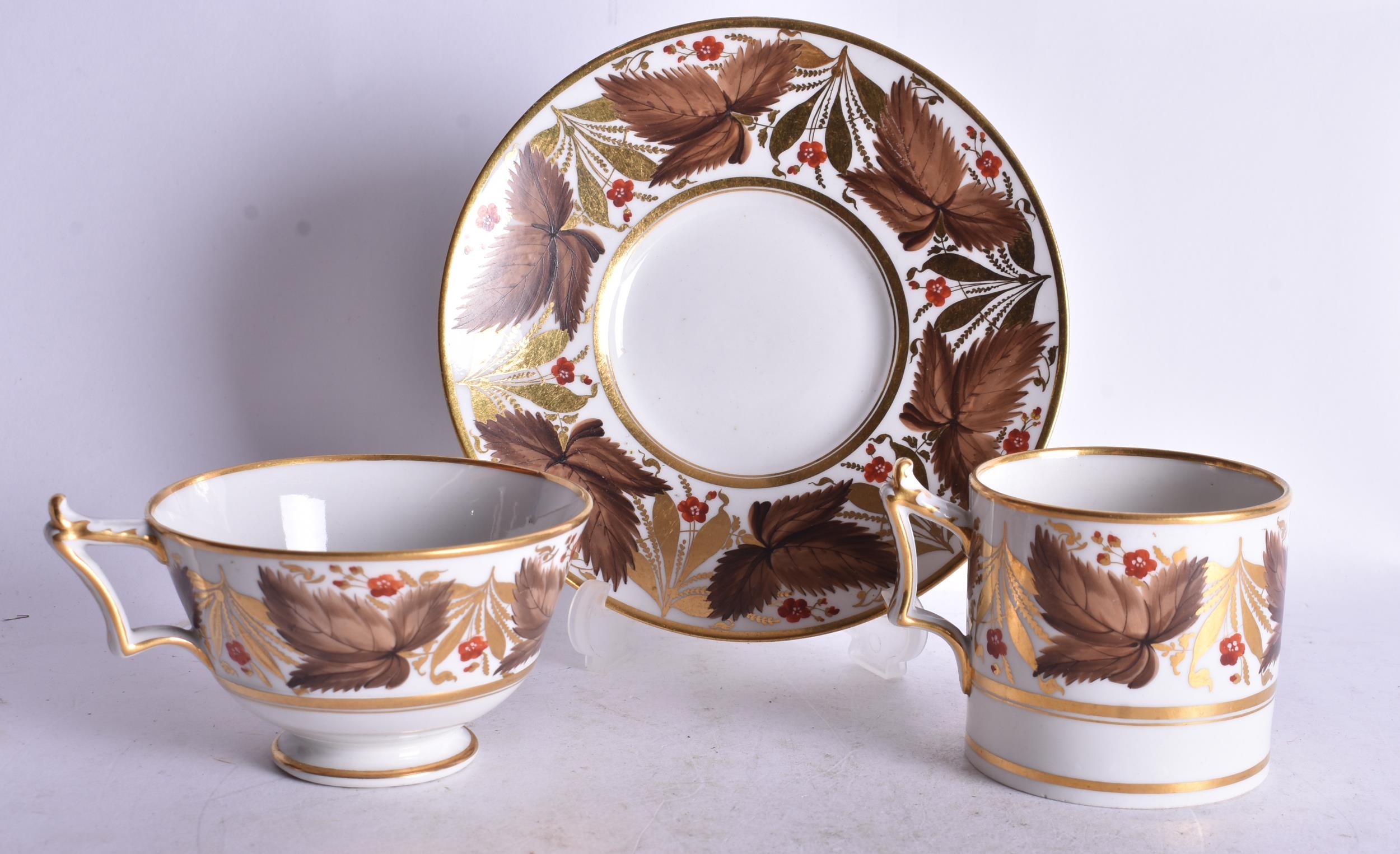 Early 19th century Flight Barr and Barr teacup, coffee can and saucer with brown leaves and red flowers. Largest 15cm diameter (3)