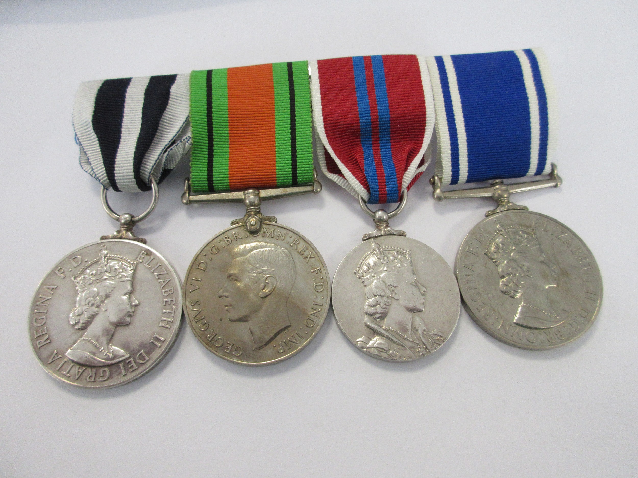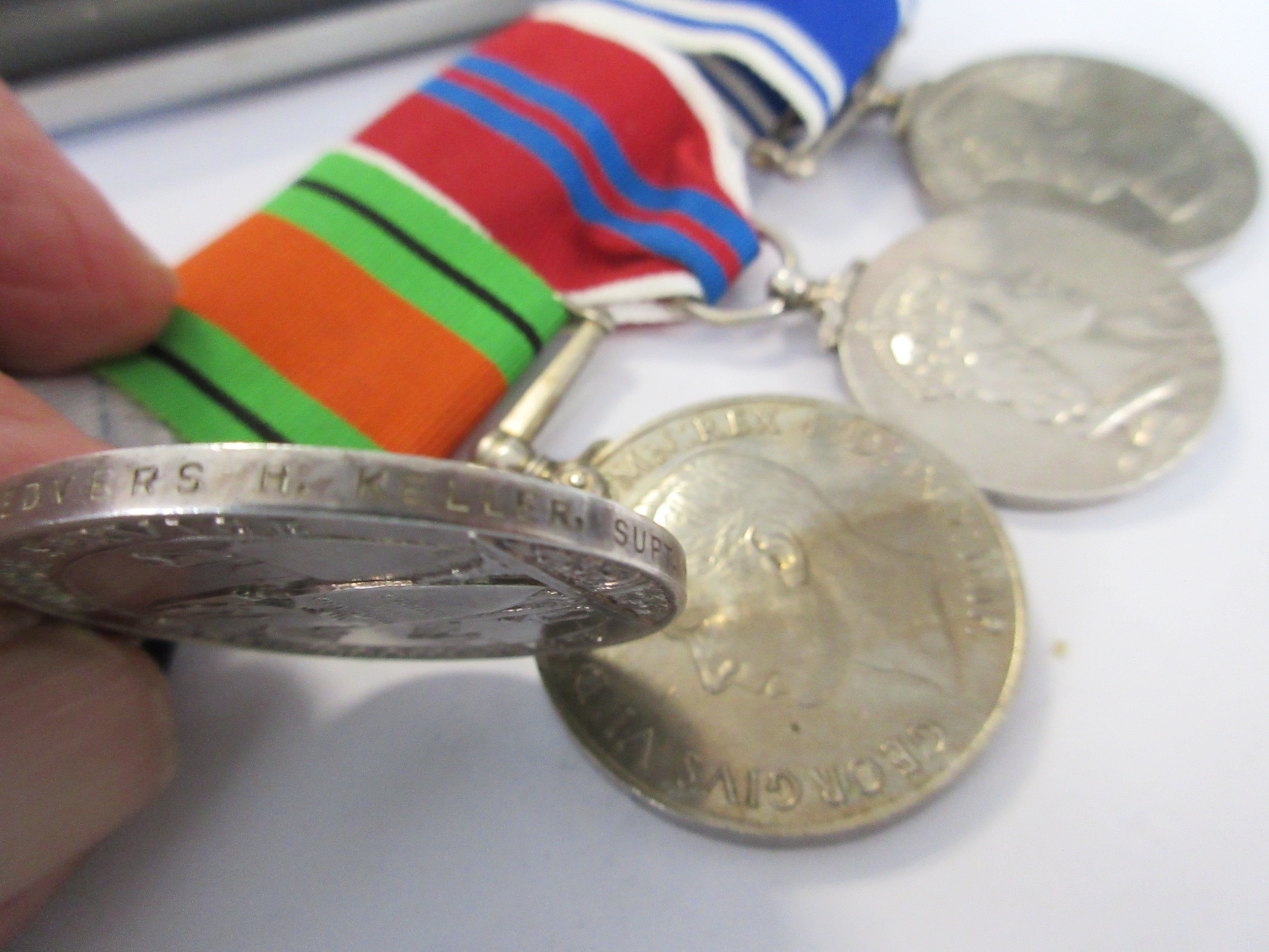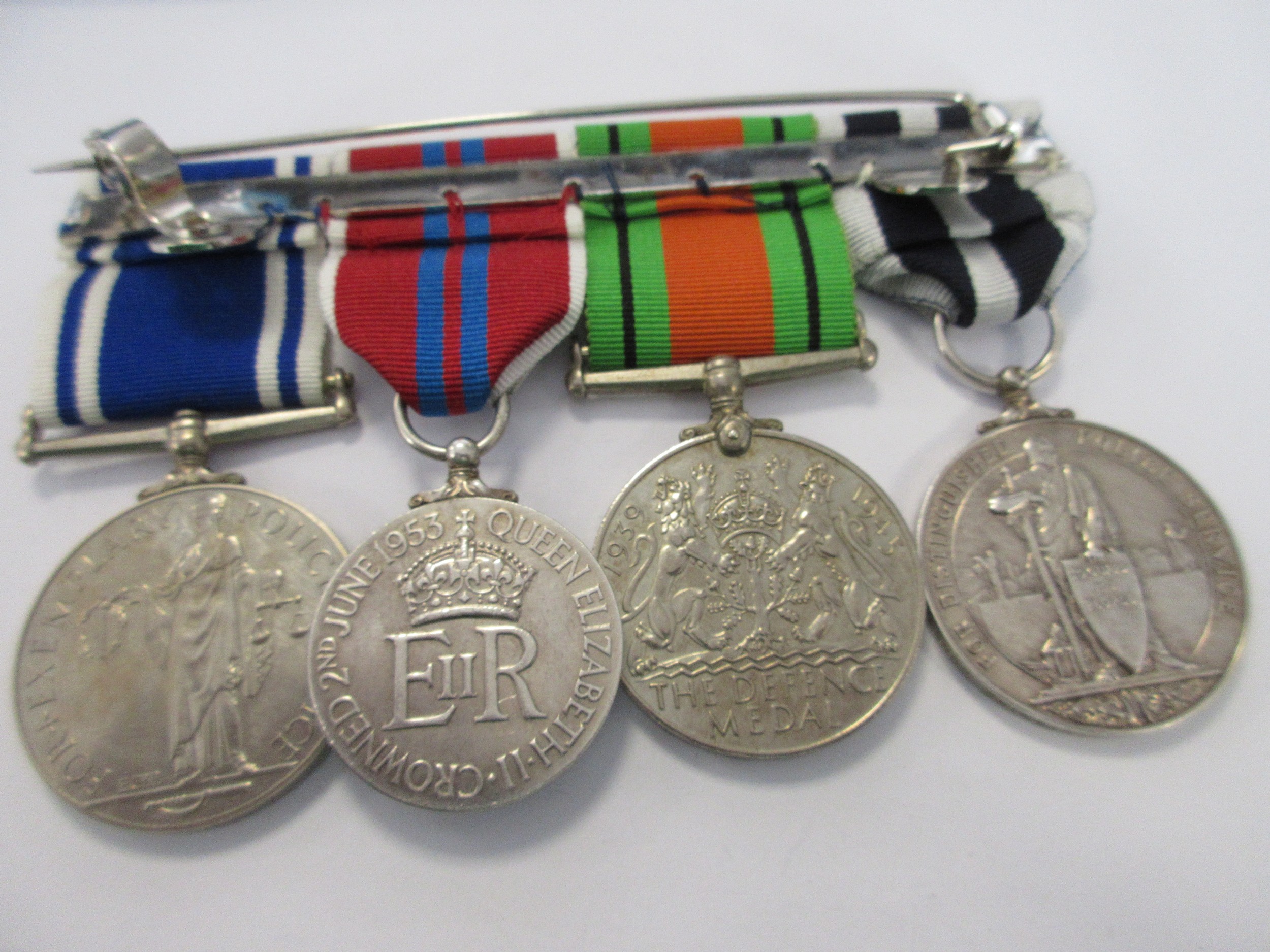 A George VI & Elizabeth II medal Group comprising Queen's Police Medal named to Redvers H Keller, Supt, Wiltshire Constab., A WW2 Defence Medal, a 1953 Coronation Medal and a Police Long Service Medal inscribed to Supt Redvers H Keller, mounted for wear, all in good order with good ribbons, a lovely and unusual set awarded to a county officer. Chief Superintendent Keller QPM retired in 1968. (See Lot 3 - we believe his son's medal. Supt Keller was possibly named after General Sir Redvers Buller, his father's commander in the Boer War).