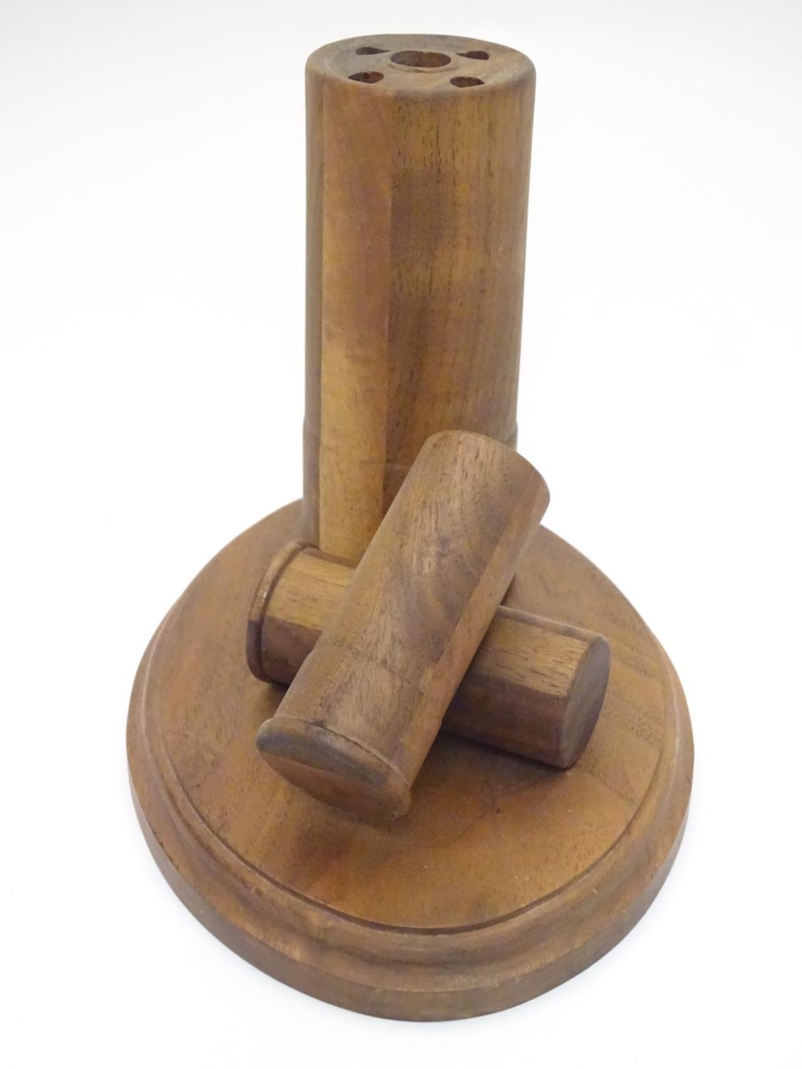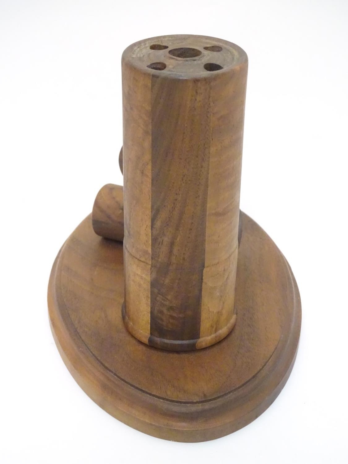 Shooting: a walnut desk tidy, formed as three shotgun cartridges. 7'' tall, 9 1/2'' wide, 6'' deep