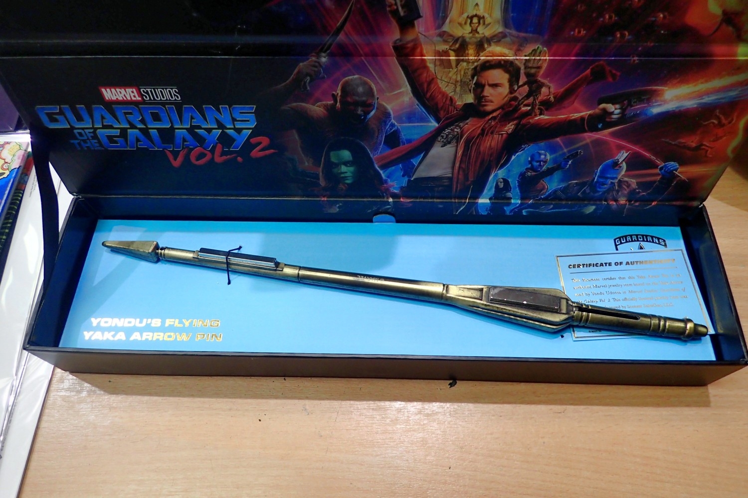 Boxed Marvel studies Yondu's flying yaka arrow pin. UK P&P Group 2 (£24+VAT for the first lot and £5+VAT for subsequent lots)