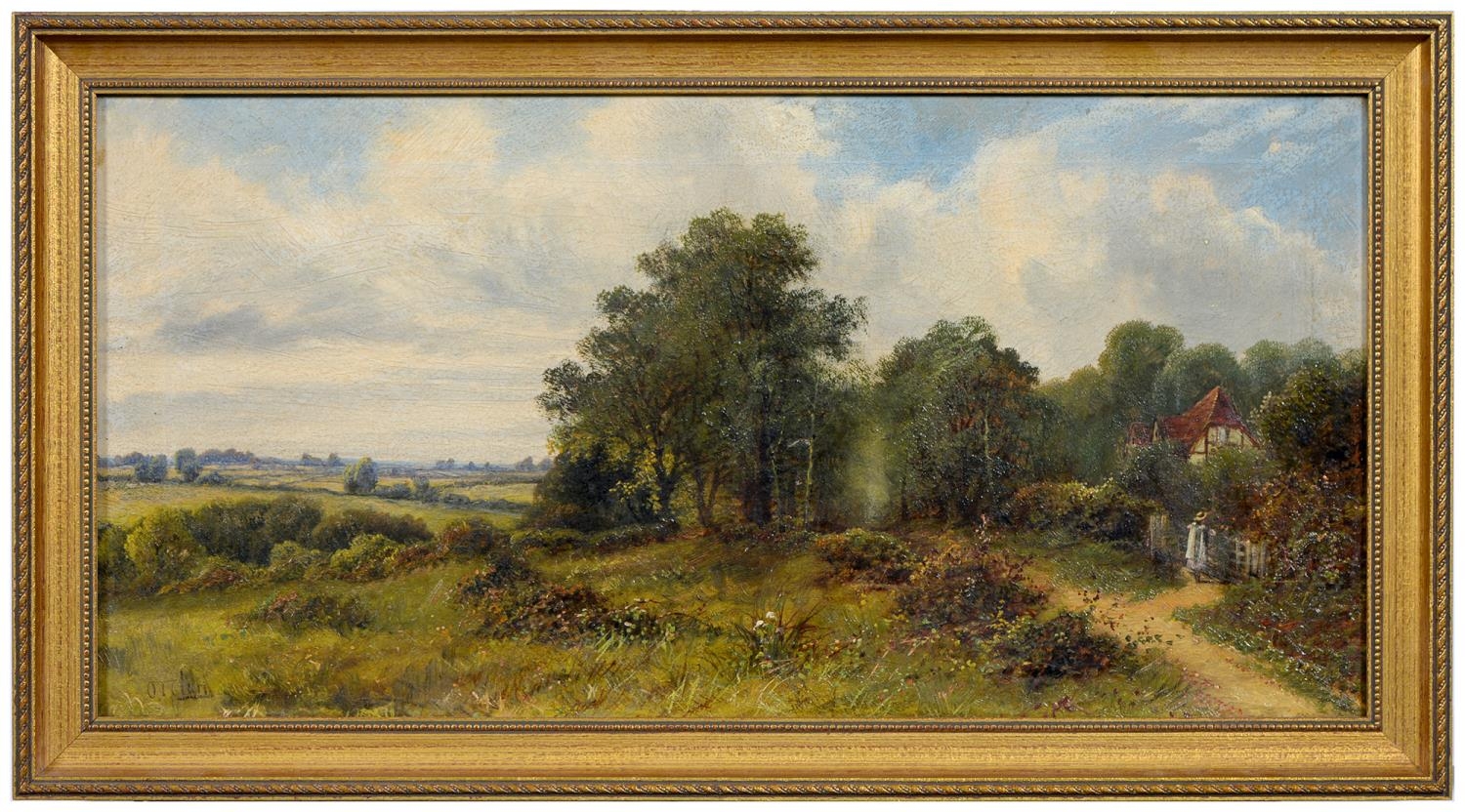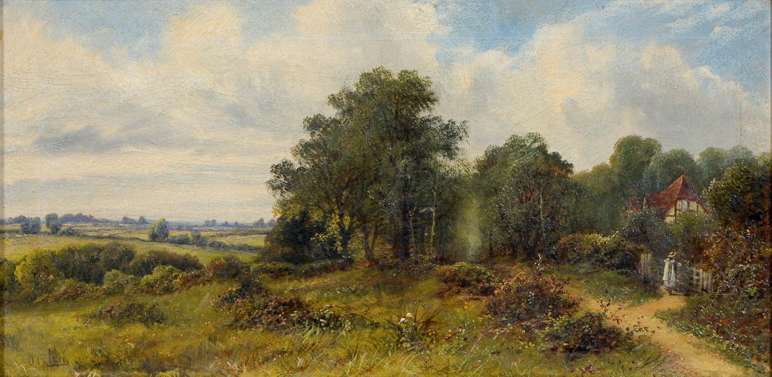Octavius Thomas Clark (1851-1921) - Near Frome, Somerset, signed, inscribed on the stretcher, oil on canvas, 29.5 x 60cm