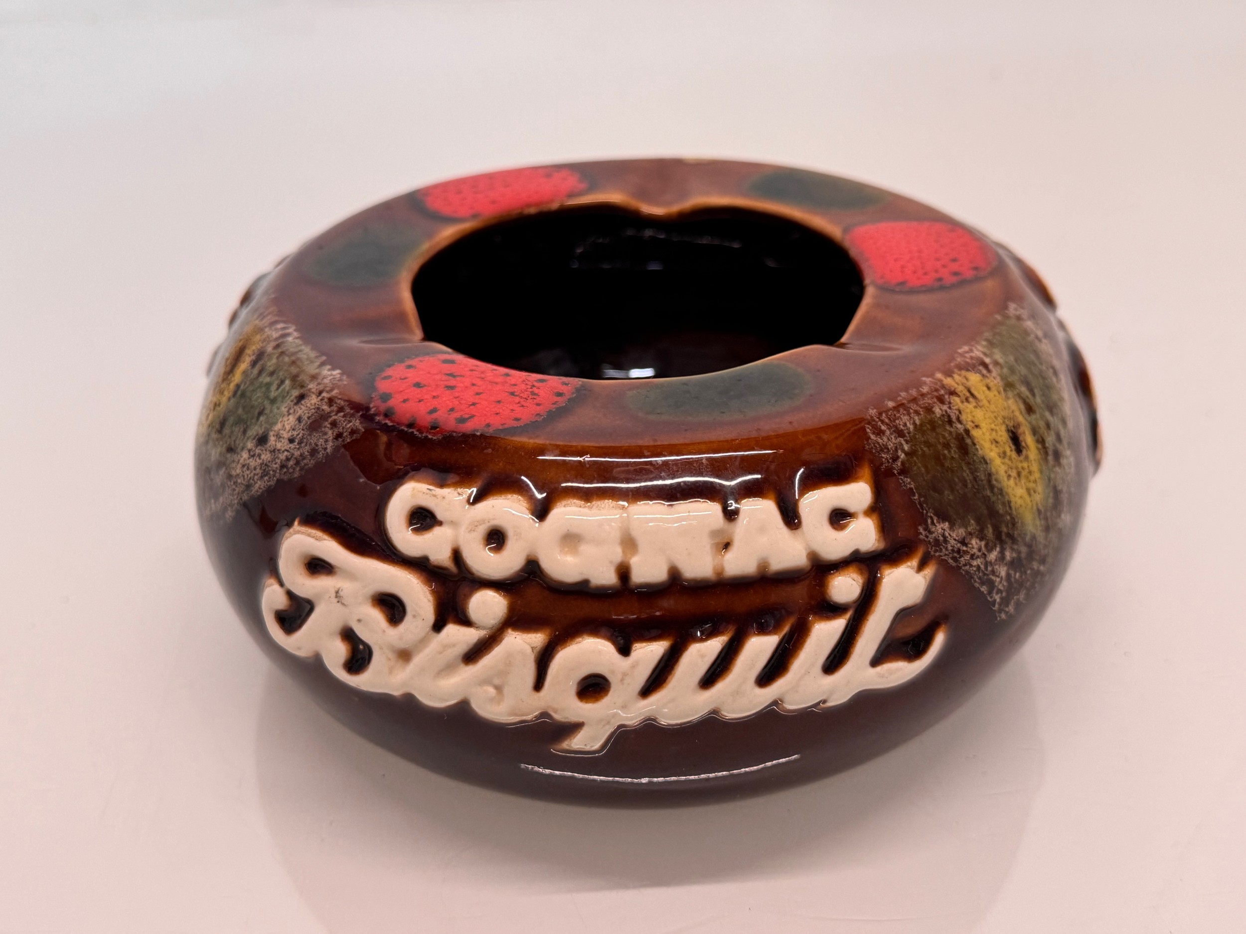 Breweryana, a large mid-century Cognac Bisquit advertising ashtray by Ricard pottery. 18 cm diameter.