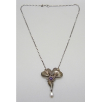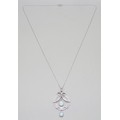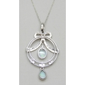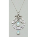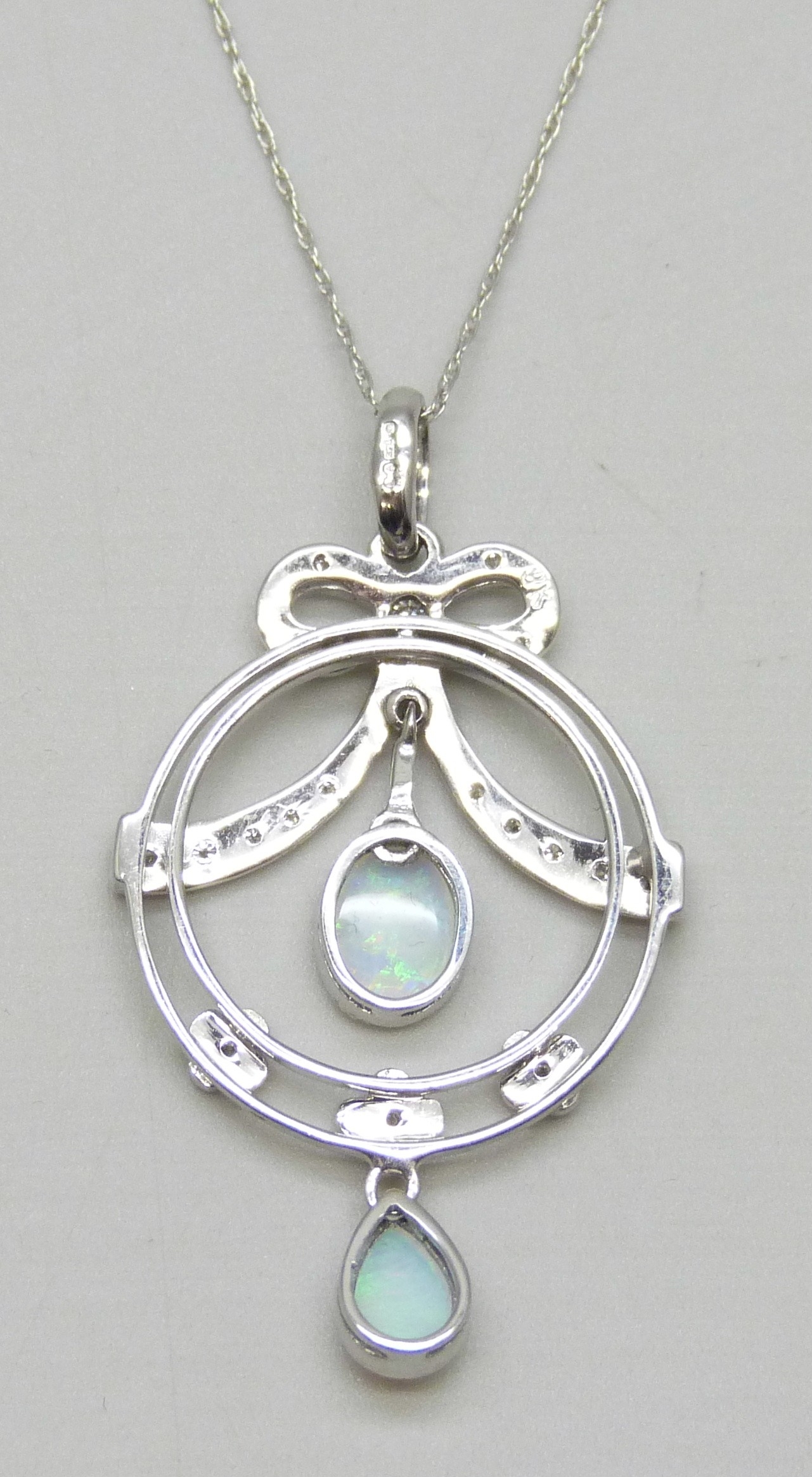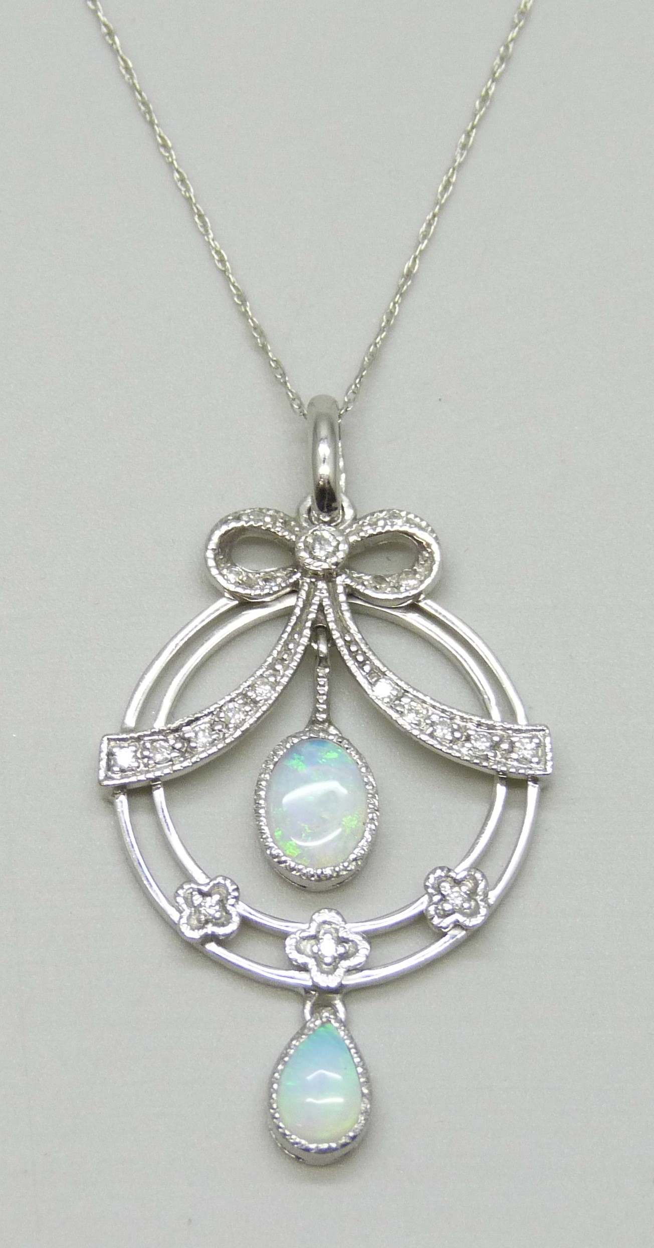 A 9ct white gold, diamond and opal pendant on a 10k white gold chain, 3.5g, 3.9cm including bail