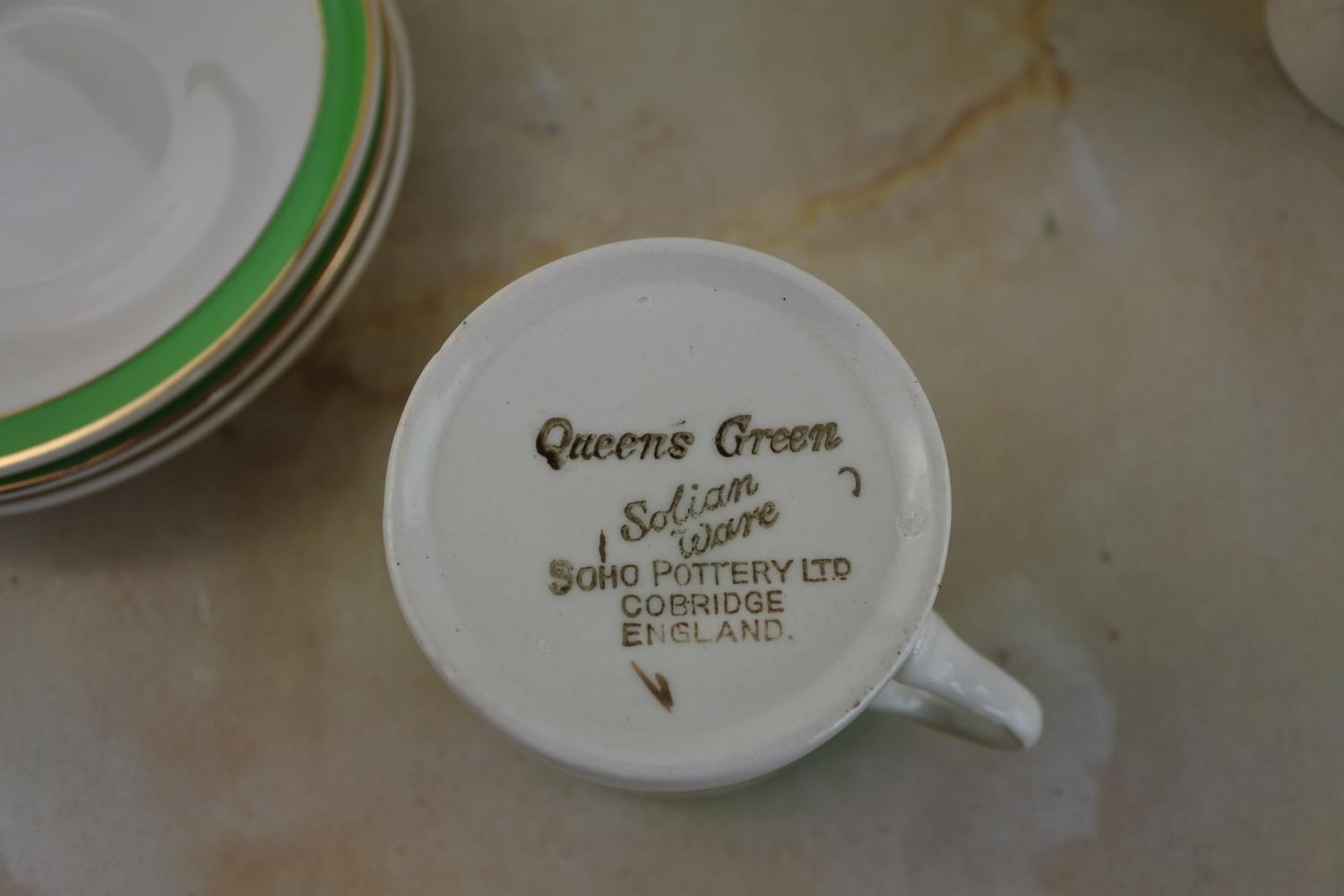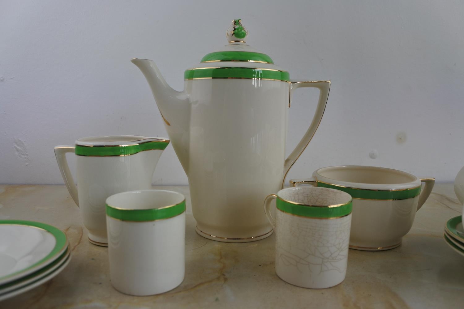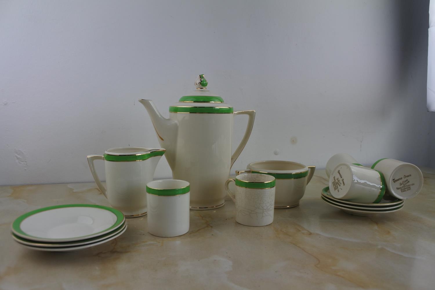 A stunning Art Deco Solian Ware 'Queens Green' coffee set by Soho Pottery Ltd.