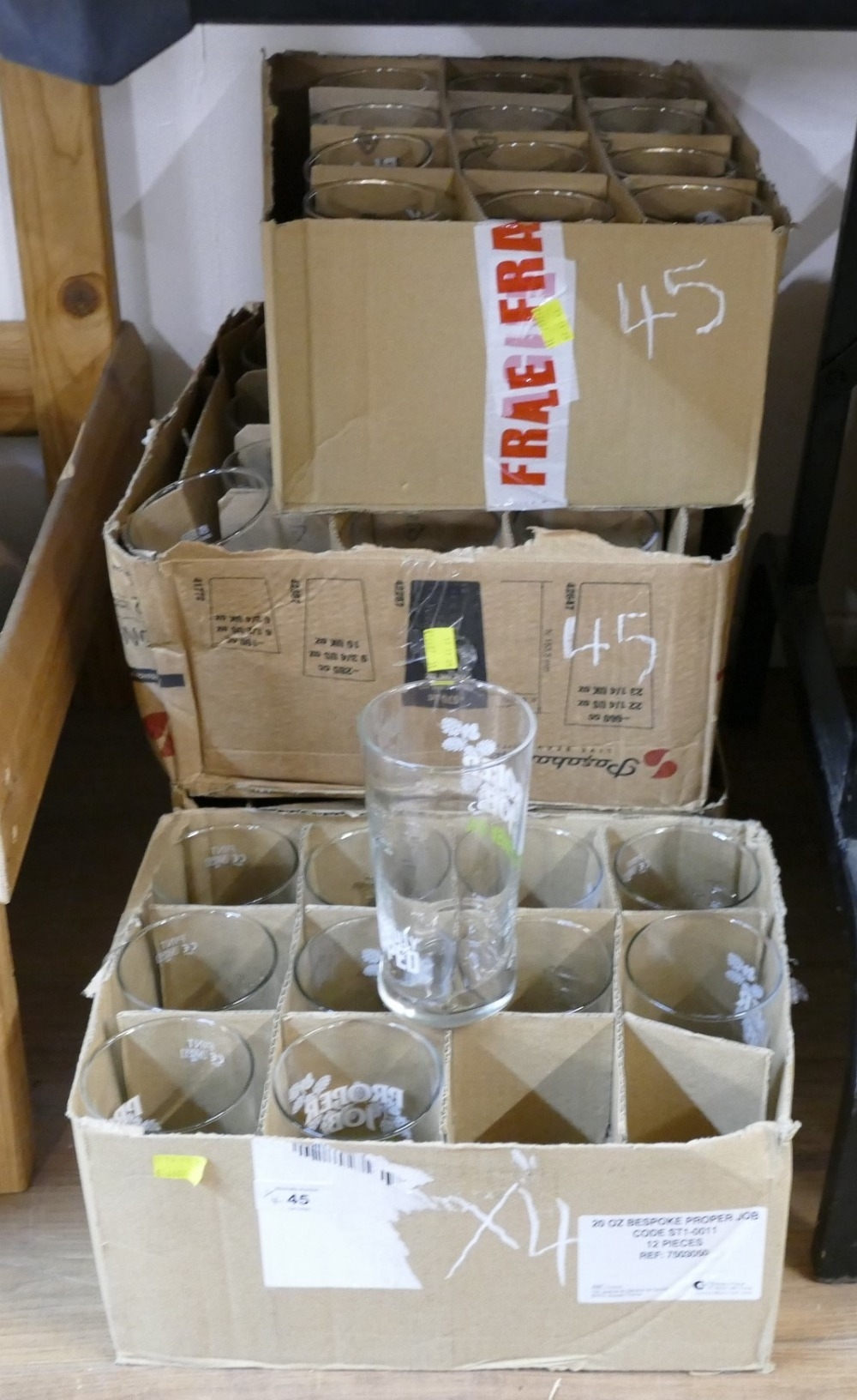 Four boxes of as new boxed brewery glasses, Proper Job pint, Black Sheep pint and Tiny Rebel pint