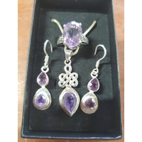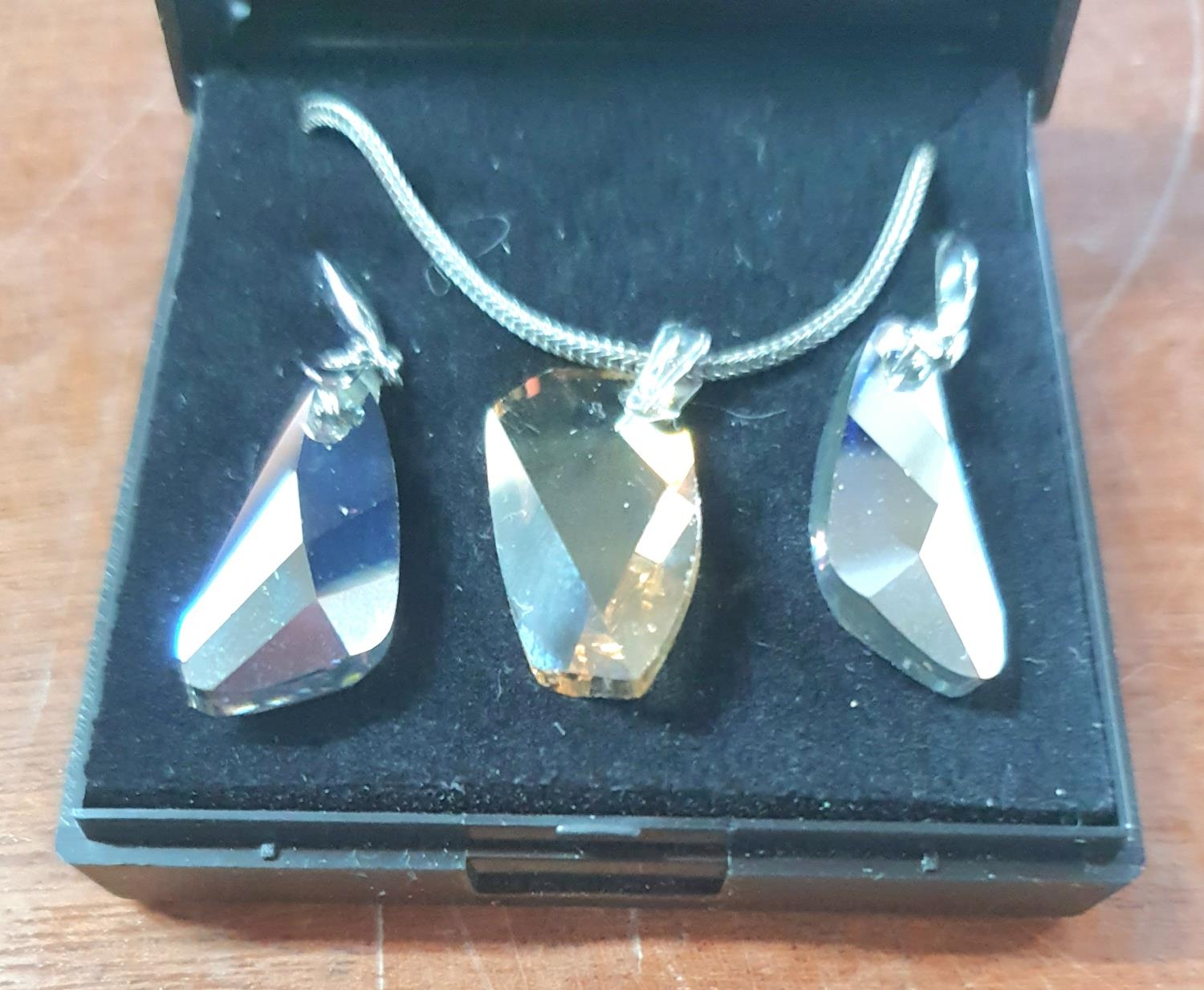925 silver necklace with crystal pendant together with associated crystal earrings