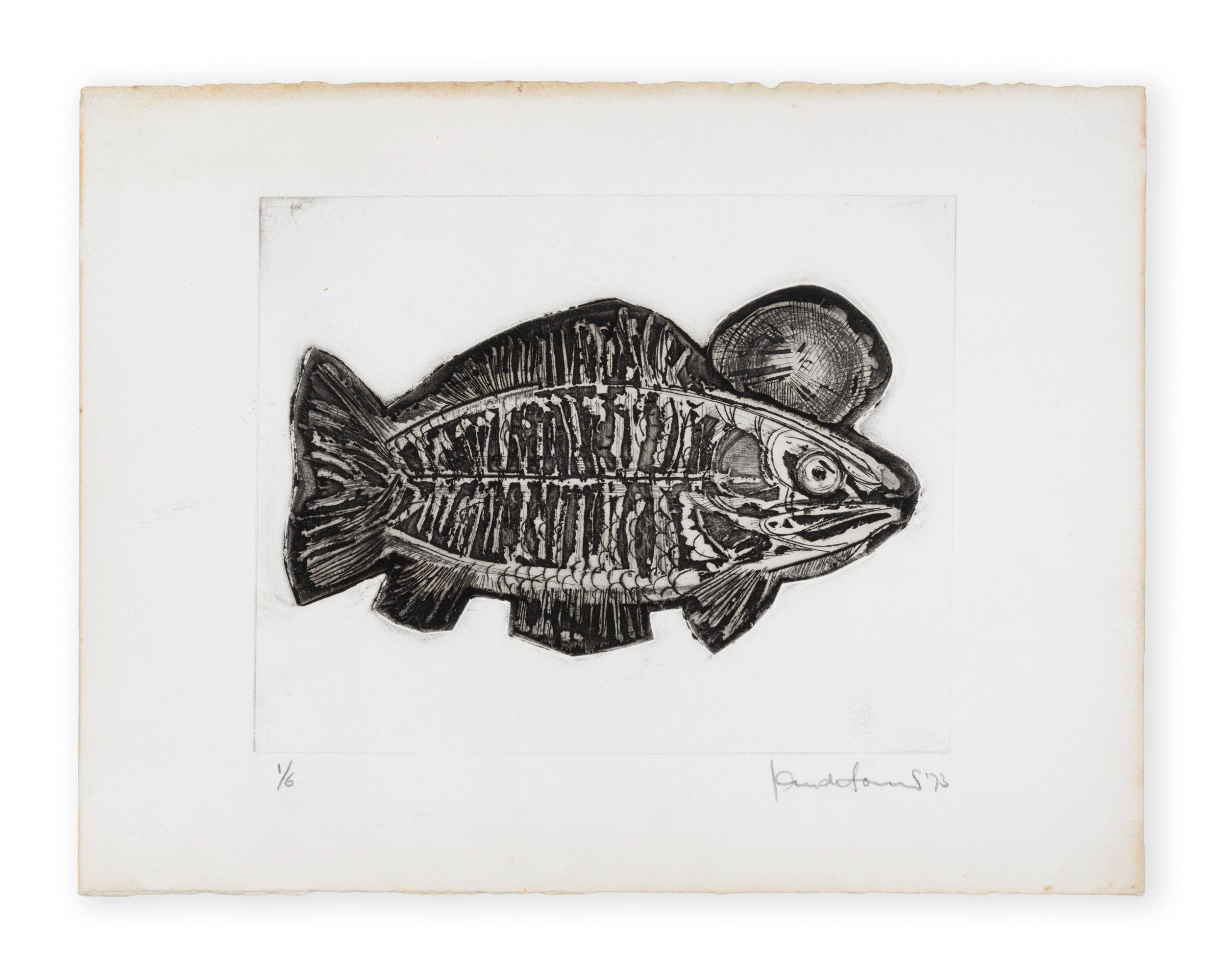 Jan de Fouw (Dutch, 1929 –2015) Fish Aquatint and etching, 29 x 39cm Signed, numbered 1/6 and dated (19)’73 Unframed