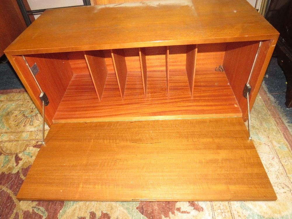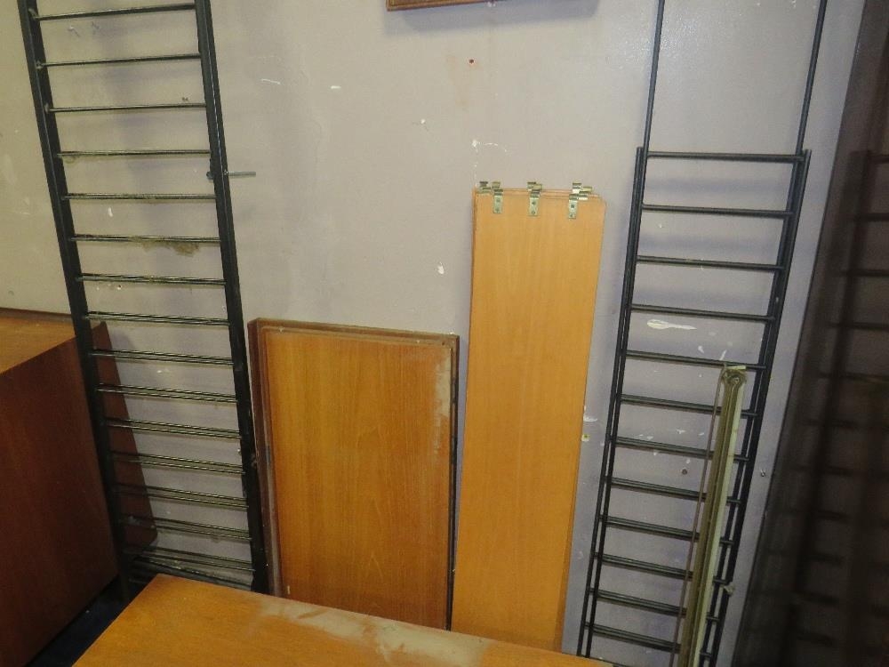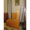 A RETRO TEAK LADDERAX STYLE MODULAR BOOKCASE - WITH ONE CUPBOARD, FOUR LONG SHELVES AND THREE WIDER SHELVES ETC