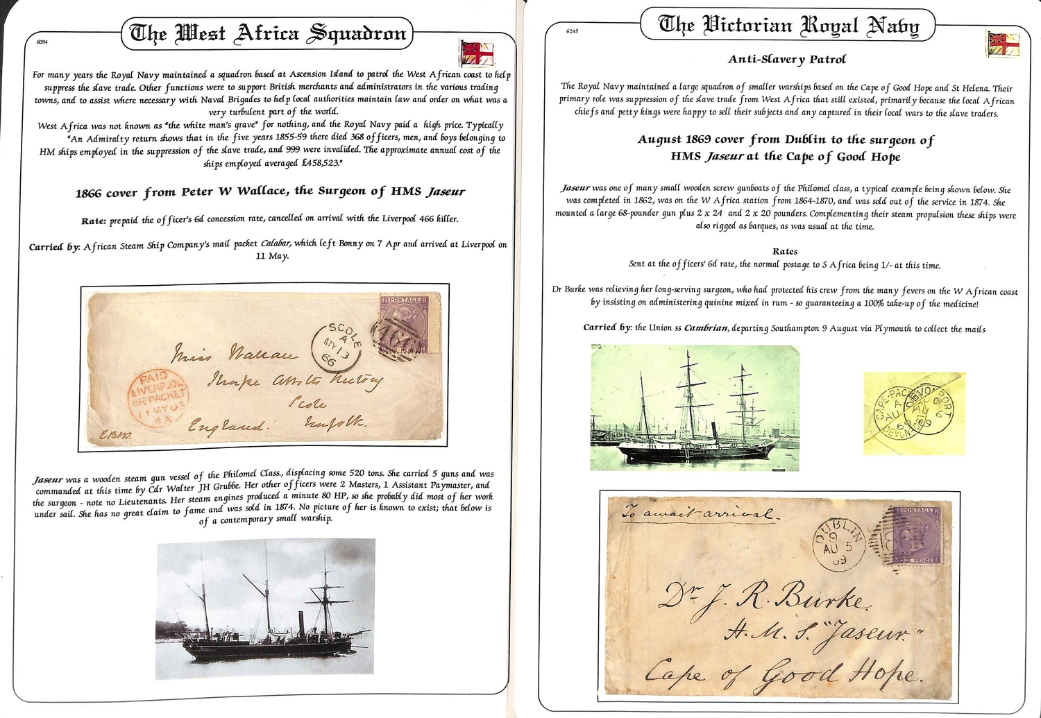 1866 Cover from Peter Wallace, Surgeon on H.M.S "Jaseur" then off the Niger Coast, franked G.B 6d cancelled at Liverpool with red "PAID / LIVERPOOL / BR. PACKET" c.d.s (May 11); and 1869 cover from Dublin franked 6d to "Dr. J.R Burke, H.M.S "Jaseur", Cape of Good Hope", "CAPE PACKET / DEVONPORT" c.d.s on reverse. (2).