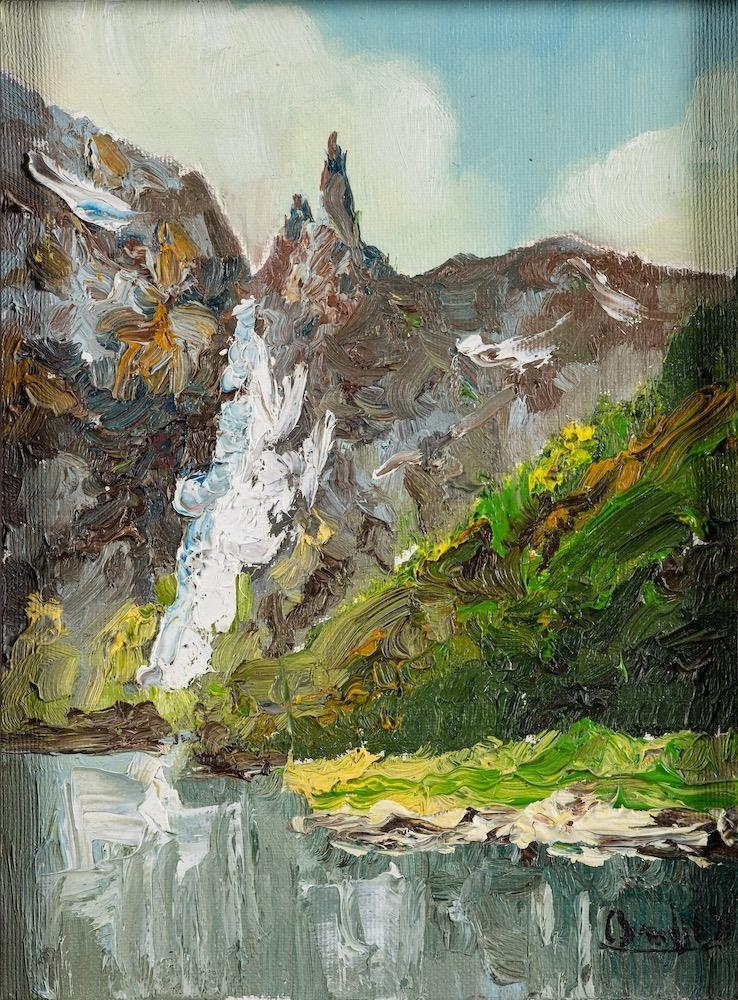 Dariusz Orszulik (Polish, contemporary) Mnich Mountain, Poland signed lower right and inscribed to stretcher oil on canvas 23 x 17cm