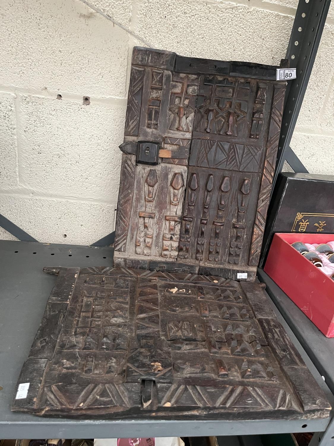 Pair of African carved window shutters