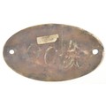 Worksplate, LMS BUILT CREWE 1930, ex 42900. This locomotive was a Hughes crab 2-6-0. It was allocations included, Saltley, Kettering, Birkenhead Mollington Street, and Stockport Edgeley. Withdrawn in October 1965, and scrapped by Cashmores in February 1966. Cast brass. Ex loco condition, some enlargement of bolt holes and cracking around one of them. 10 3/8 x 6 inches. Shipping band - B.