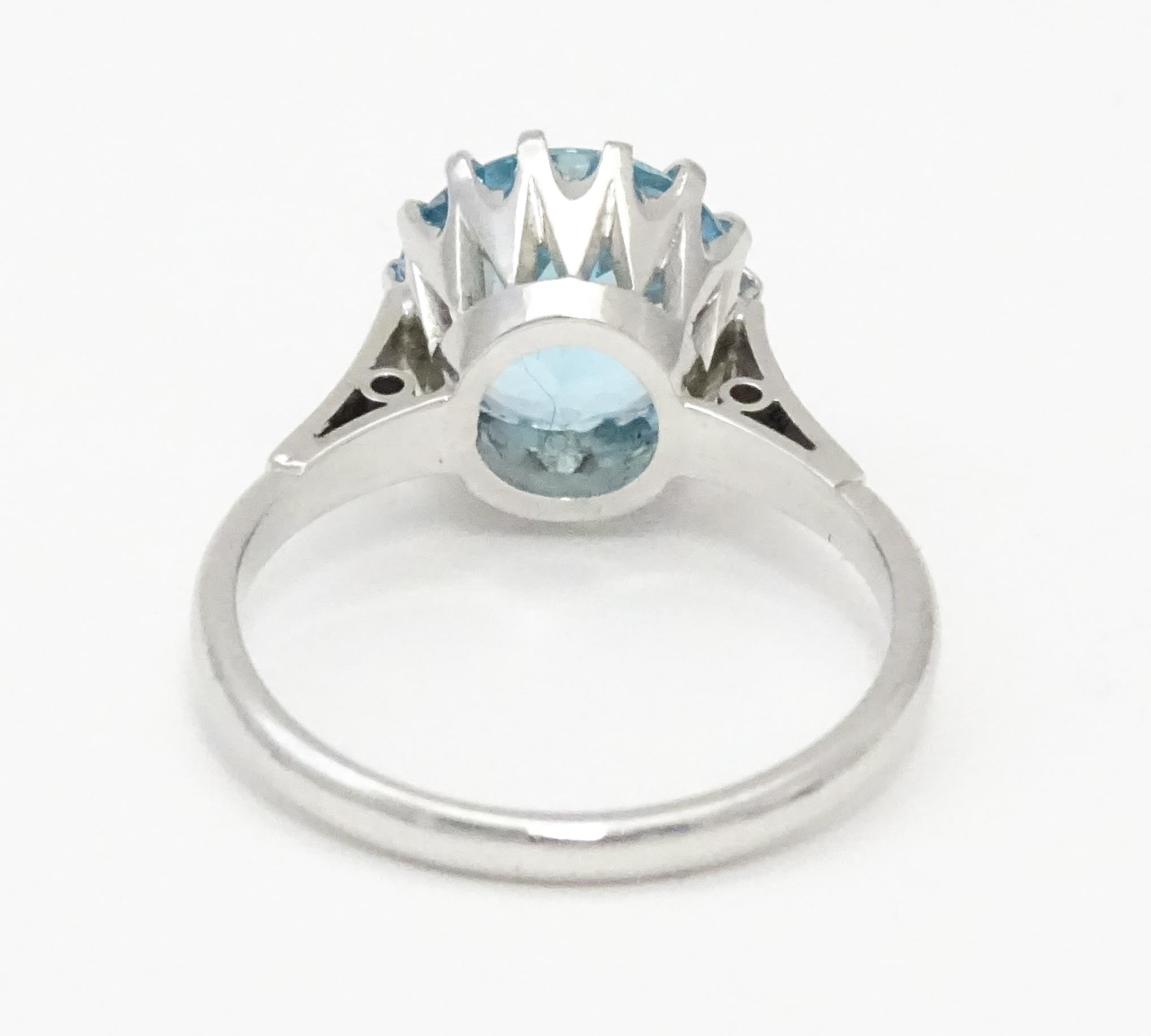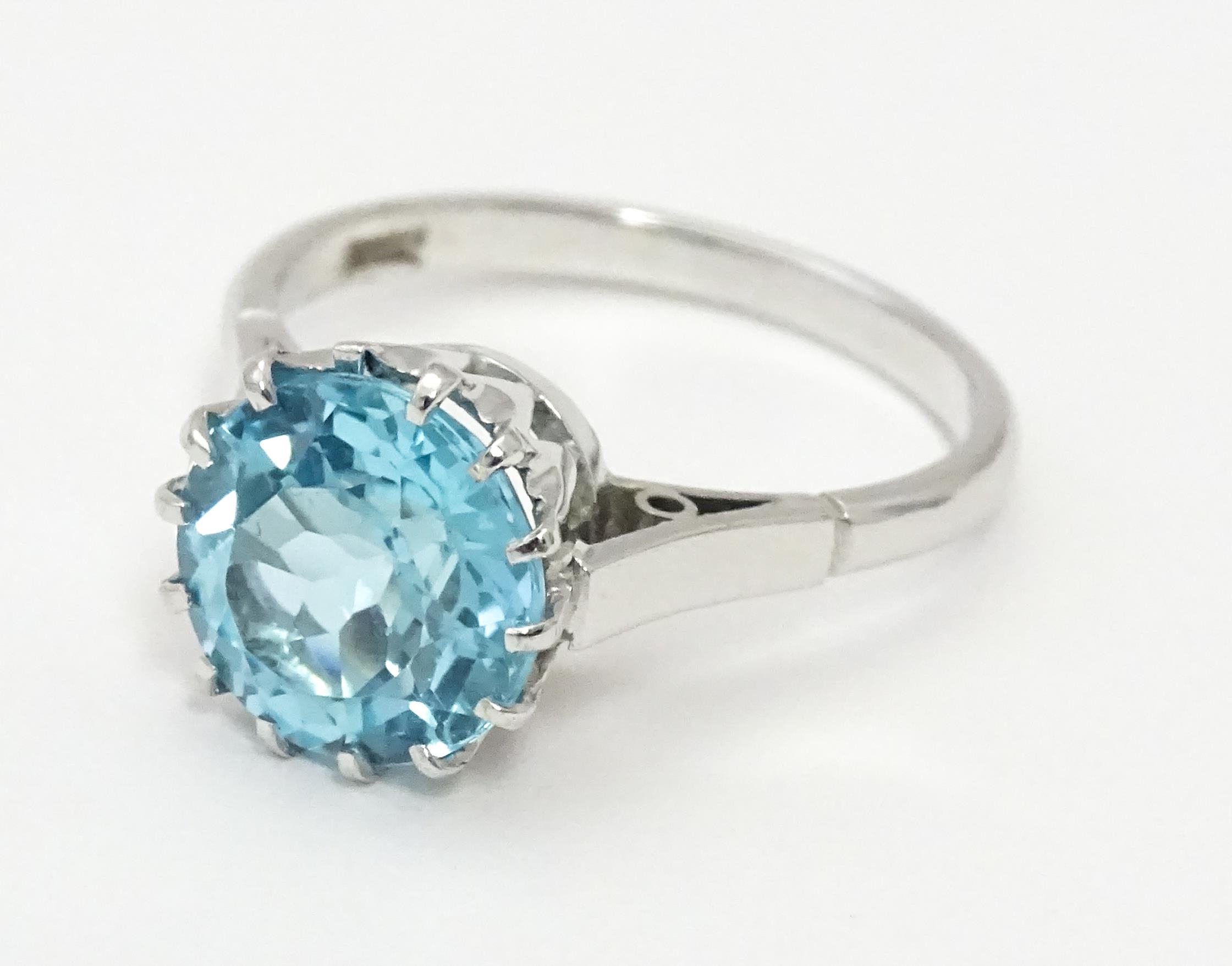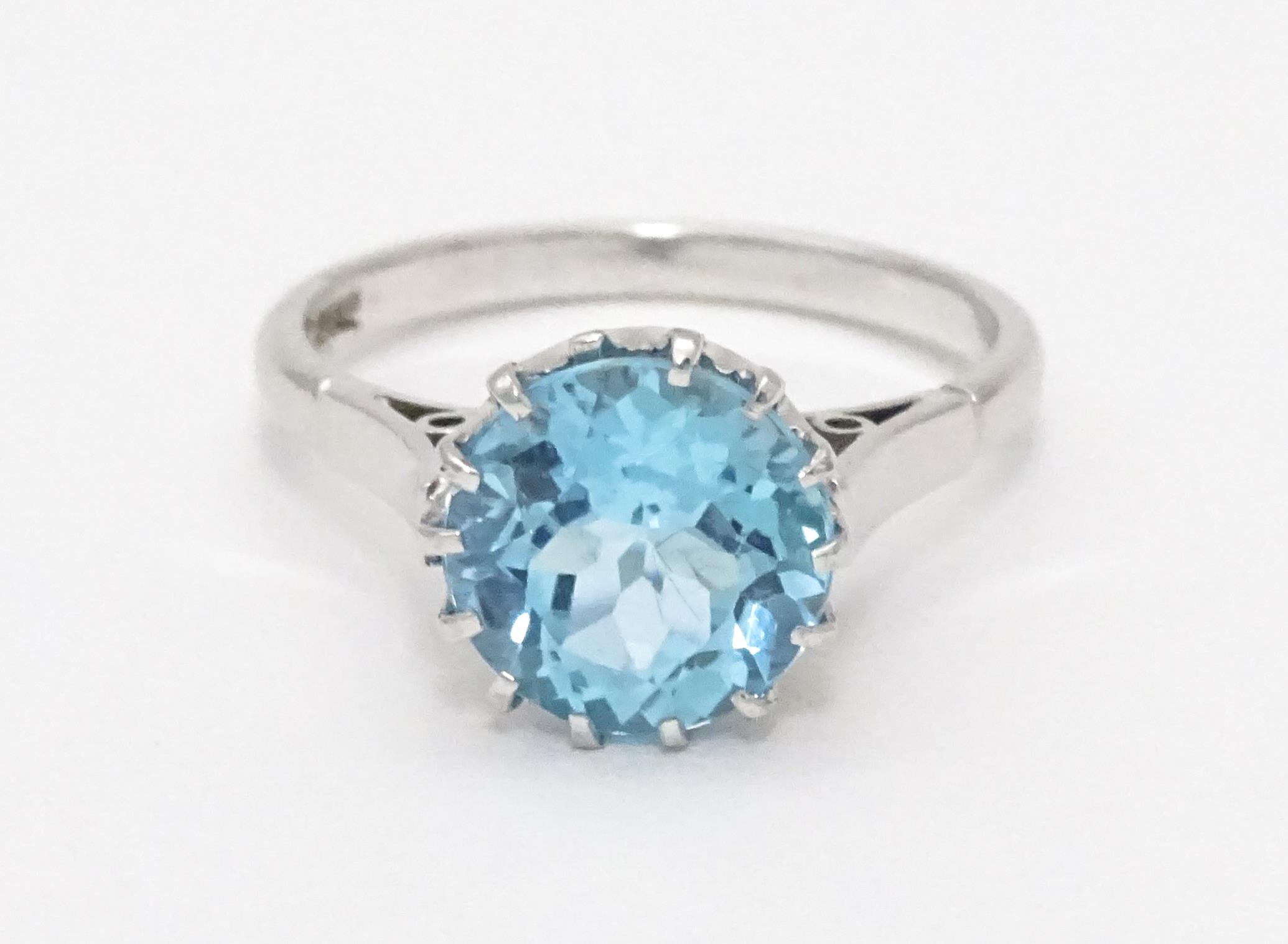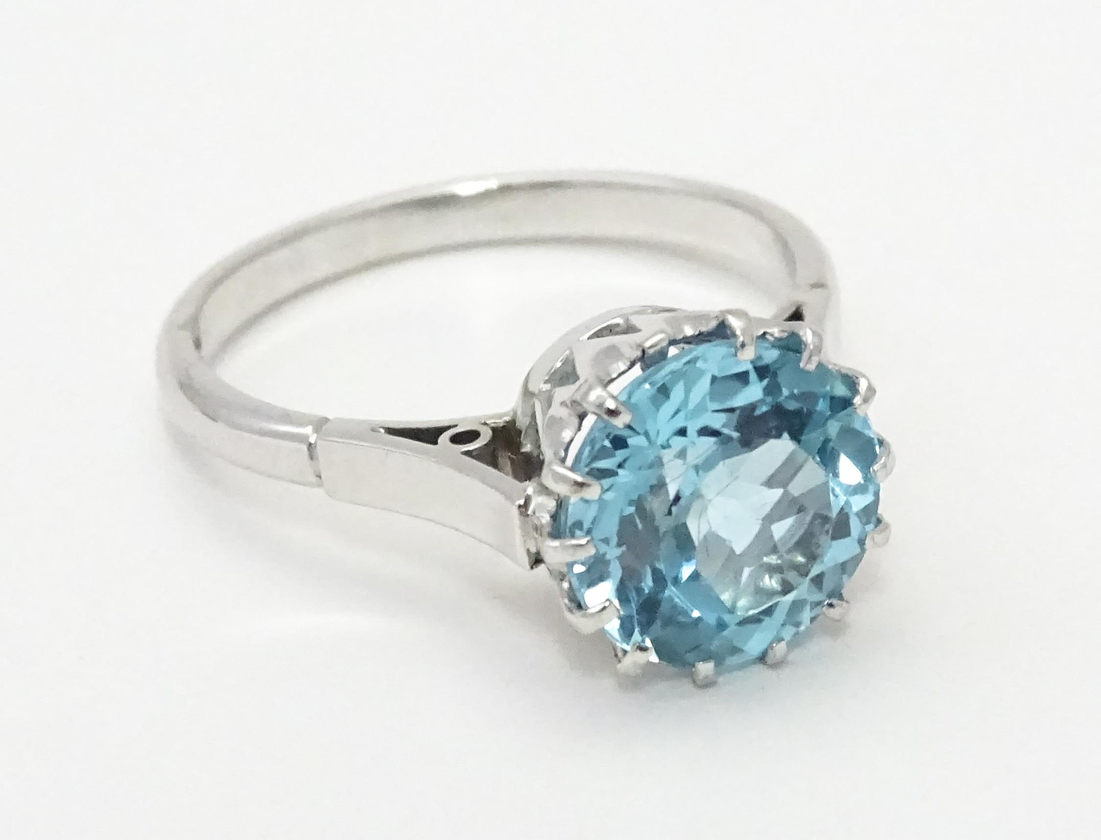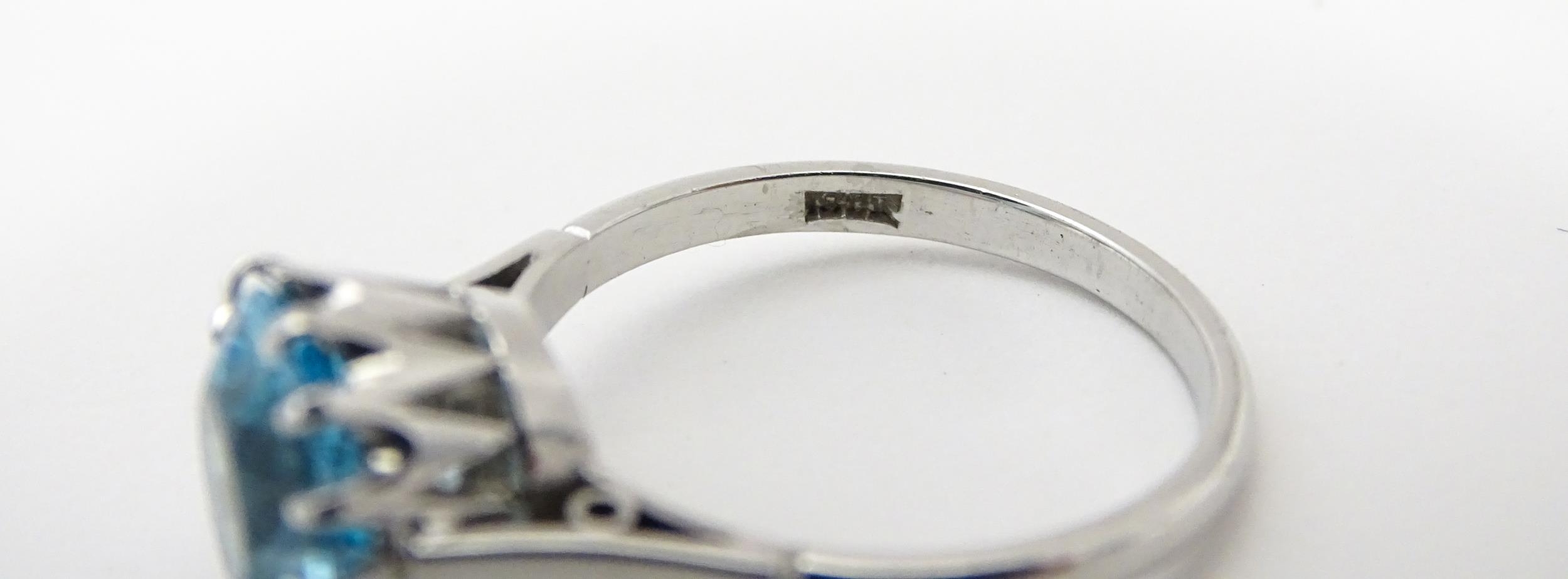An 18ct white gold ring set with central topaz. Ring size approx. P 1/2