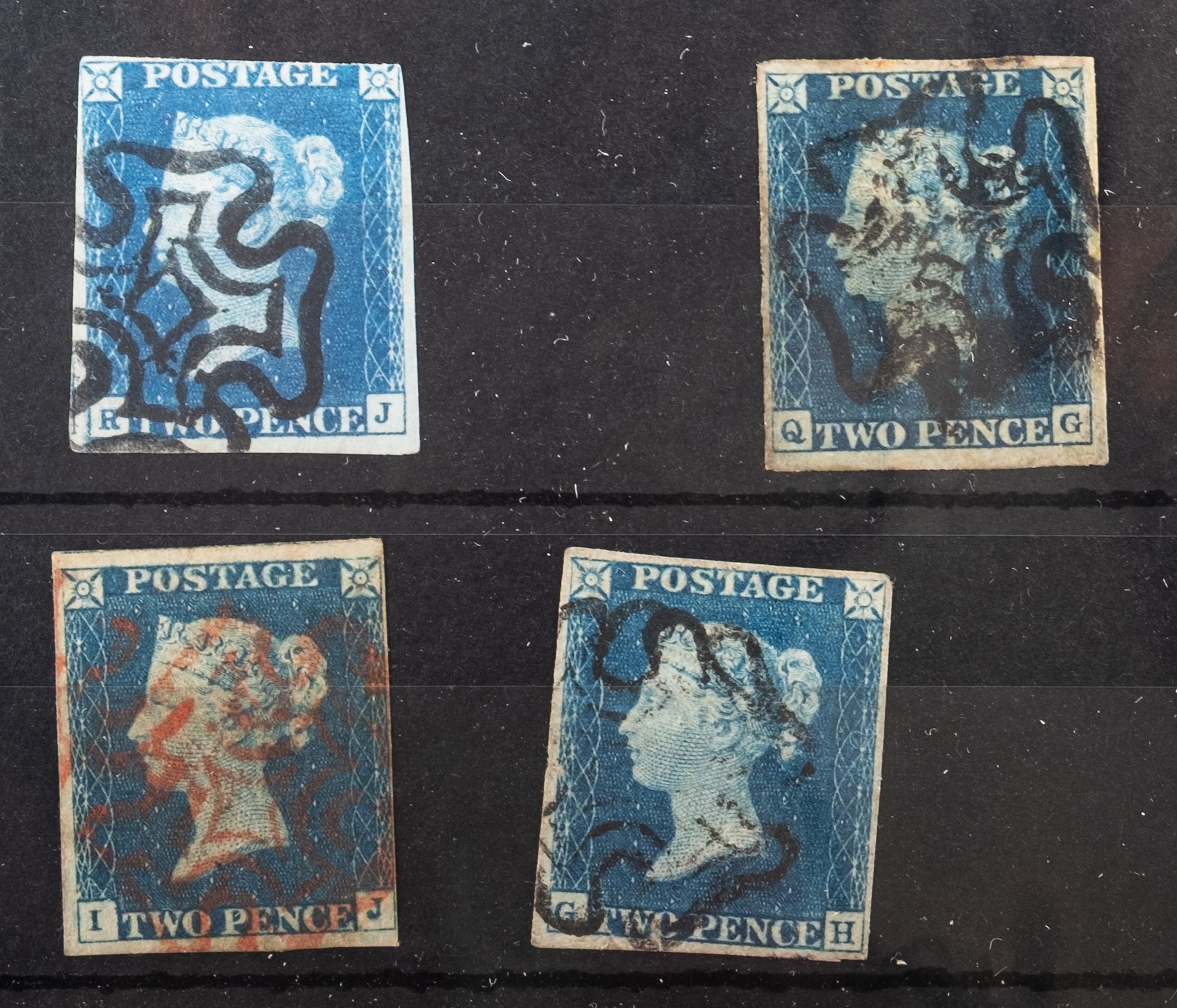 Great Britain. 1840 2d Blues x 4