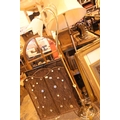 Contemporary two lamp brass standard lamp. Not available for in-house P&P.