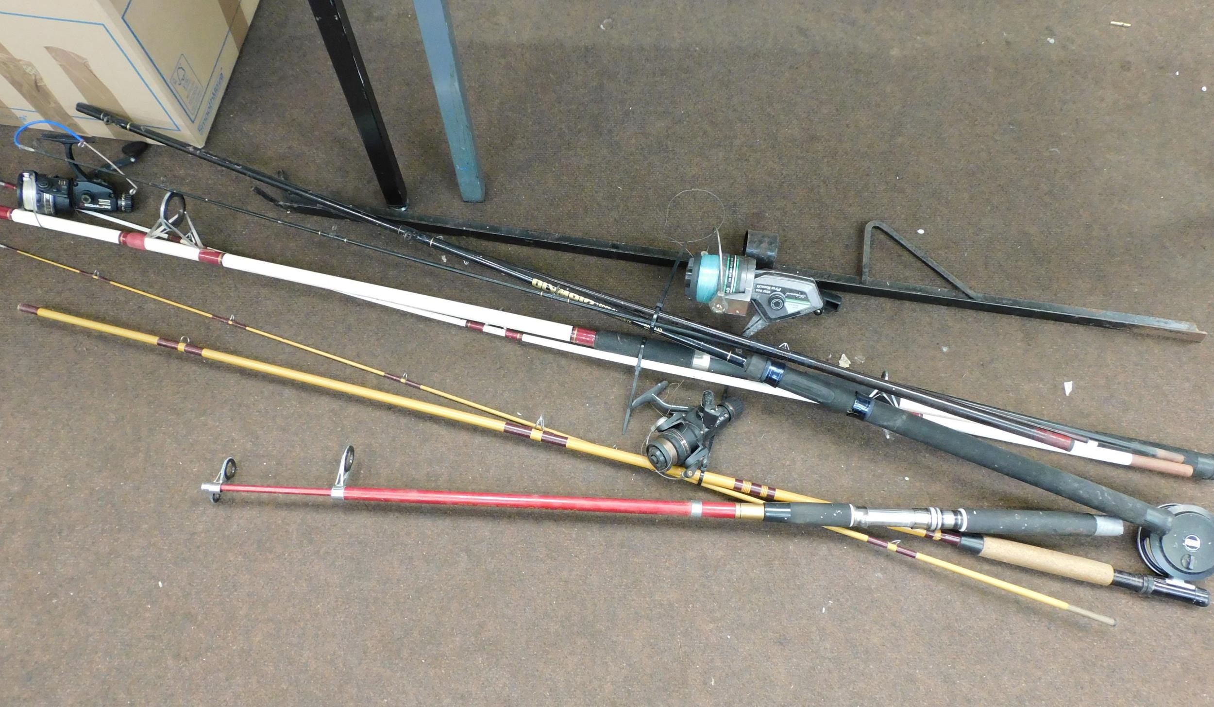 Vintage fly fishing and sea fishing rods etc.