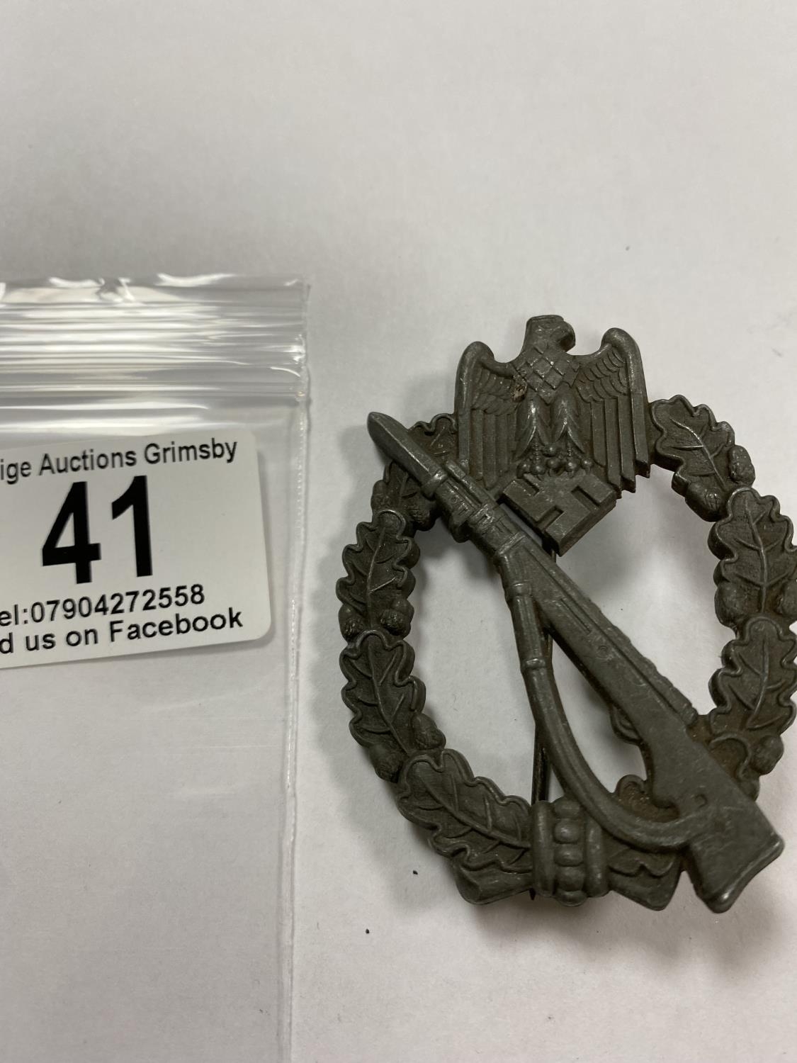 WW2 GERMAN INFANTRY ASSAULT BADGE WITH W.H ON THE BACK