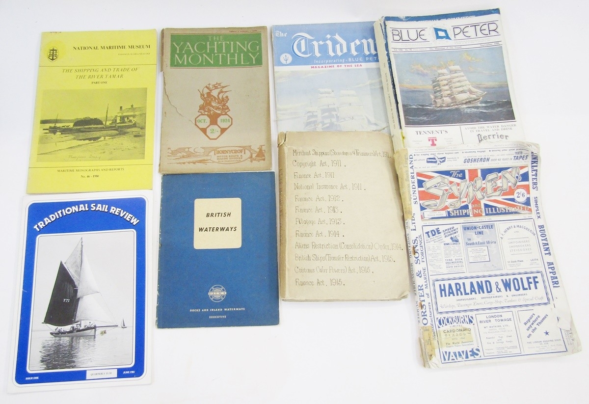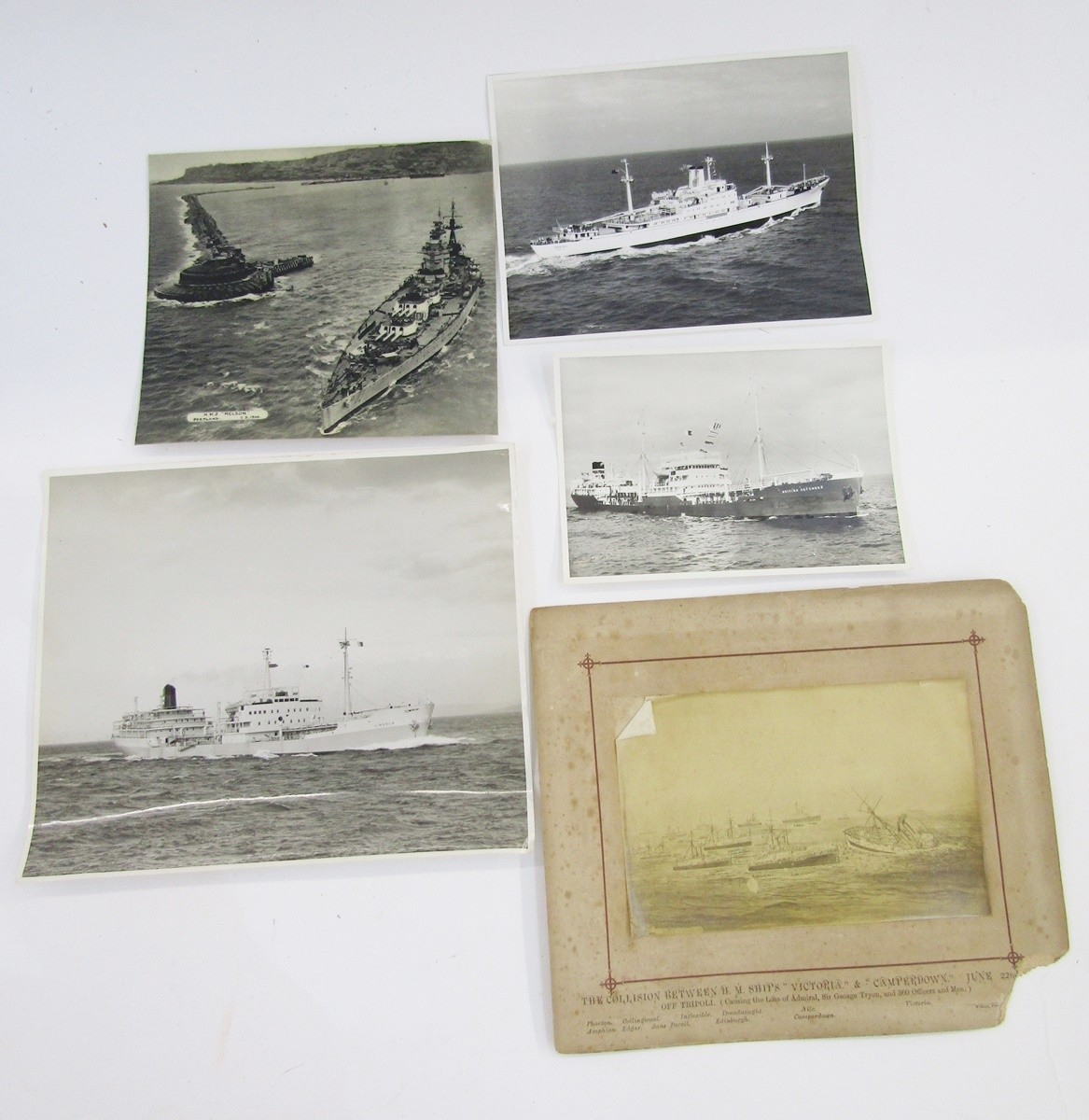 Quantity of early 20th century and later photographs and prints relating to ships at sea to include SS Benreoch, HMS Nelson off Portland 1946, mounted scene titled 'The Collision Between HM Ships Victoria and Camperdown, June 22nd 1893', and many more, and a quantity of boating related books and magazines including Yachting Monthly October 1924 (2 boxes)