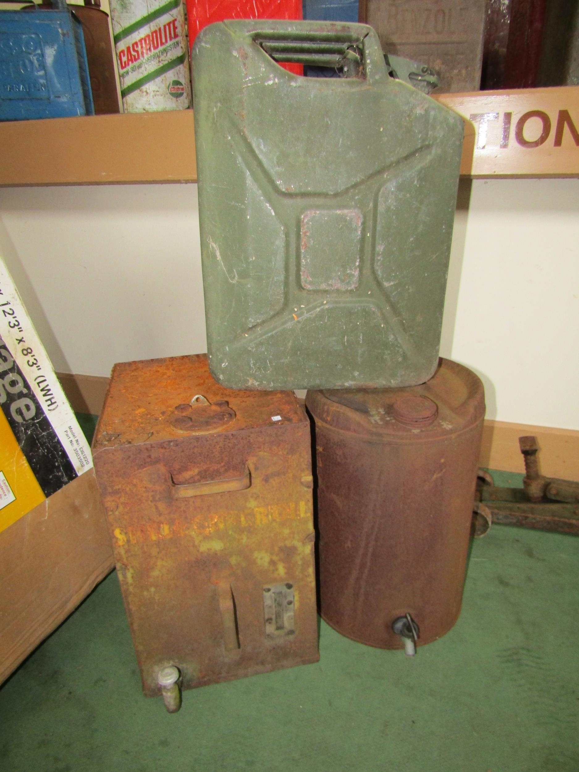 A Shell Super petrol tank, an oil can and a jerry can (3)