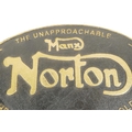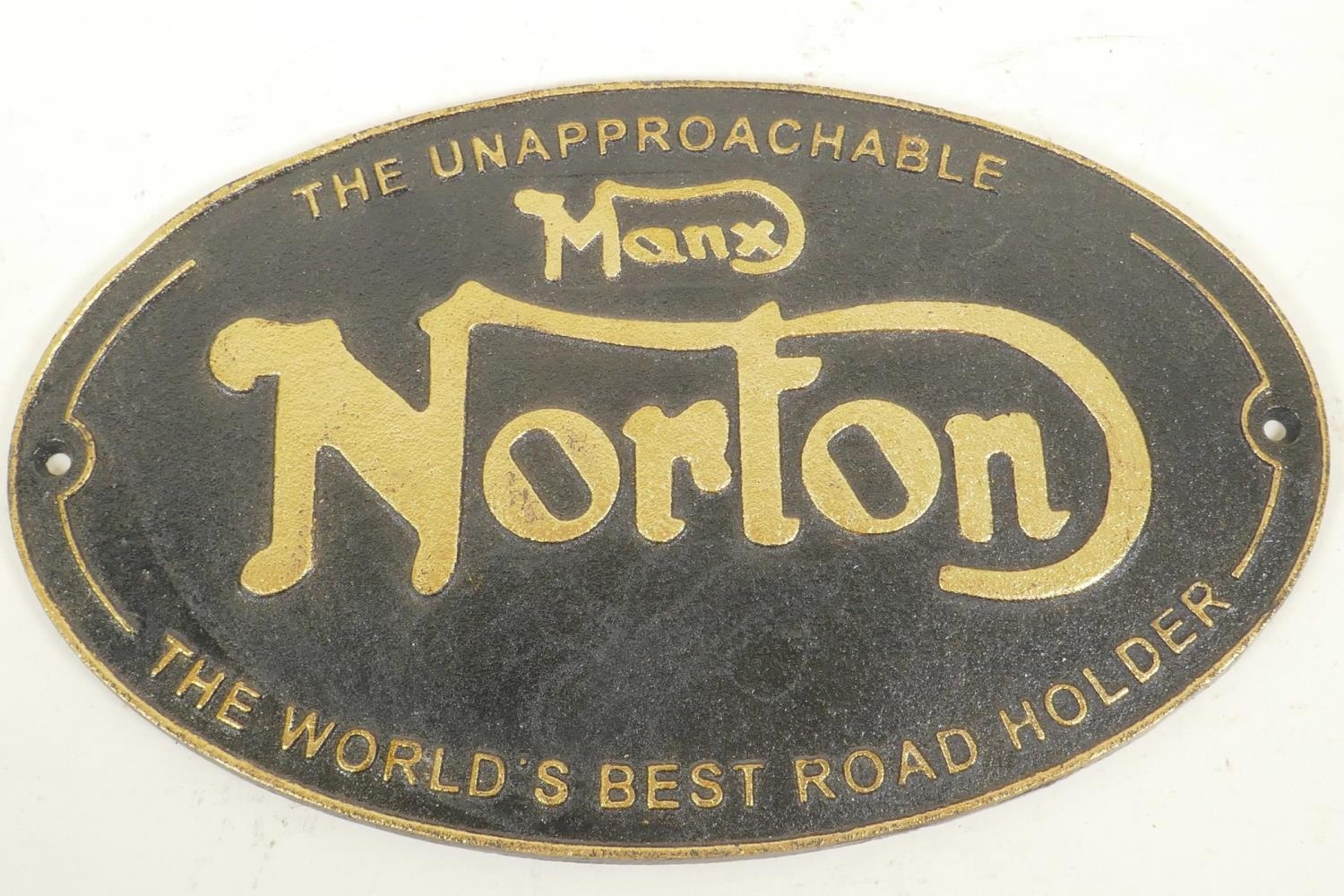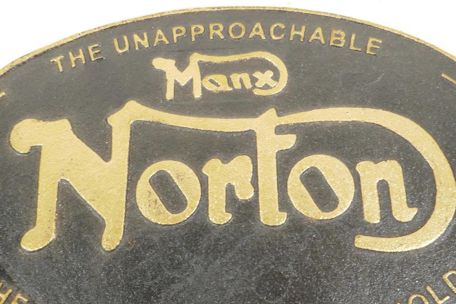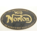 A replica cast metal advertising sign for Norton Motorcycles, 13" x 8"