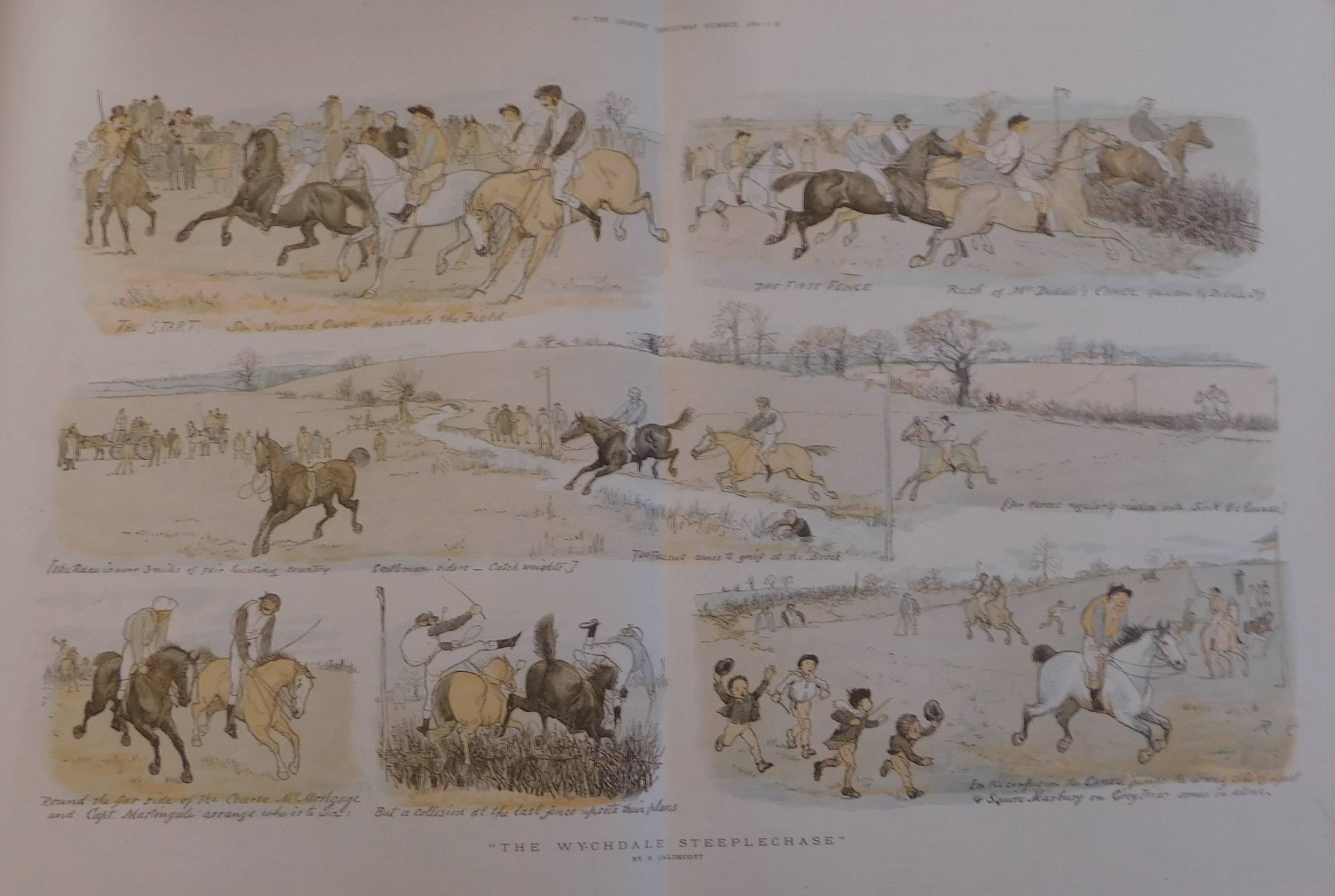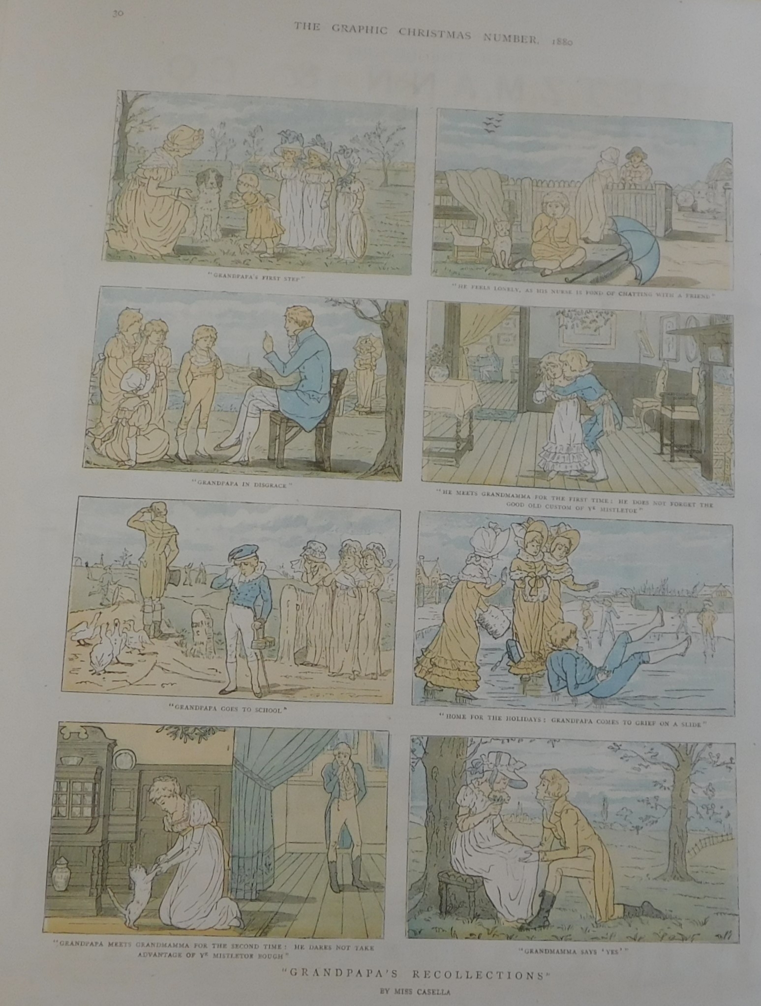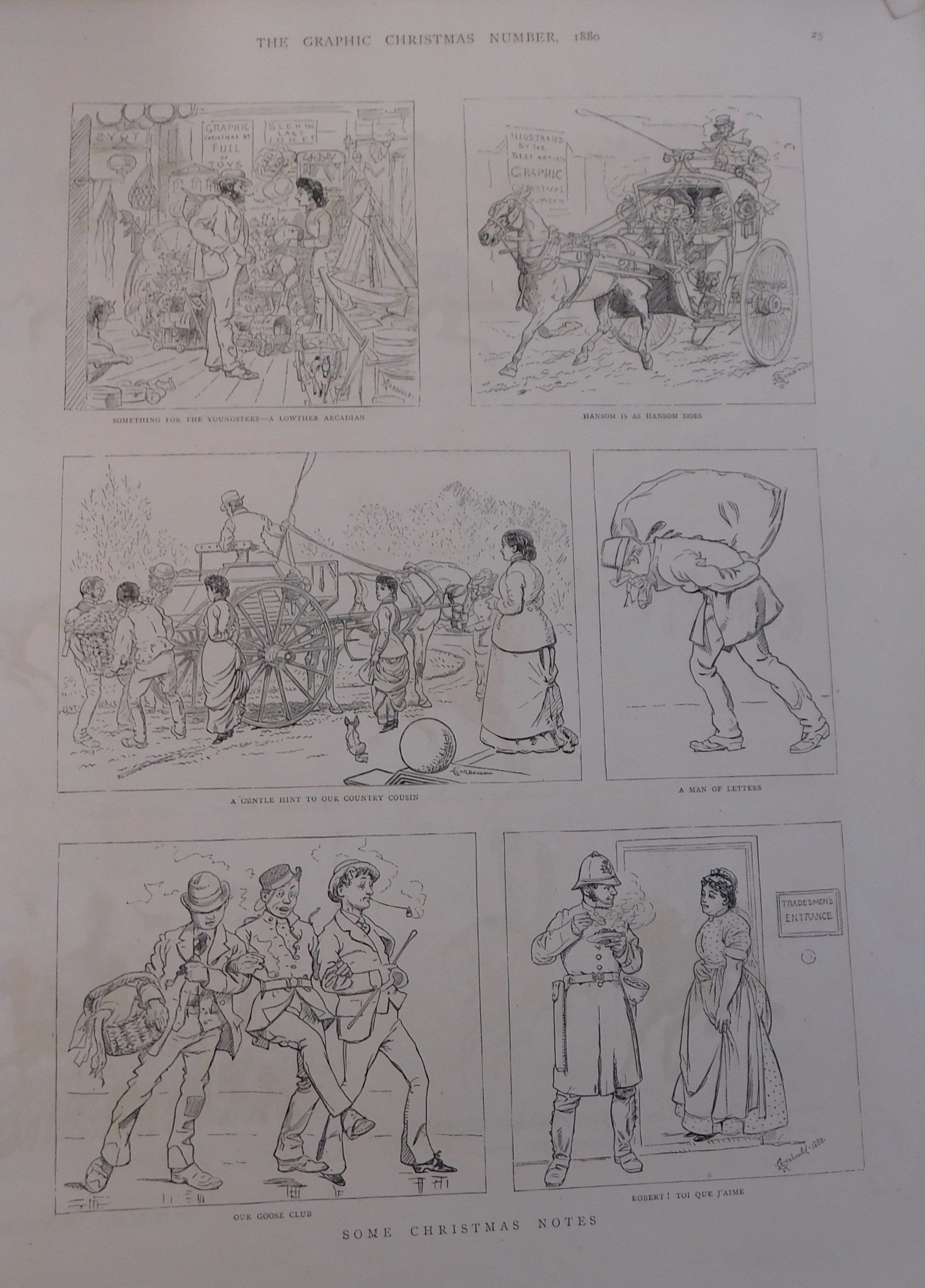Pages from the Graphic Christmas Number 1880 - with coloured drawing & cartoon type sketches and advertising