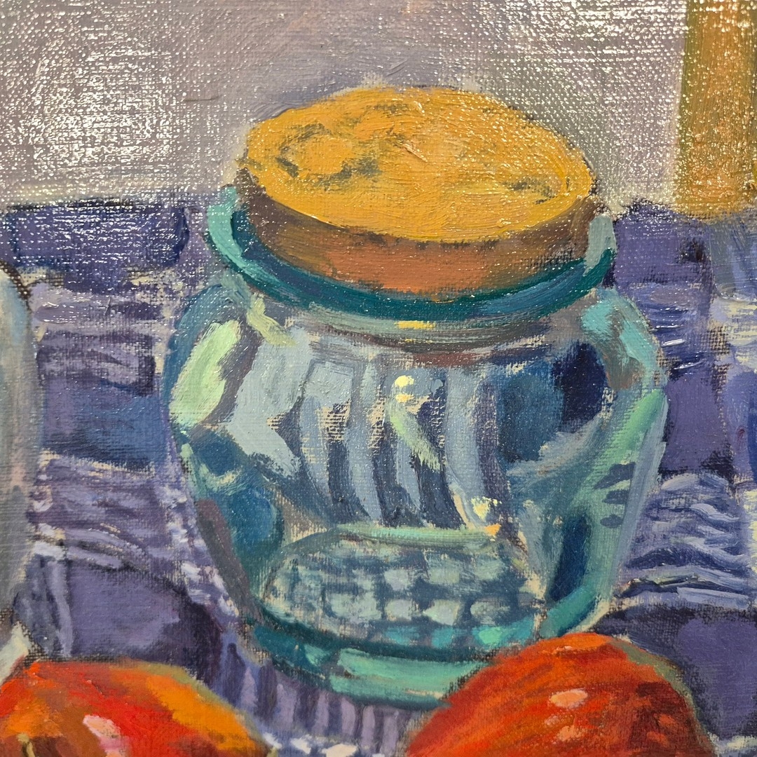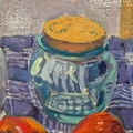 SPANISH IMPRESSIONIST SCHOOL. STILL LIFE WITH APPLES AND VASES. oil on canvas, signed 'Vinyeta', 66cm x 76cm, framed.