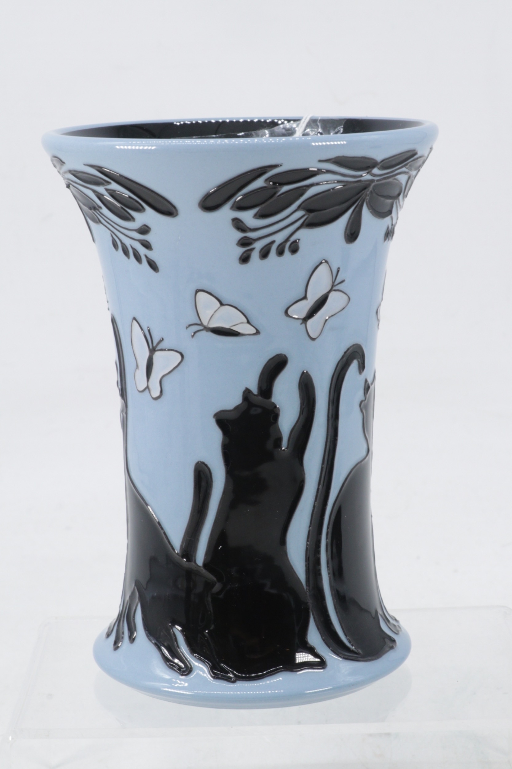 Moorcroft "Lucky Black Cat" vase by Paul Hilditch approx. 15.5cm high