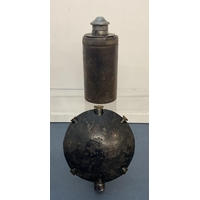 WWI Imperial German INERT Kugel (ball) Grenade in a pannier with fuse, housed on later brass stand.