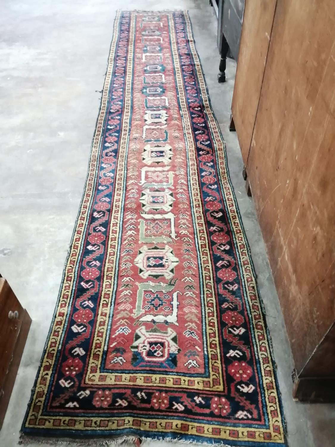 A Caucasian design brick red ground runner, 430 x 80cm