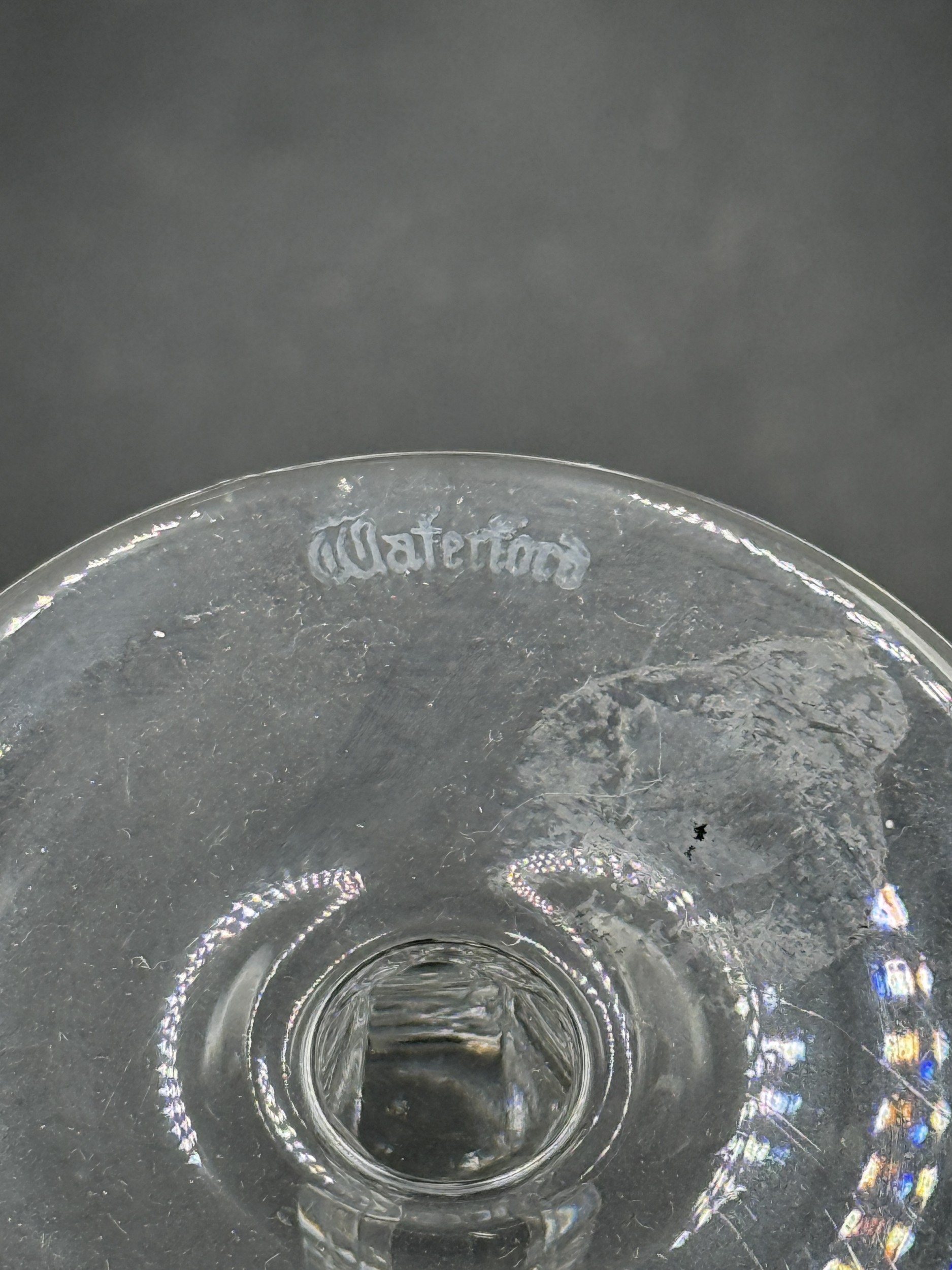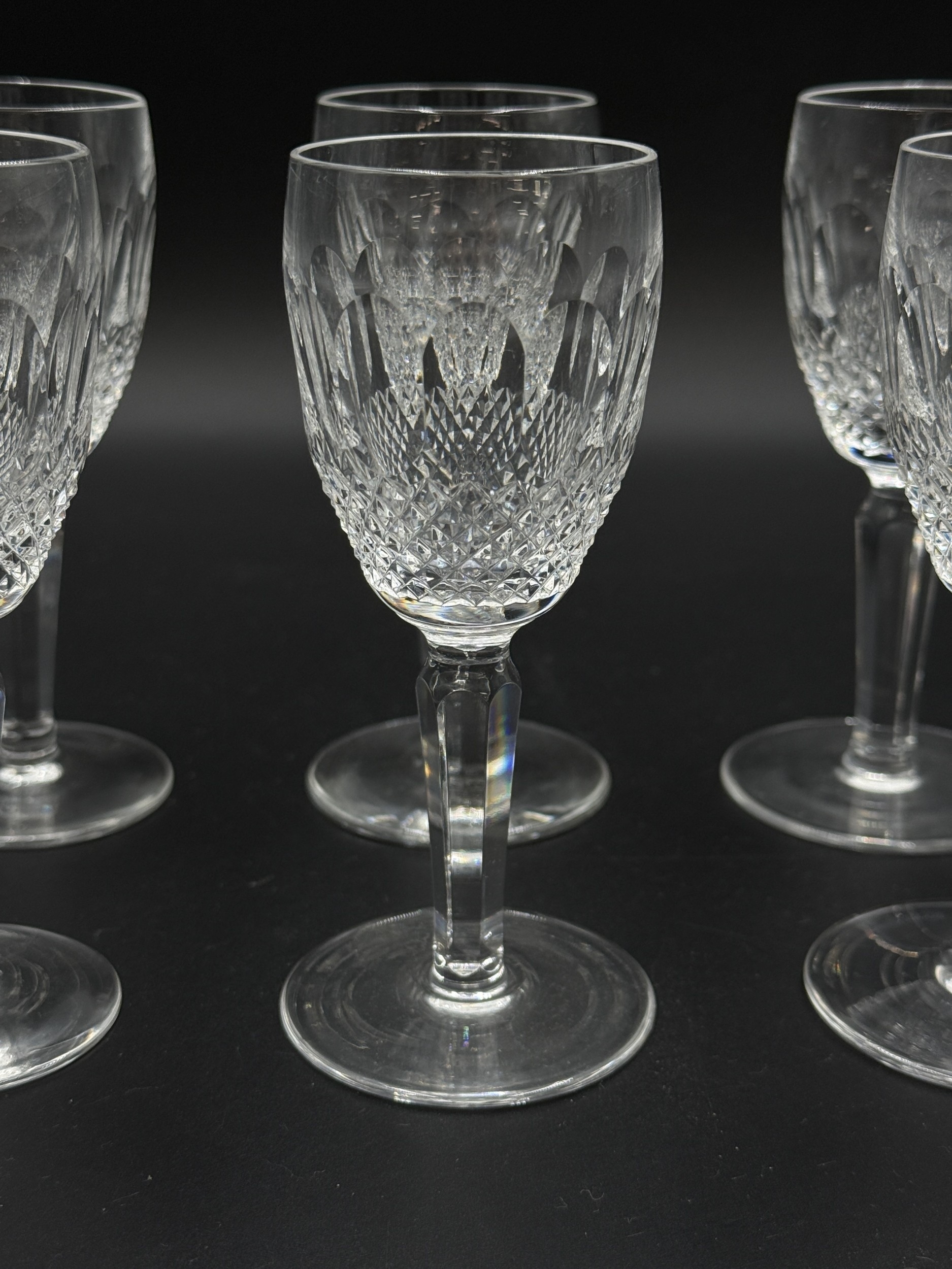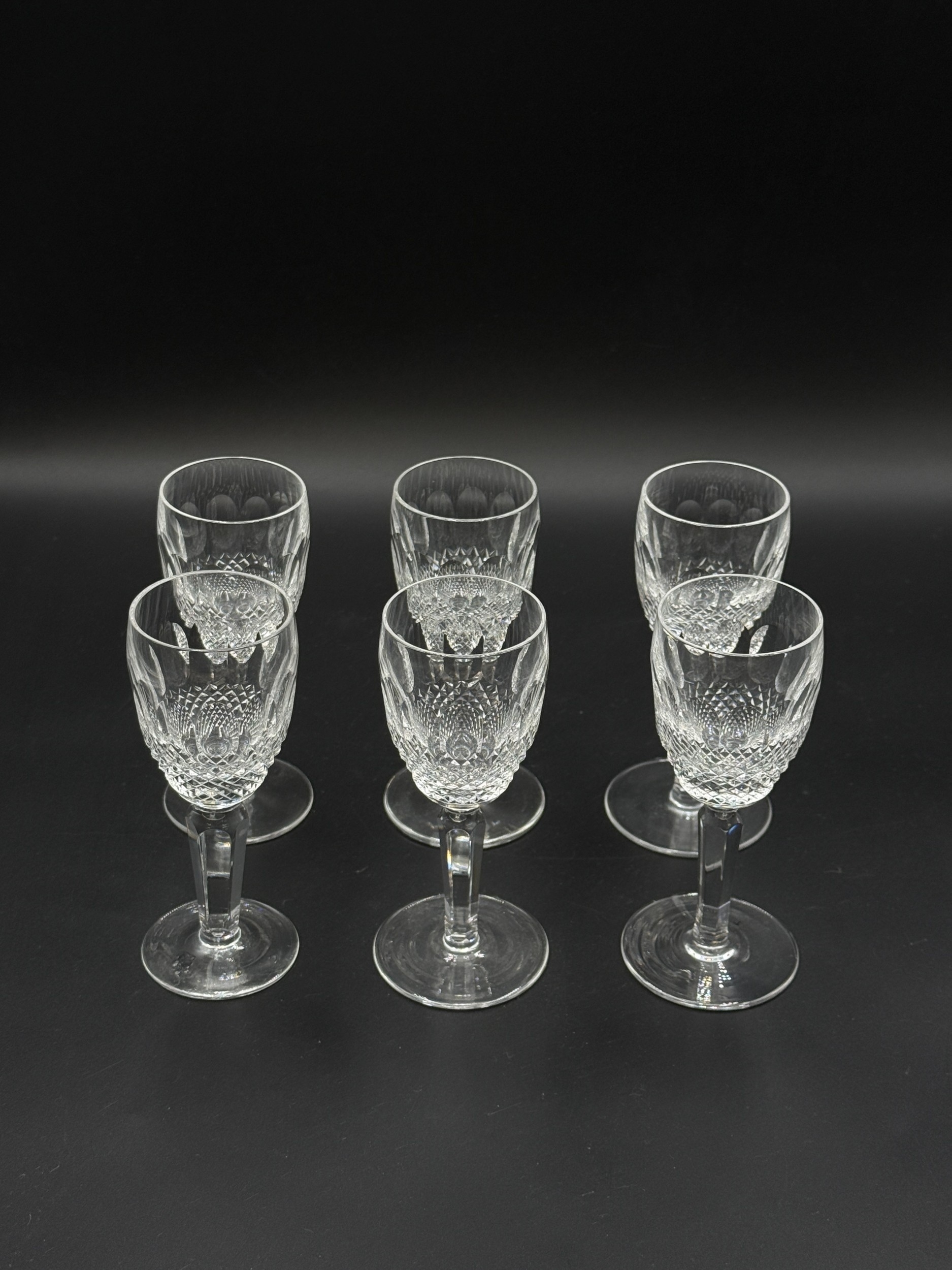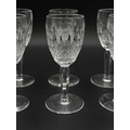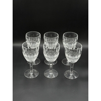 Six Waterford Crystal Colleen pattern tall stem sherry glasses - approx. 14cm high