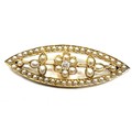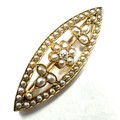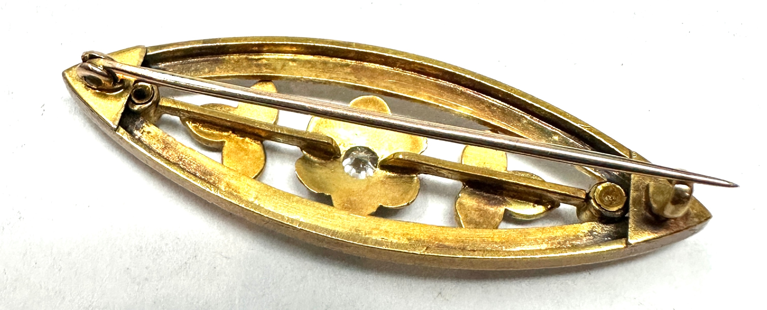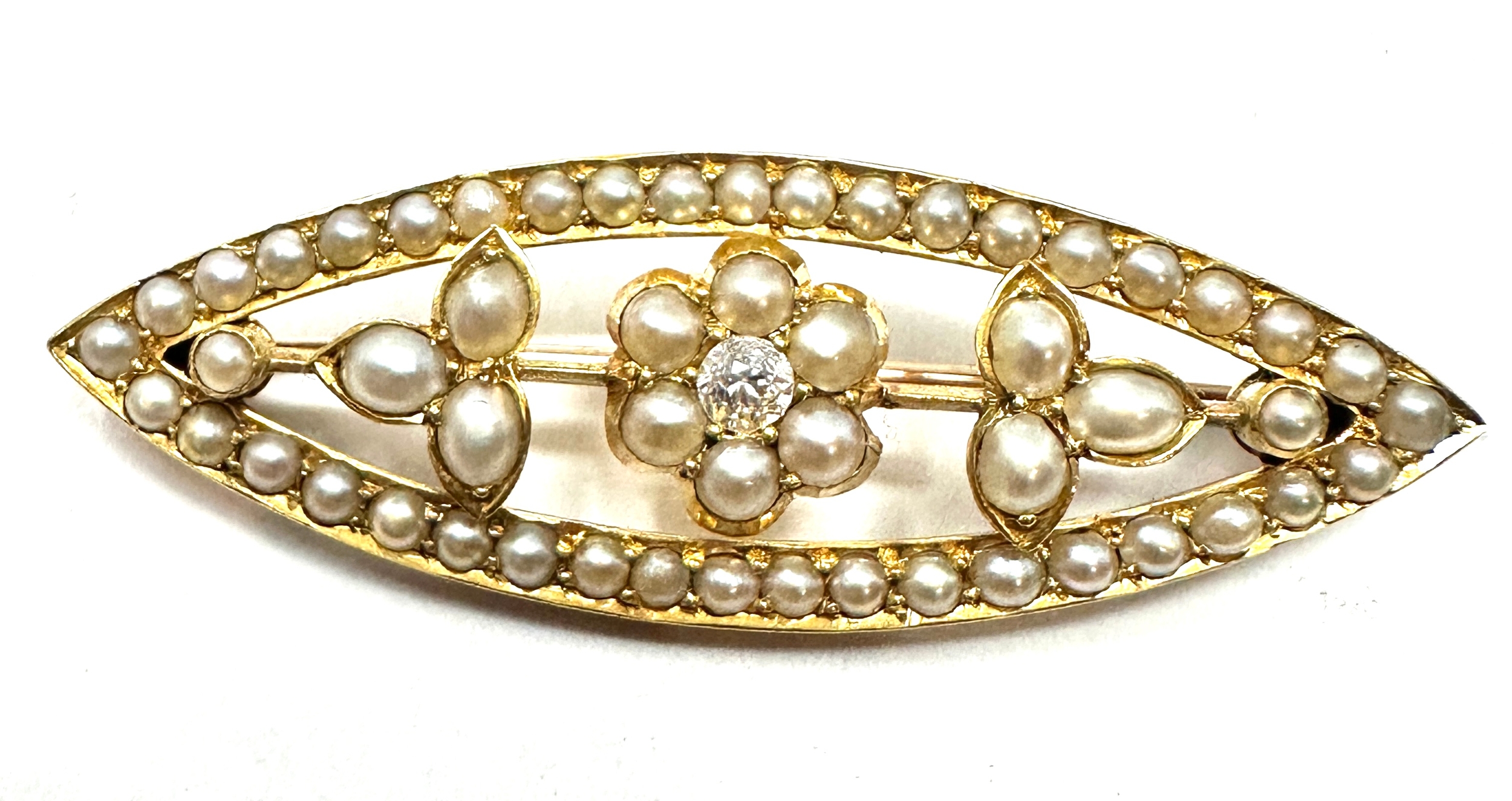 Antique 18ct gold split pearl & diamond brooch measures approx 4.8cm weight 6.9g xrt tested
