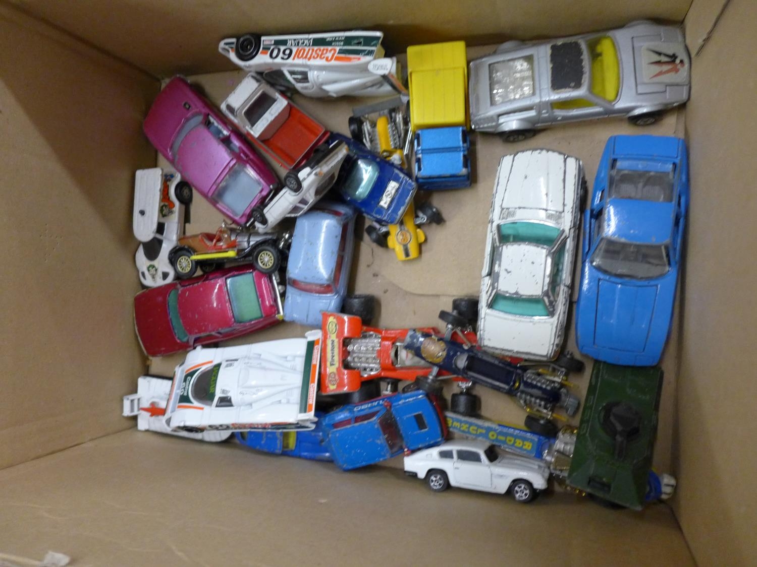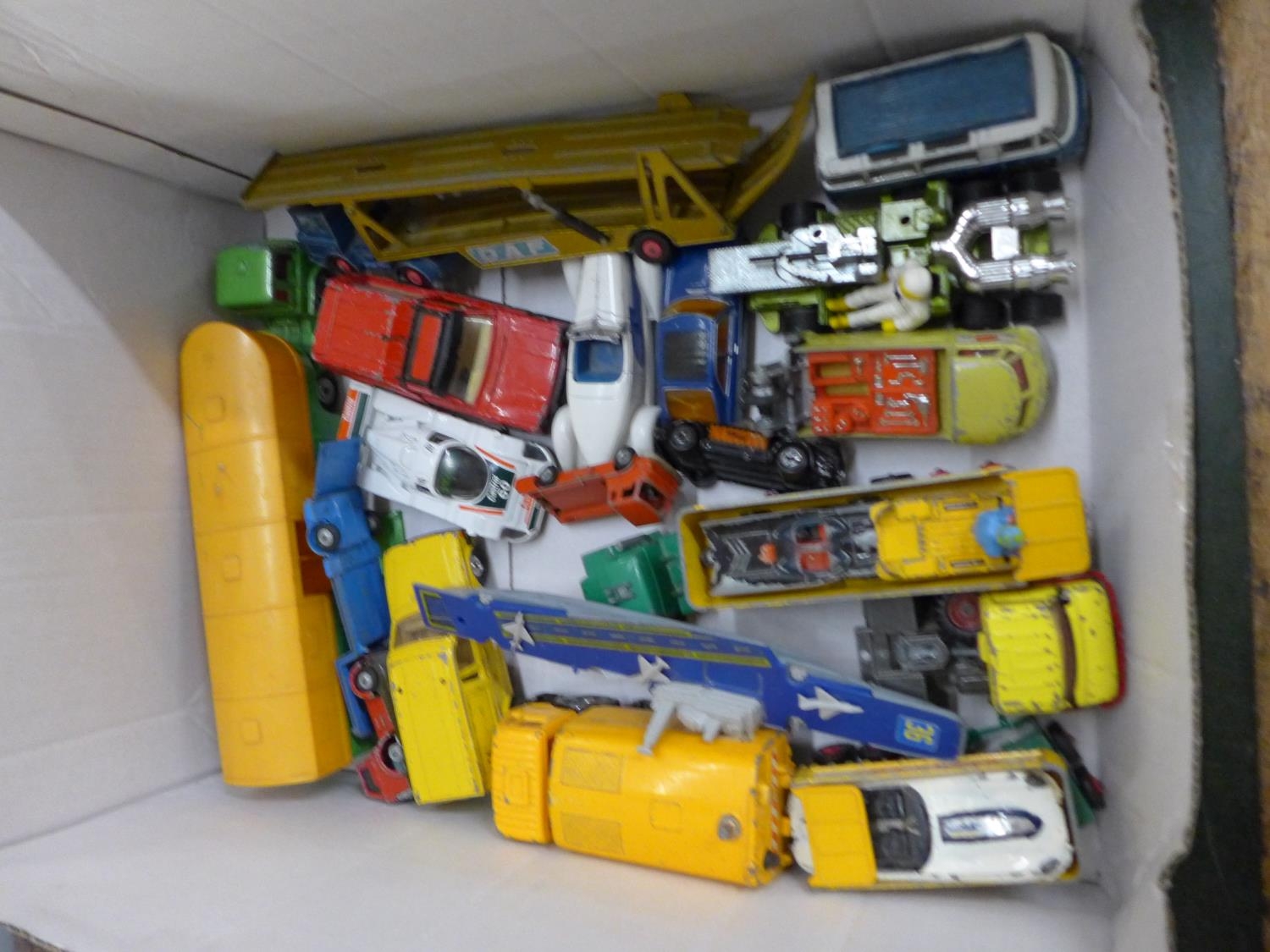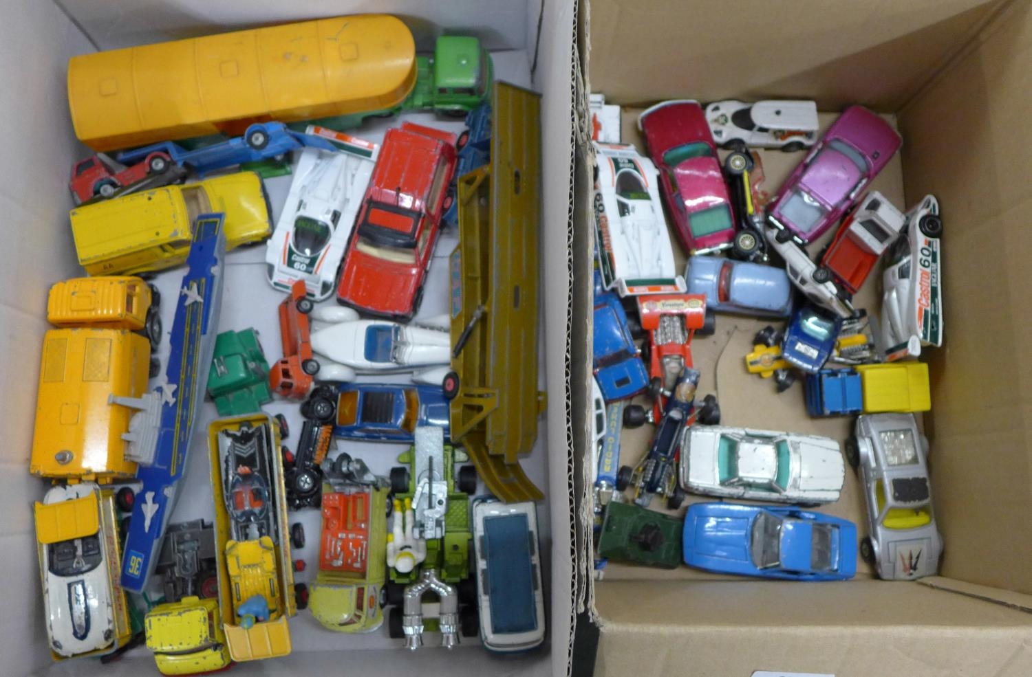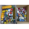 Two boxes of mixed Corgi die-cast model vehicles, playworn