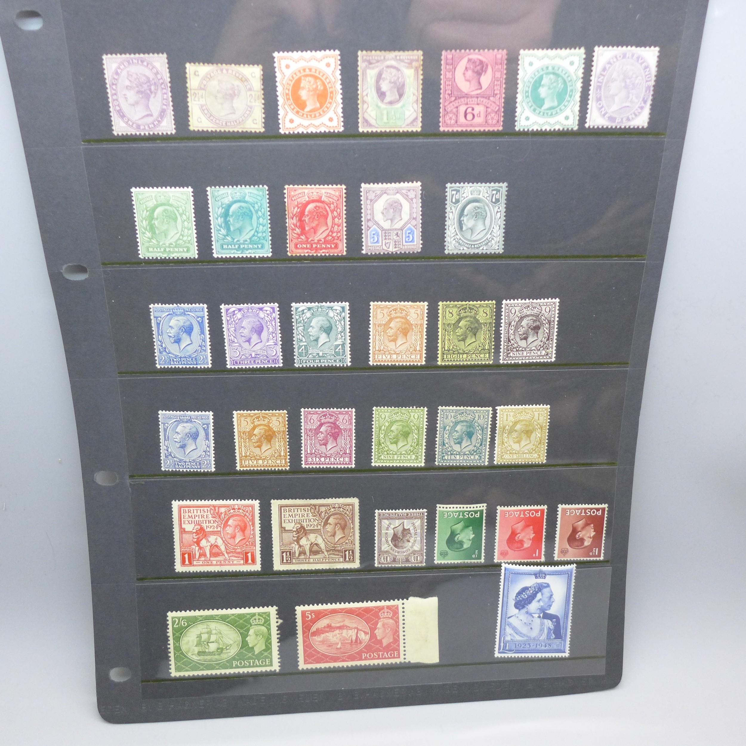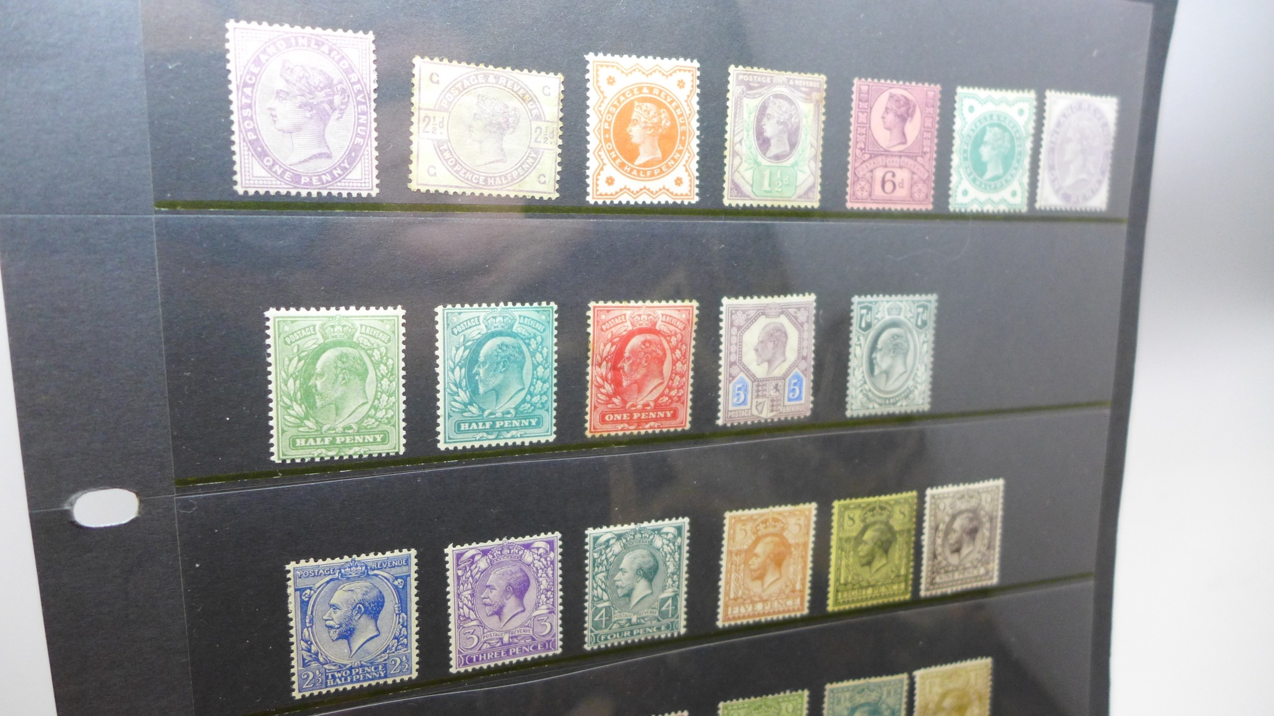 Stamps; a stocksheet of mint GB stamps, Queen Victoria to Ki...