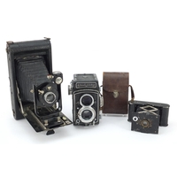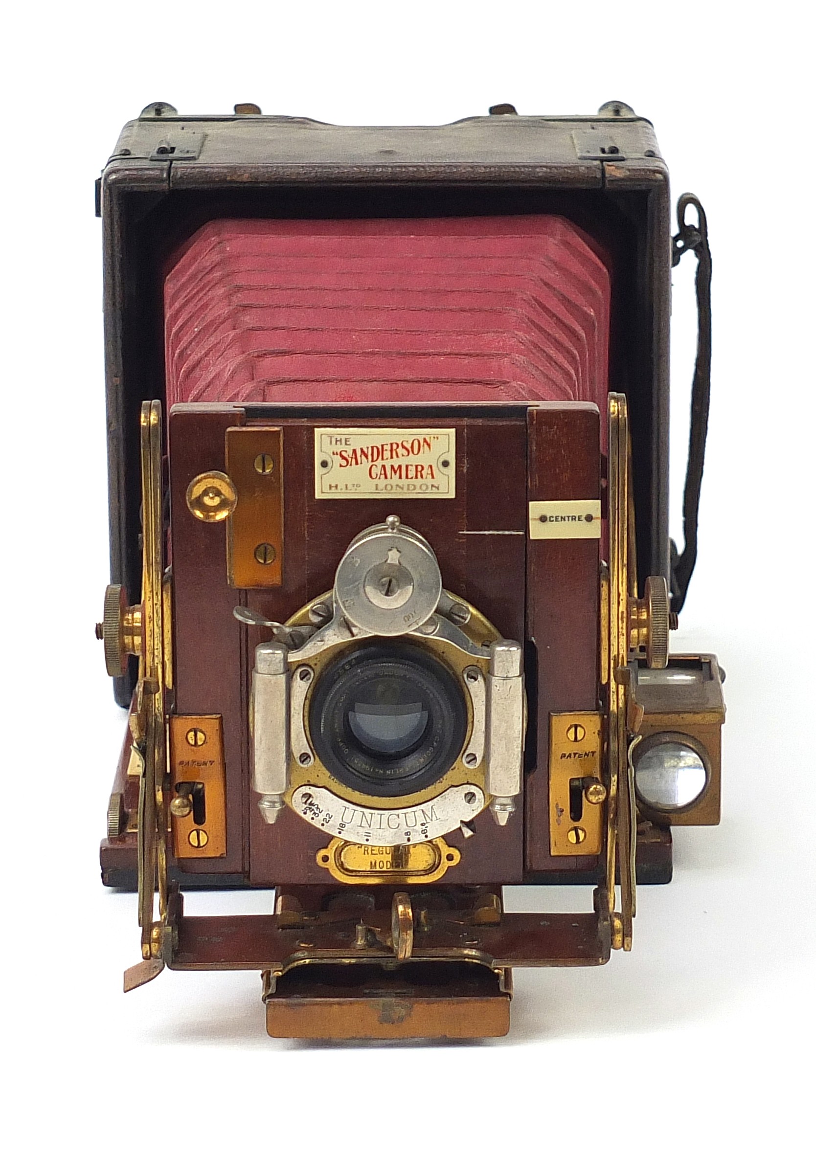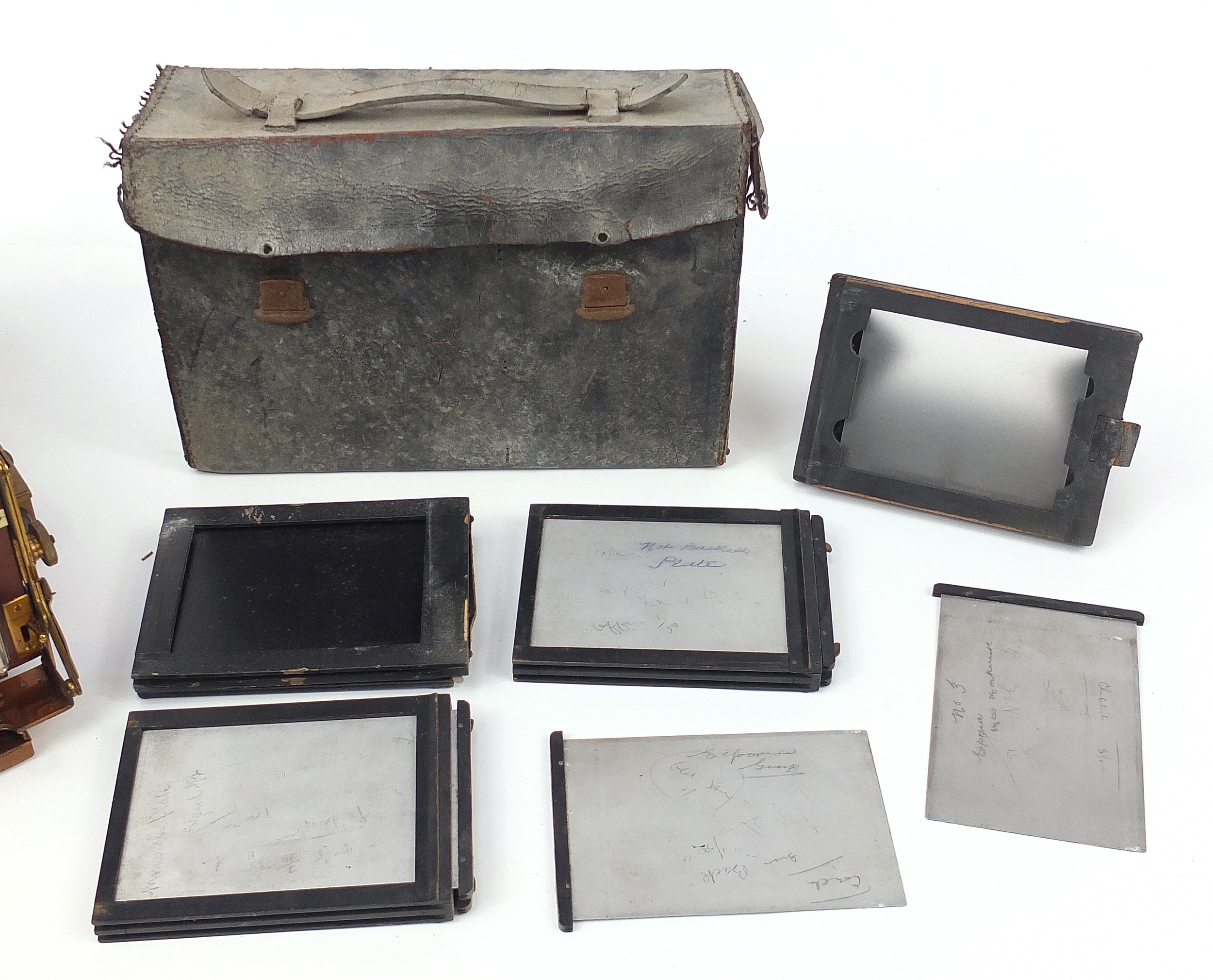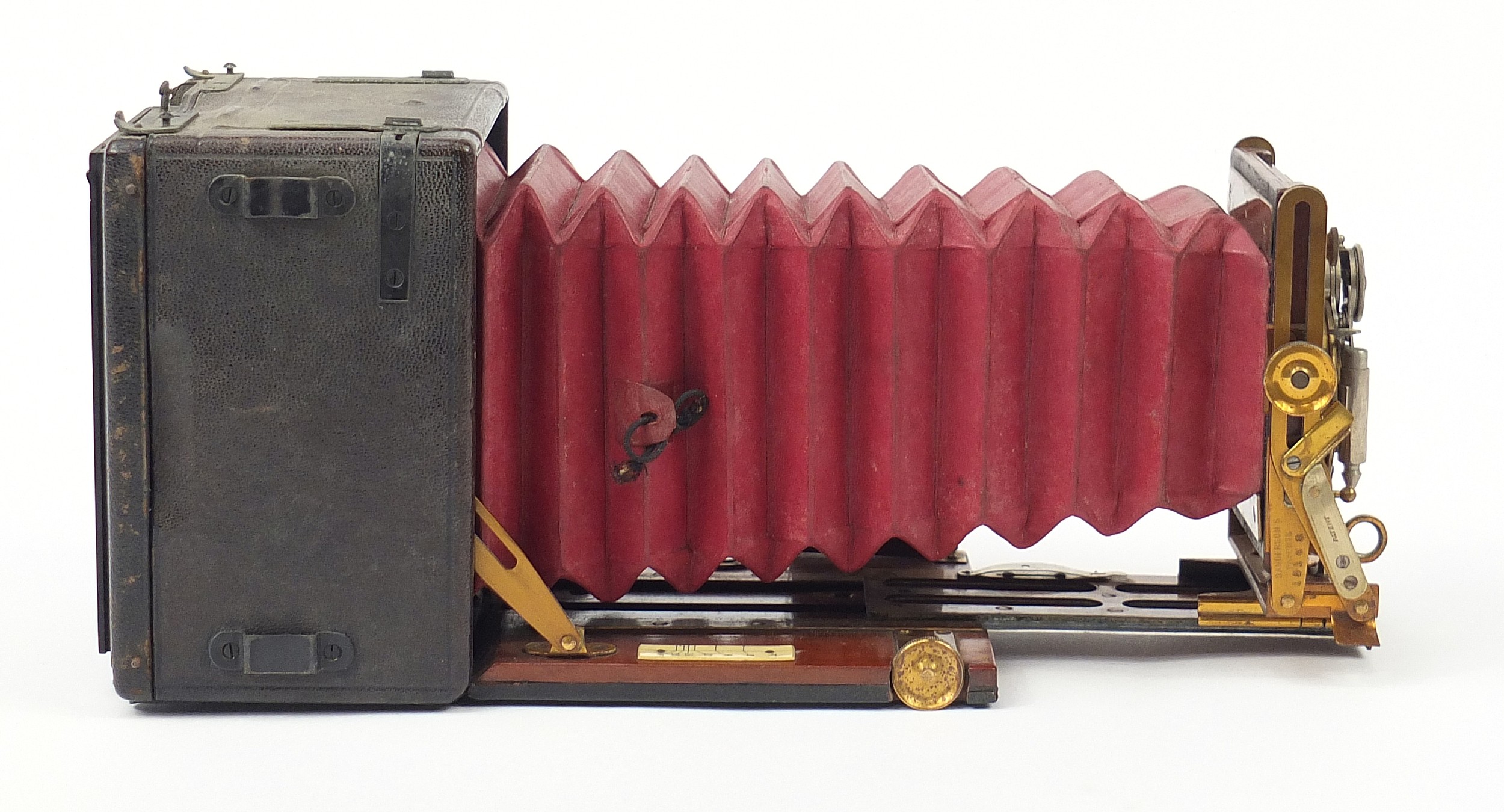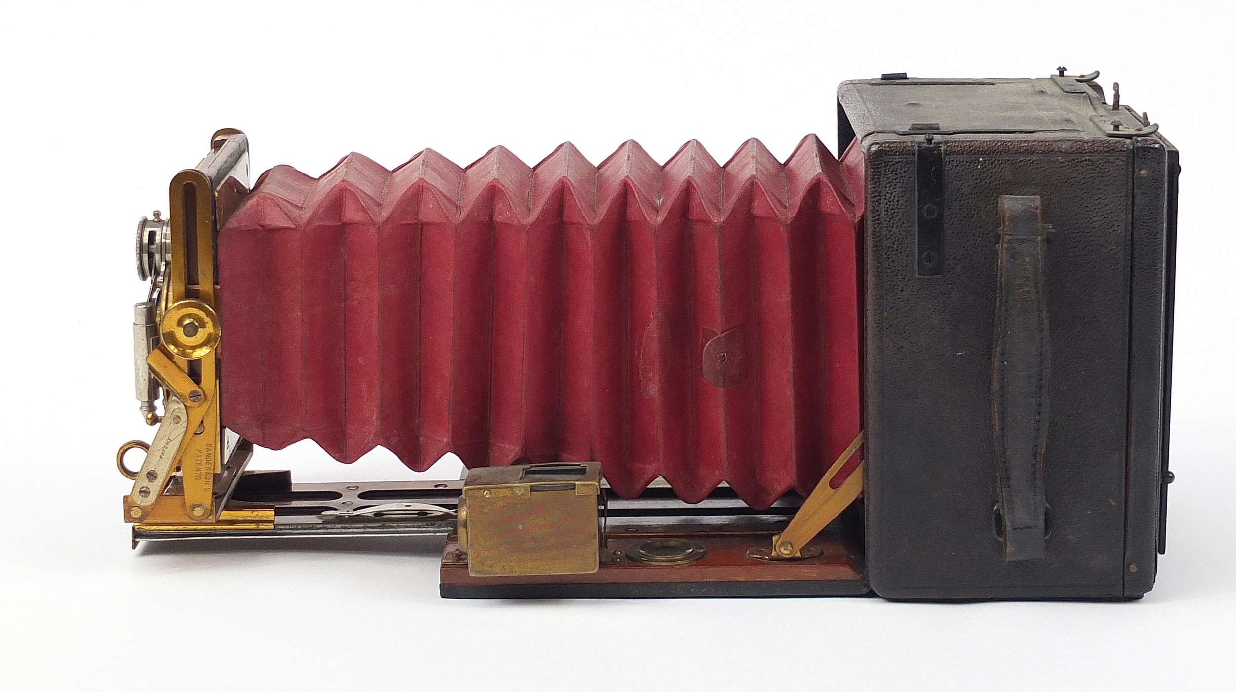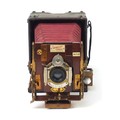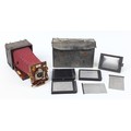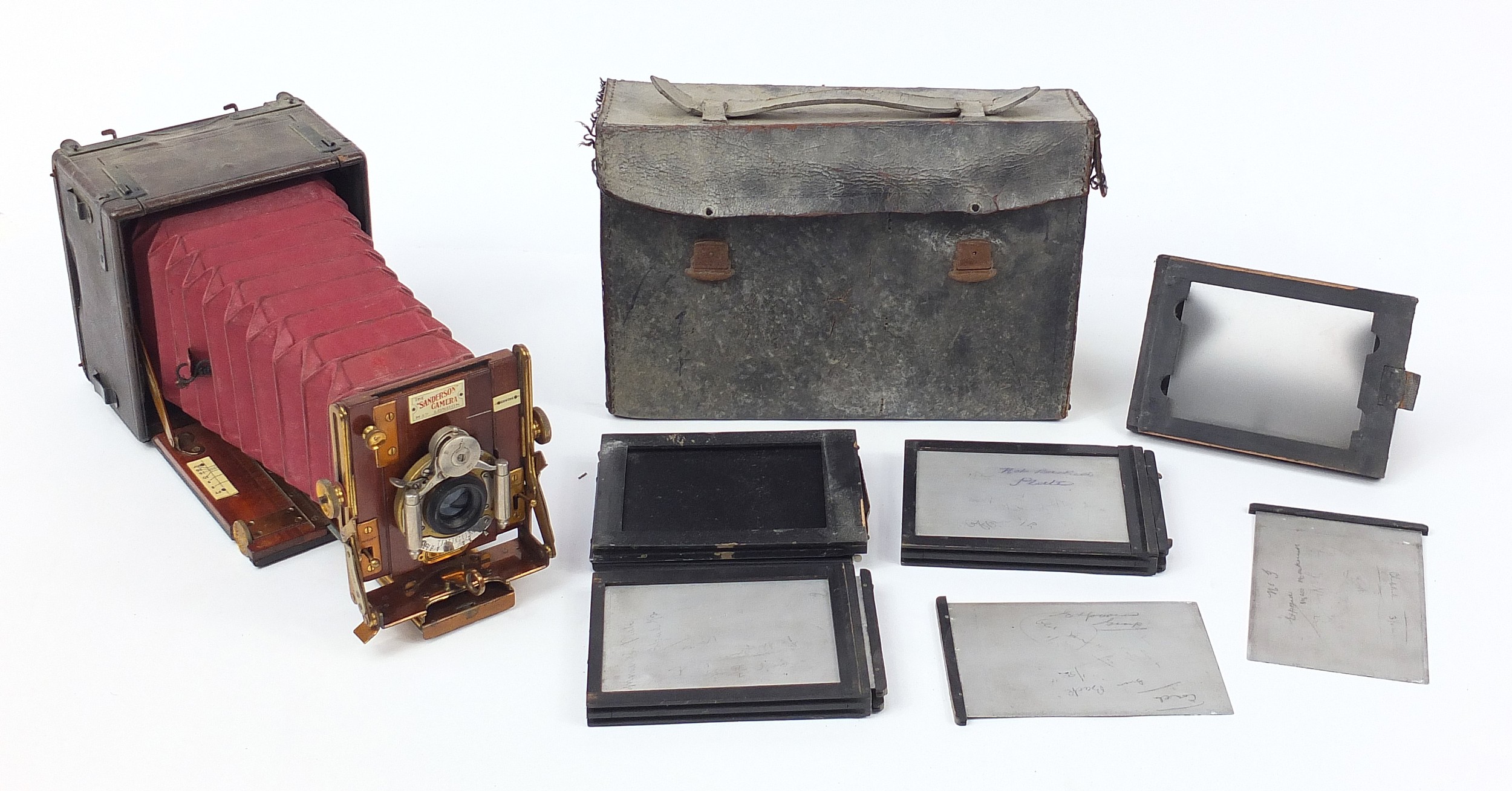 Victorian Sanderson camera, Regular Model with glass plates and leather case, the inserts 14cm x 10.5cm