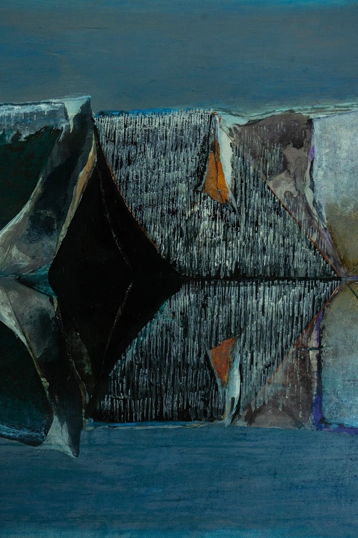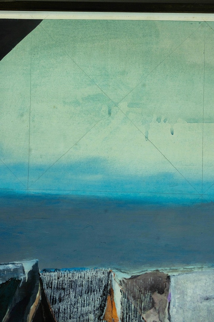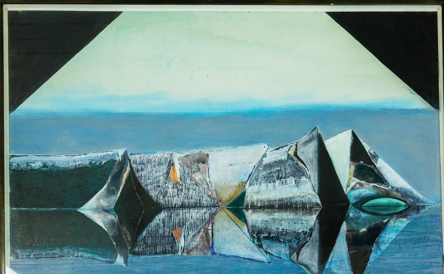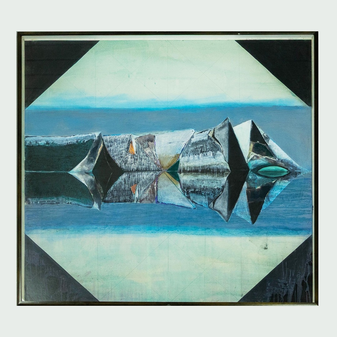 KEITH GRANT (BRITISH 1930-2012). SUMMER NIGHT ON THE FJORD. (d) mixed media, 122cm x 122cm, framed. (Subject to ARR see Buyers Conditions).