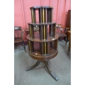 A Regency style mahogany and parcel gilt revolving bookcase on stand