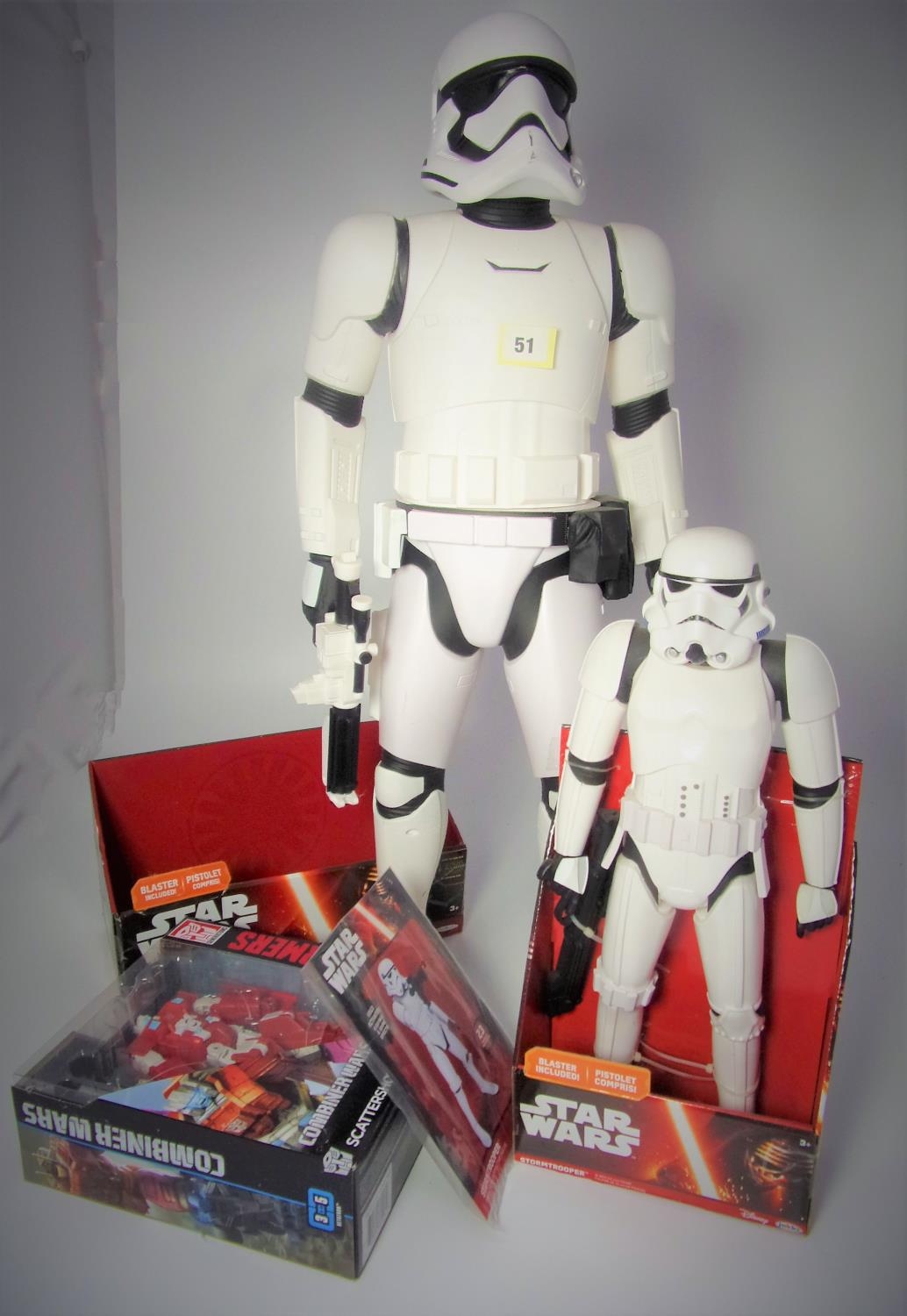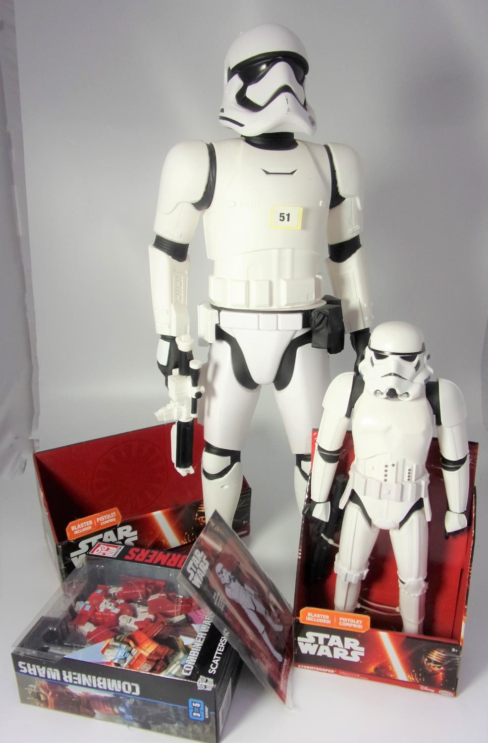 STAR WARS STORM TROOPER FIGURE APPROX 18 INCHES HIGH IN PART BOX, T/W COMBINED WAR TRANSFORMER & 30 INCH STORM TROOPER