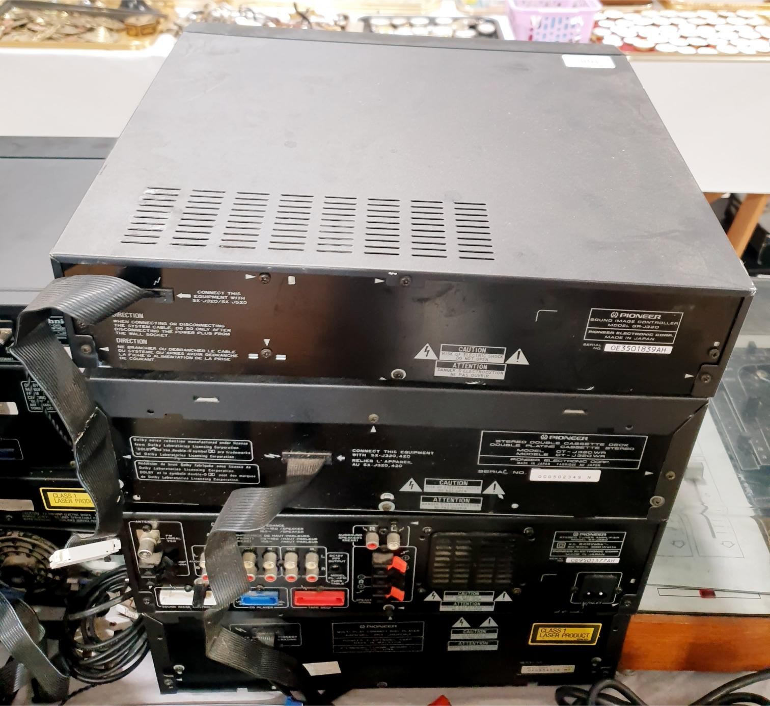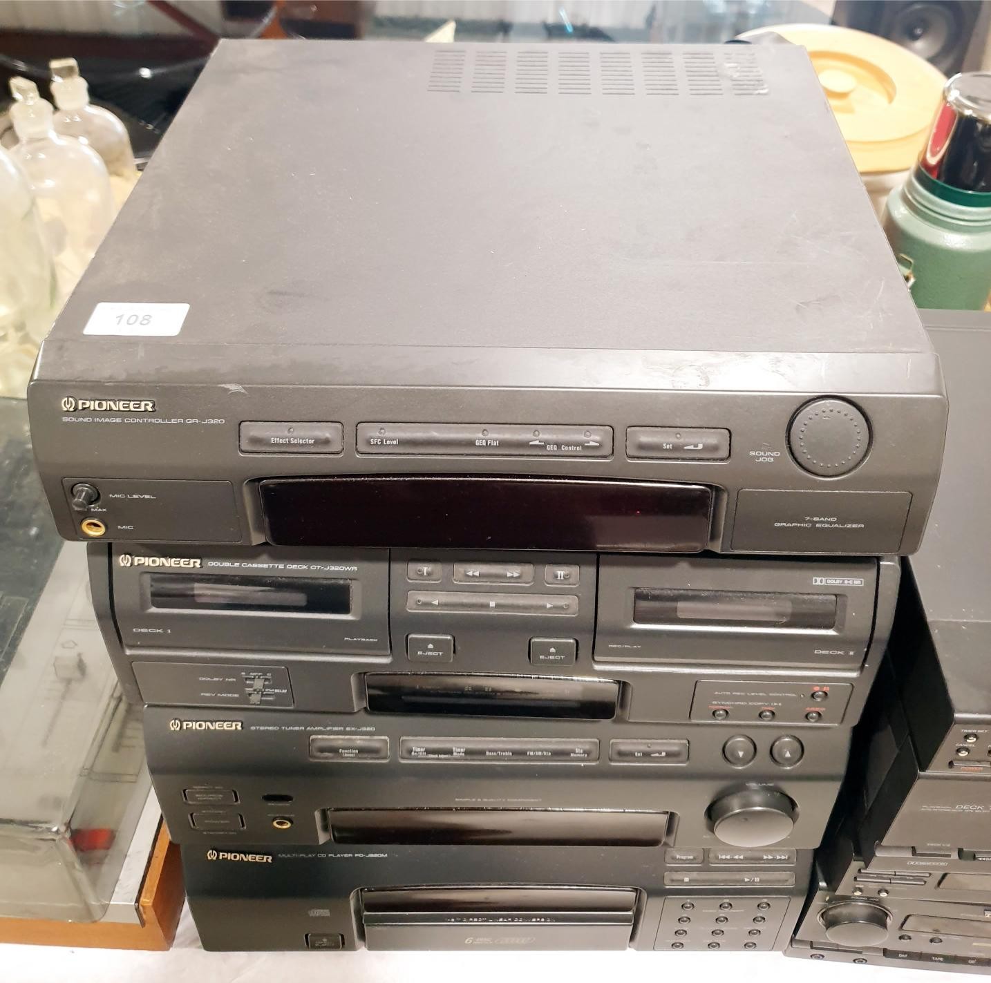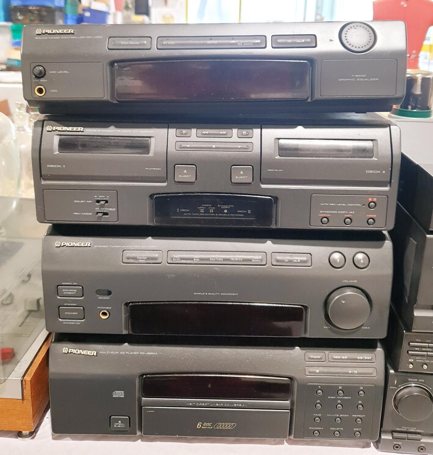 A Pioneer hi-fi comprising amplifier FX-J320, sound image controller GR-J32, cassette deck CT-J320WR and CD player PD-J820M. No Shipping. Arrange collection or your own packer and shipper, please. Electricals are sold as scrap.
