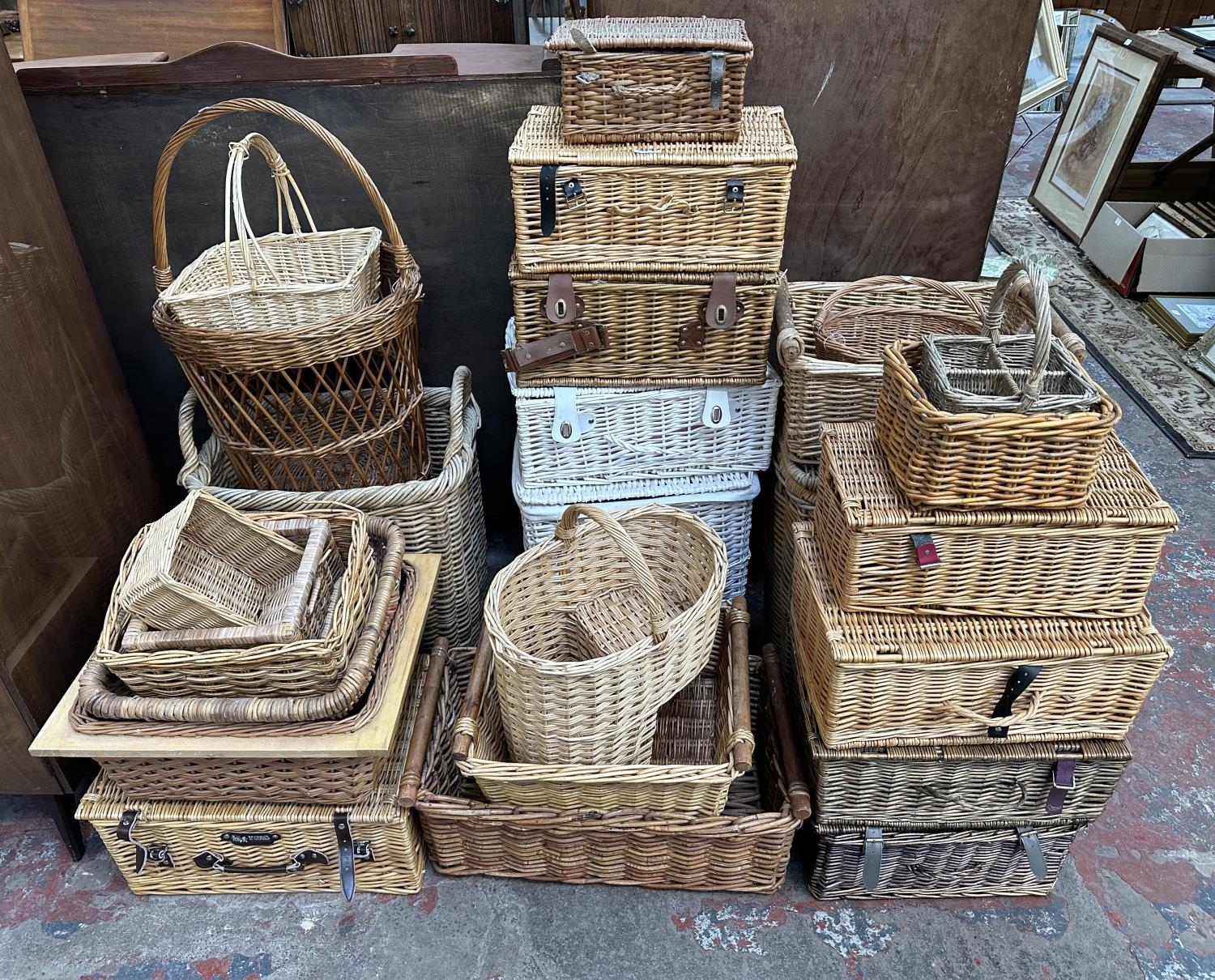 Twenty four various wicker baskets