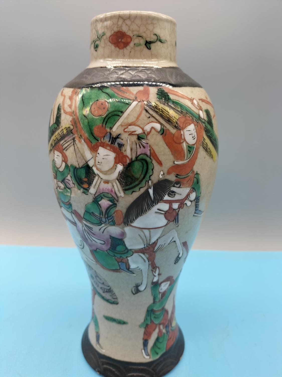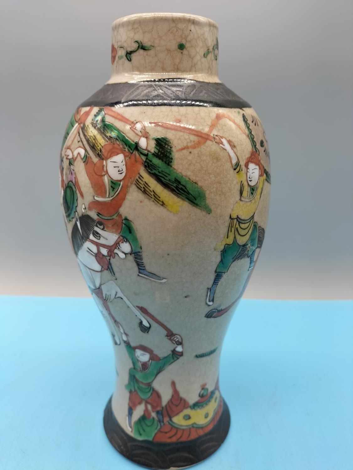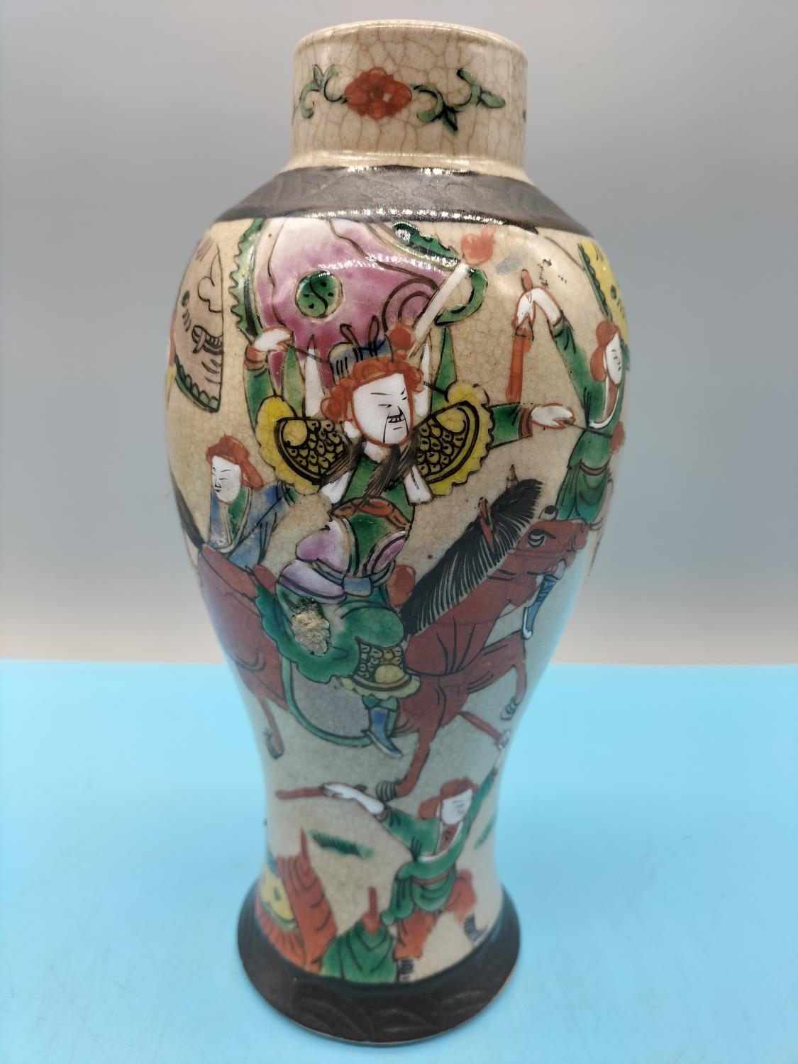 Chinese 19th Century Hand Painted Nanking Warrior 26cm Vase. Marks to Base.