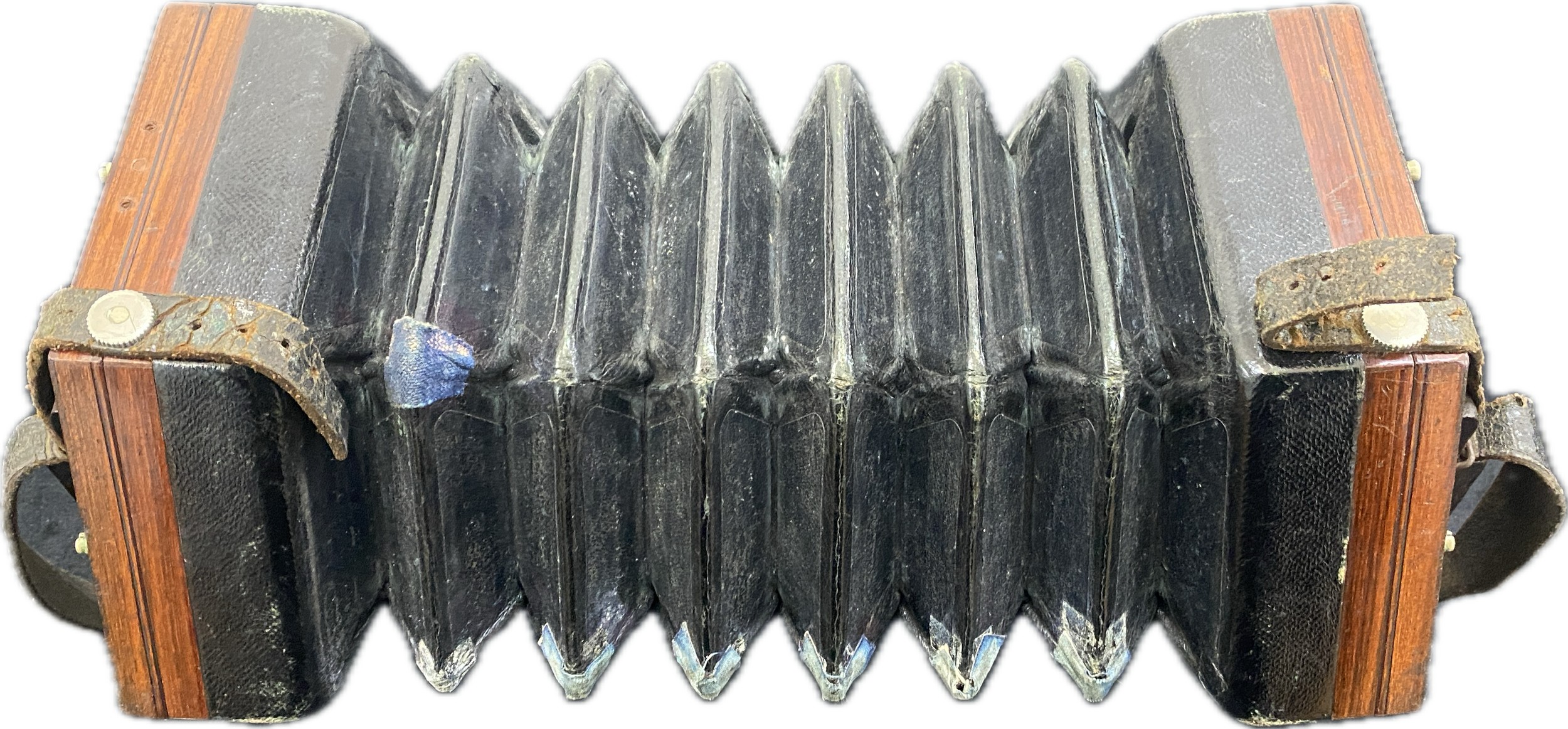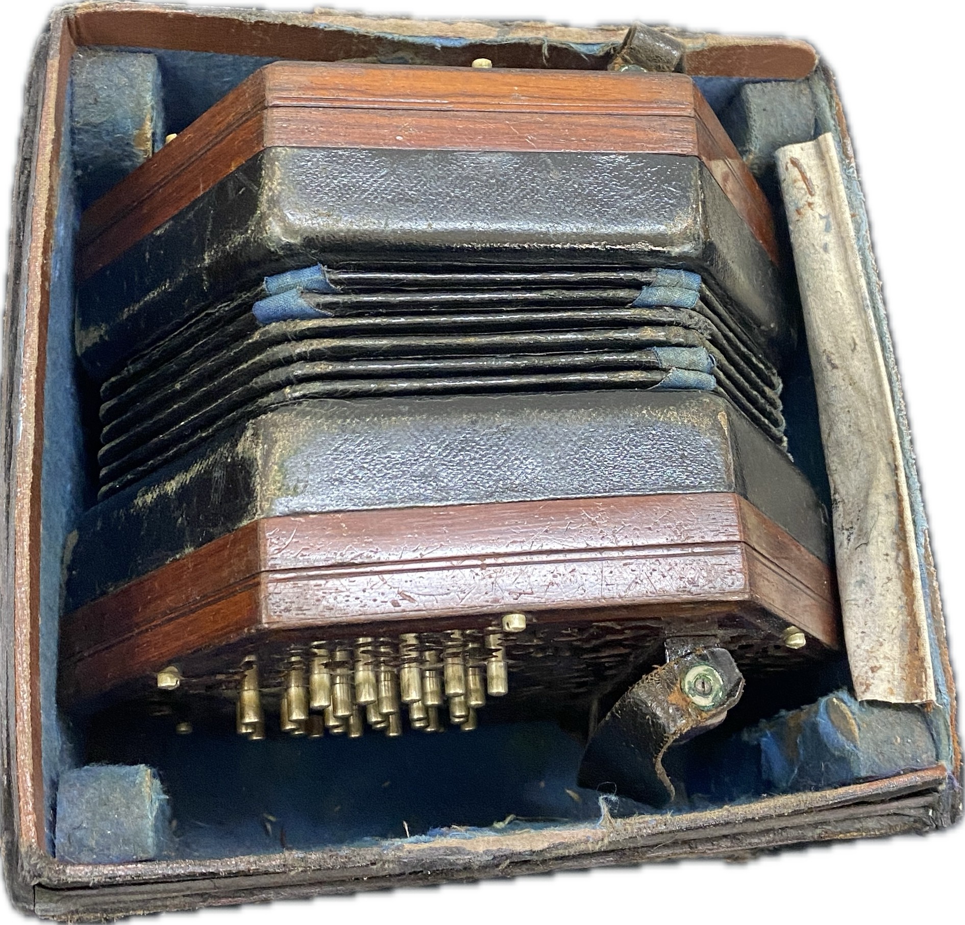 A good antique 48 button concertina possibly Lachenal serial no 4412, with steel reeds, in original case