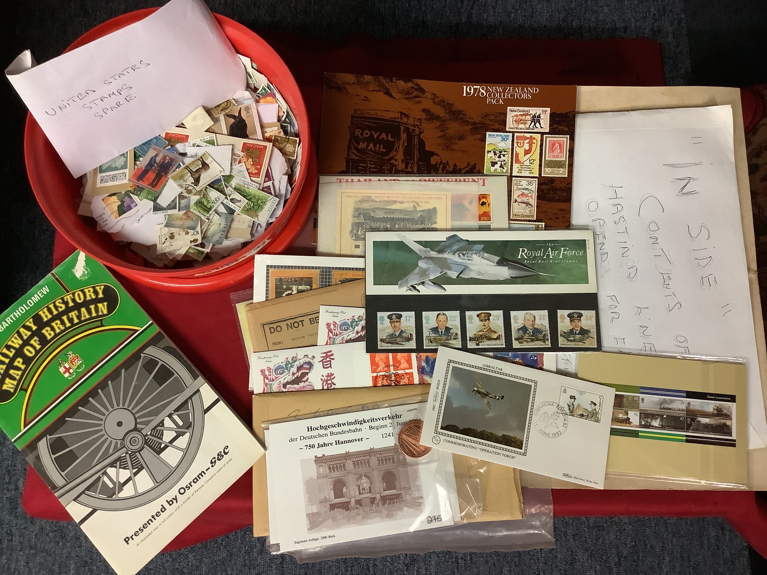 A mixed selection of assorted stamps and First Day Covers to include Belgium, Hong Kong, Classic Locomotives, Kenya, etc